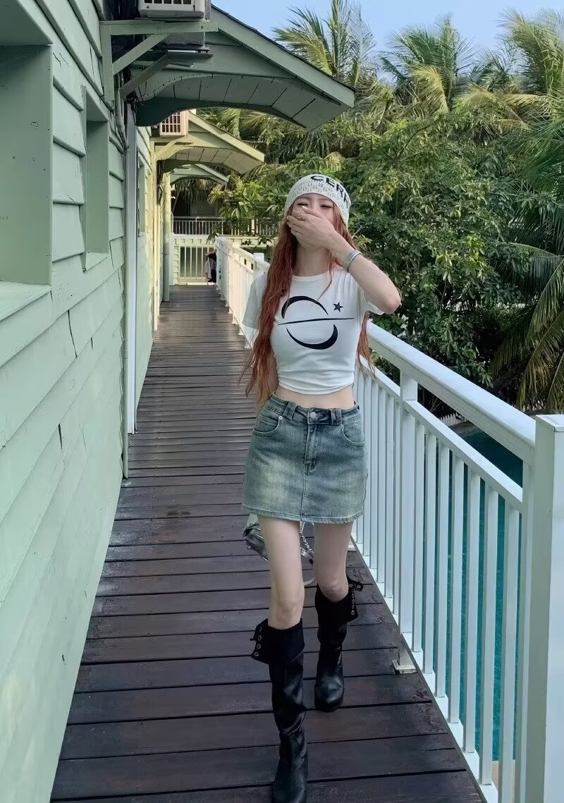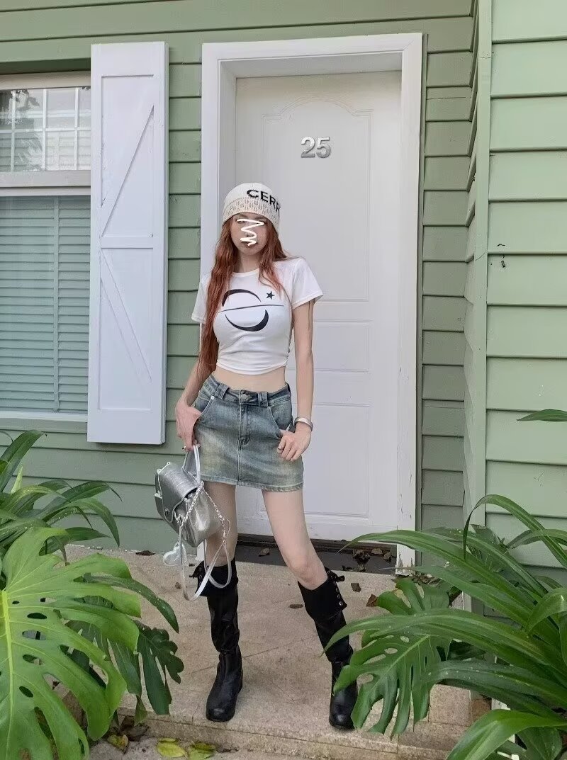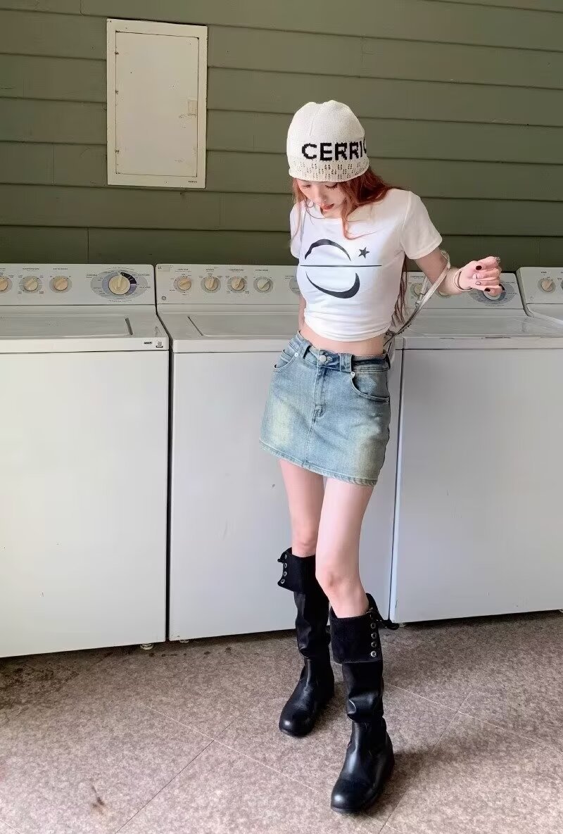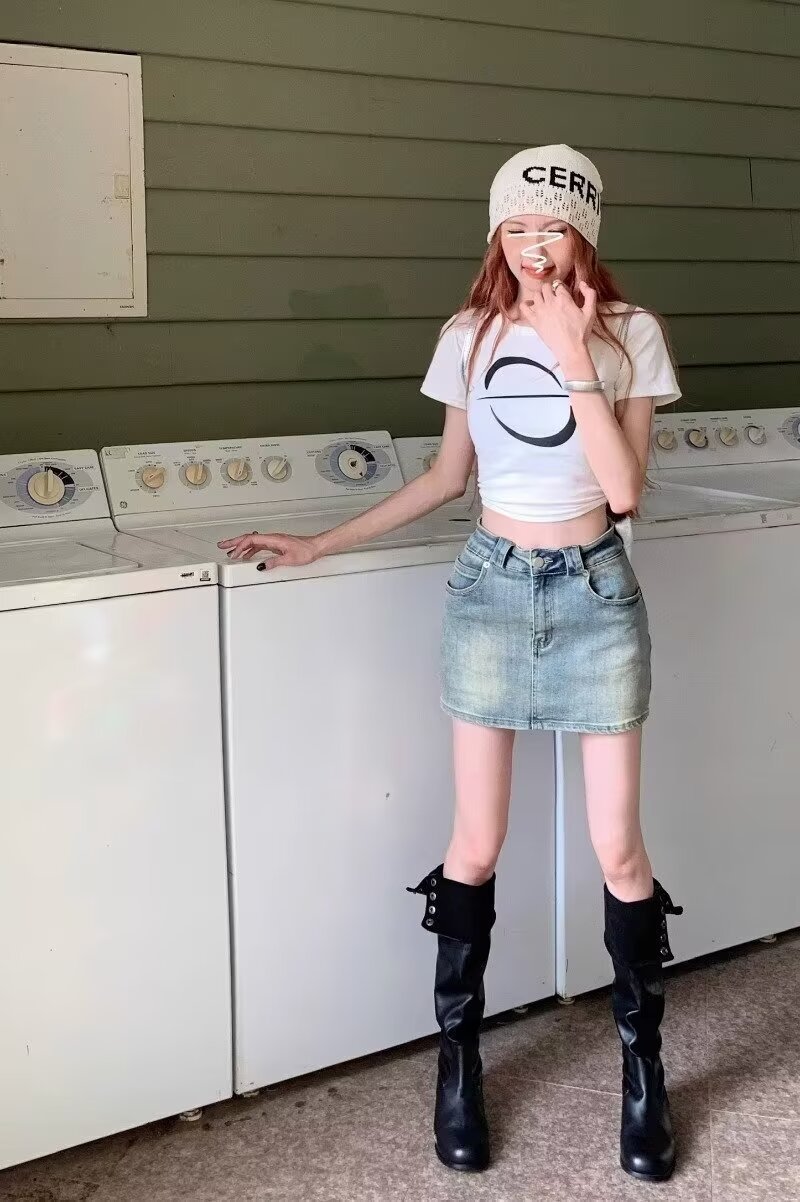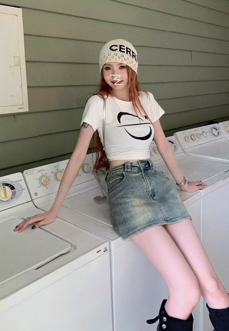 아메리칸 핫걸 블루 레트로 데님 스커트 여성 여름 2024 새로운 스타일 스커트 스커트 힙 커버 미니 스커트스토어 가기