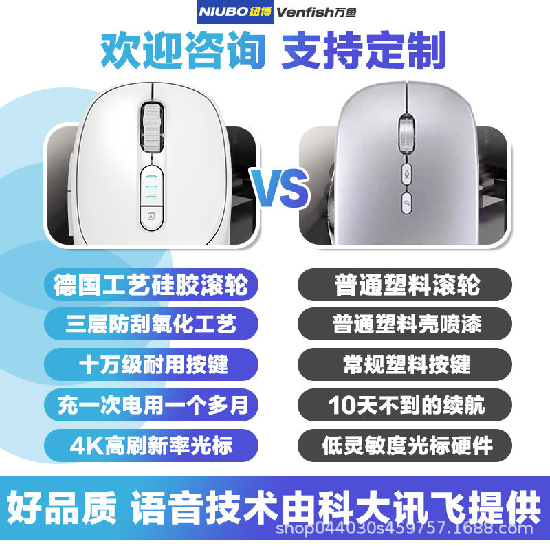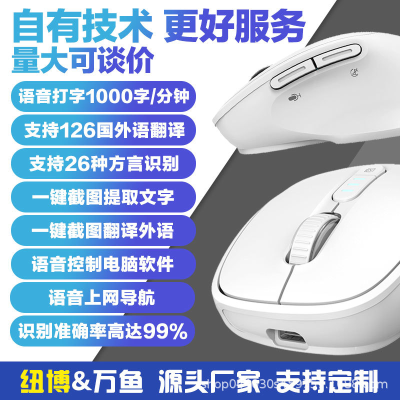 Wanyu AI 스마트 마우스 음성 입력 번역 무선 블루투스 충전 휴대용 음소거 음성 제어 사무실 범용스토어 가기