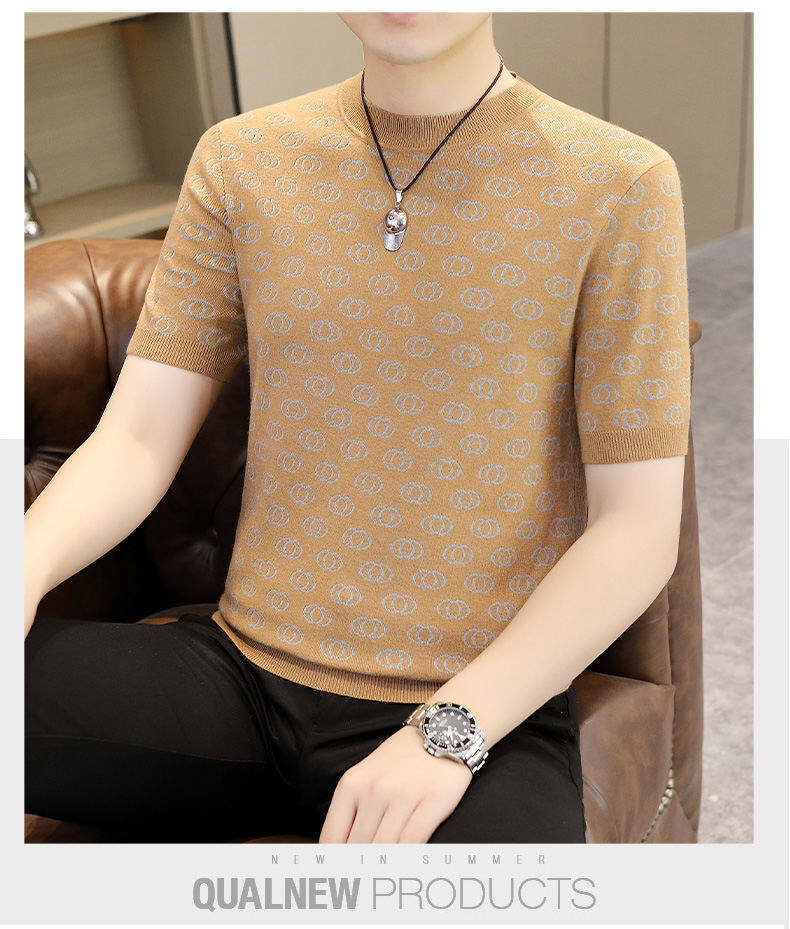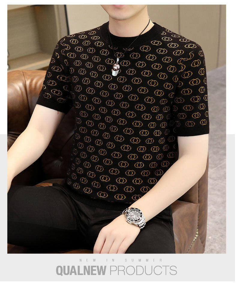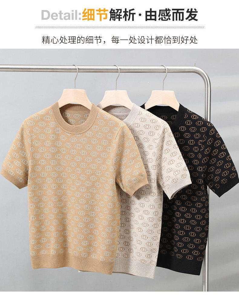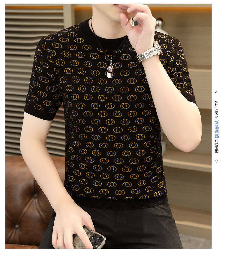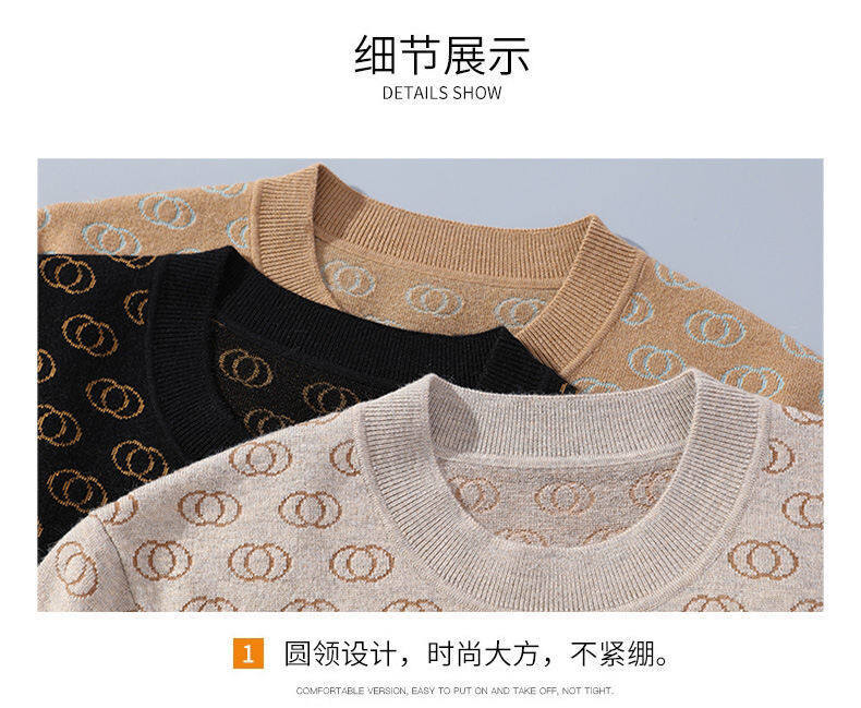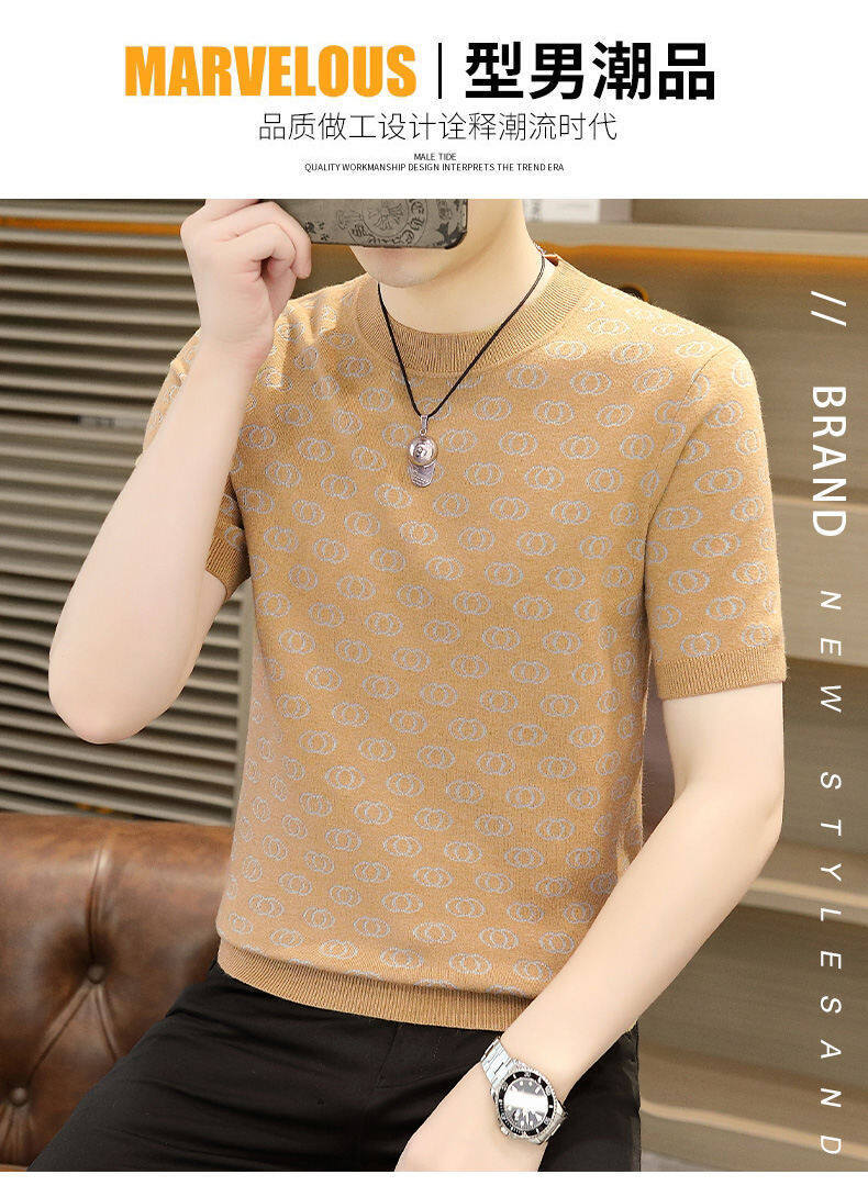 봄, 가을, 겨울 새로운 고급 니트 반팔 남성용 반팔 스웨터 라운드 넥 레터 트렌디 다용도 남성복스토어 가기