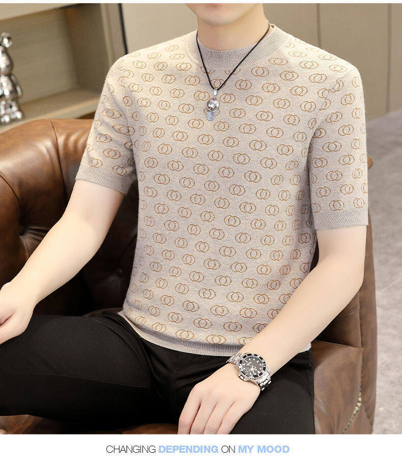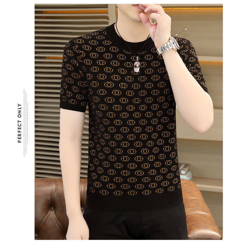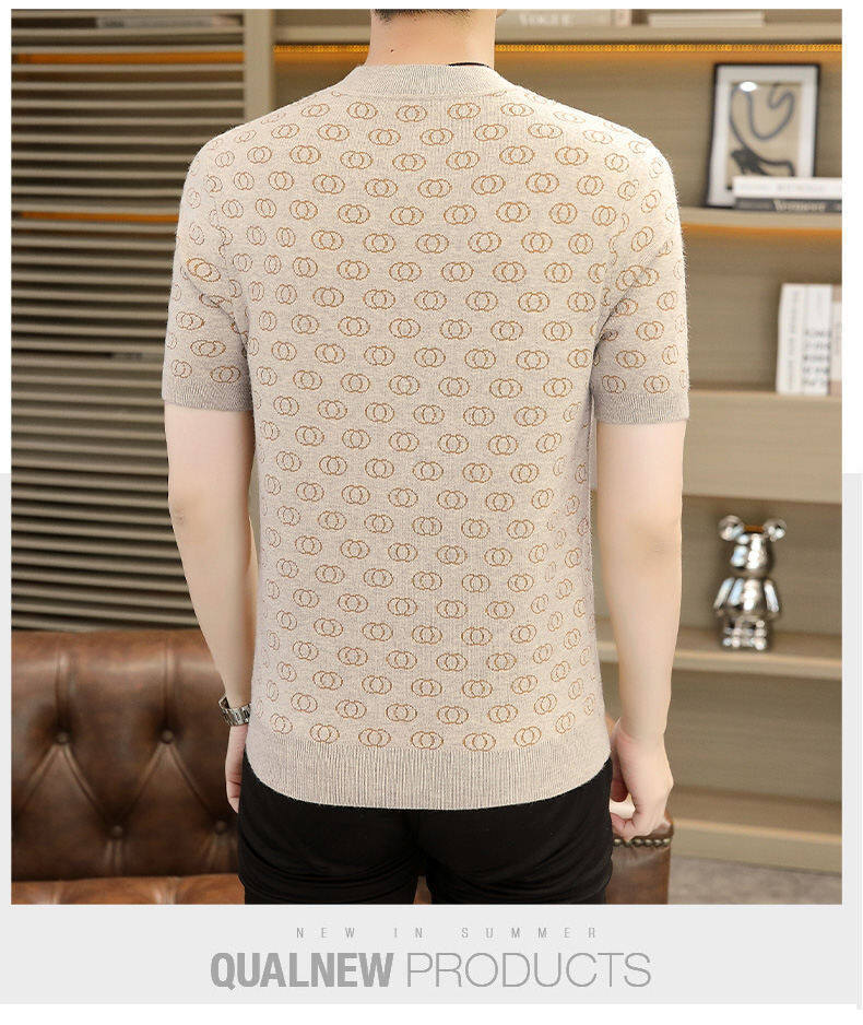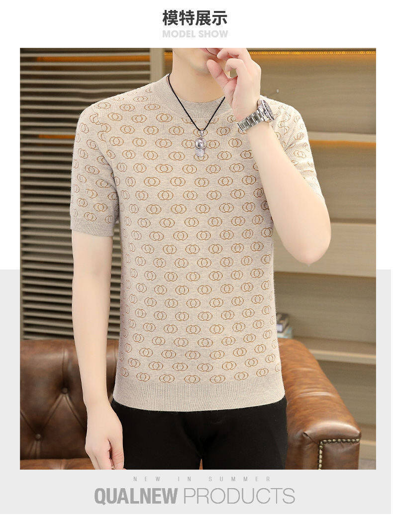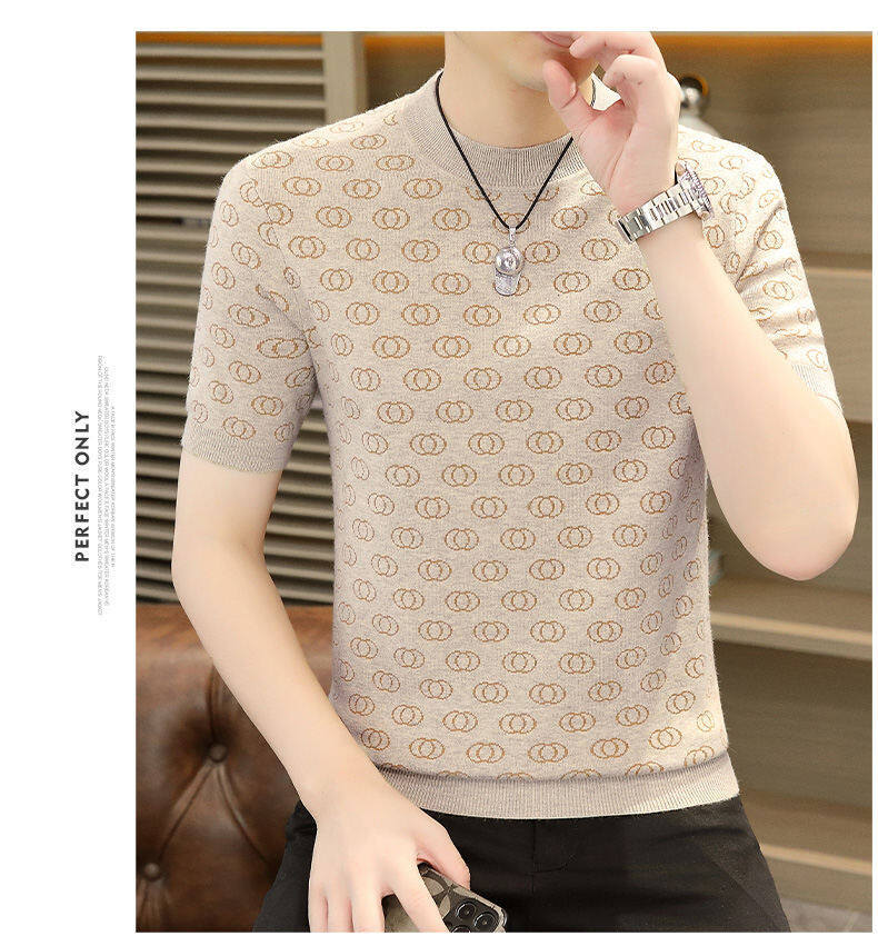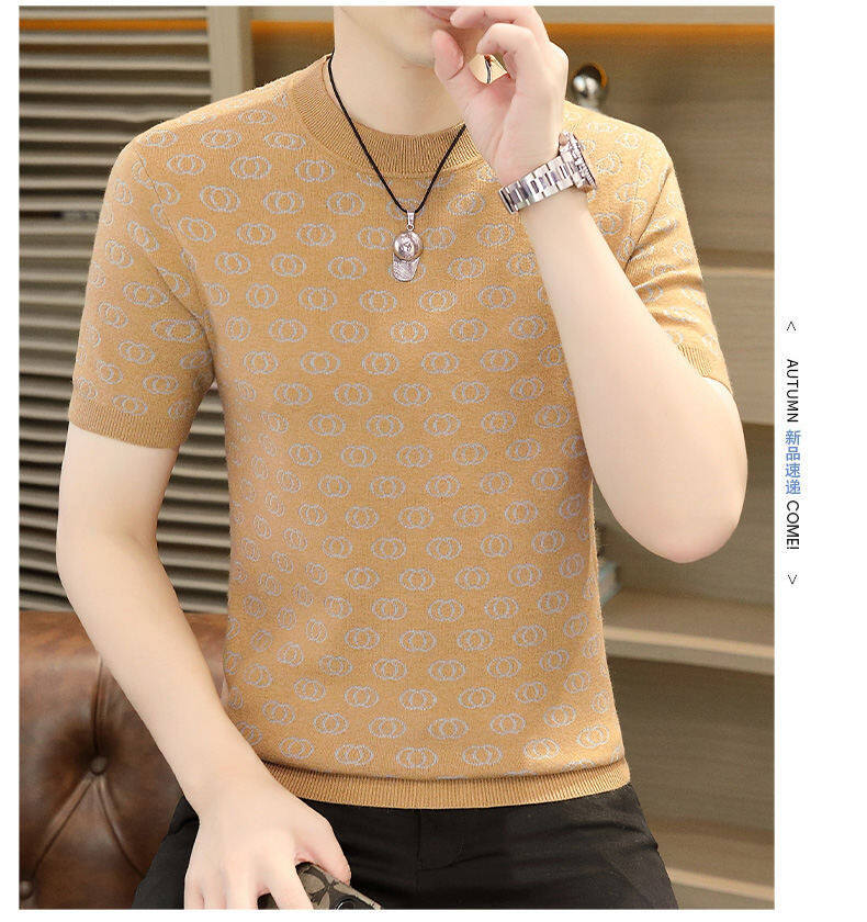 봄, 가을, 겨울 새로운 고급 니트 반팔 남성용 반팔 스웨터 라운드 넥 레터 트렌디 다용도 남성복스토어 가기