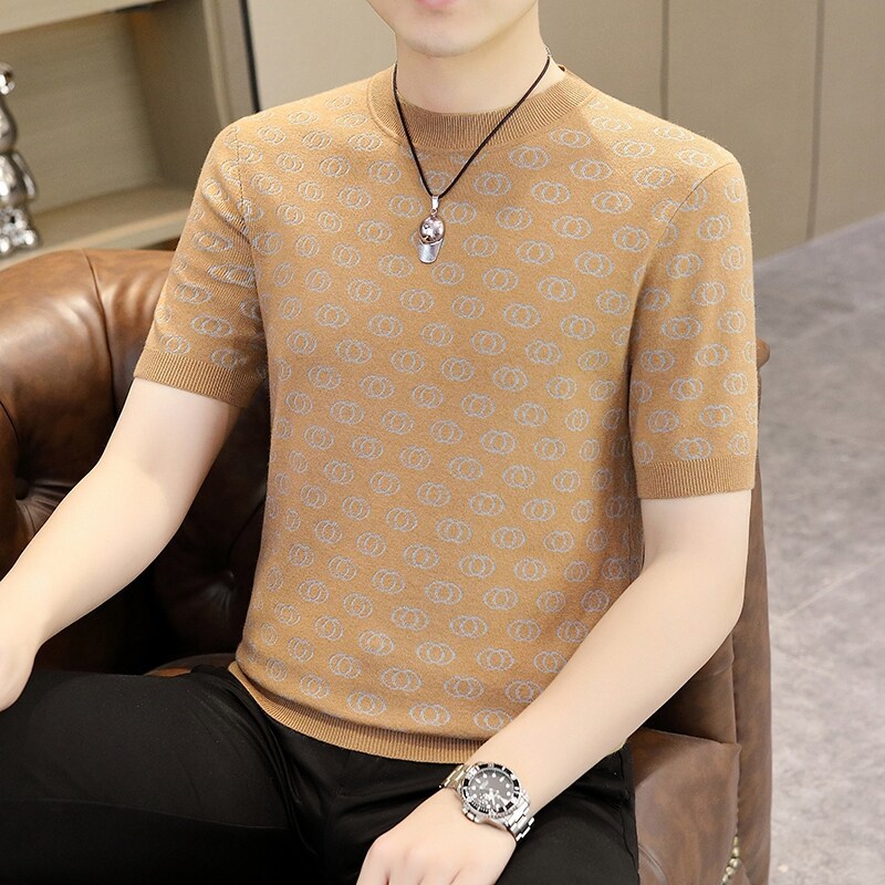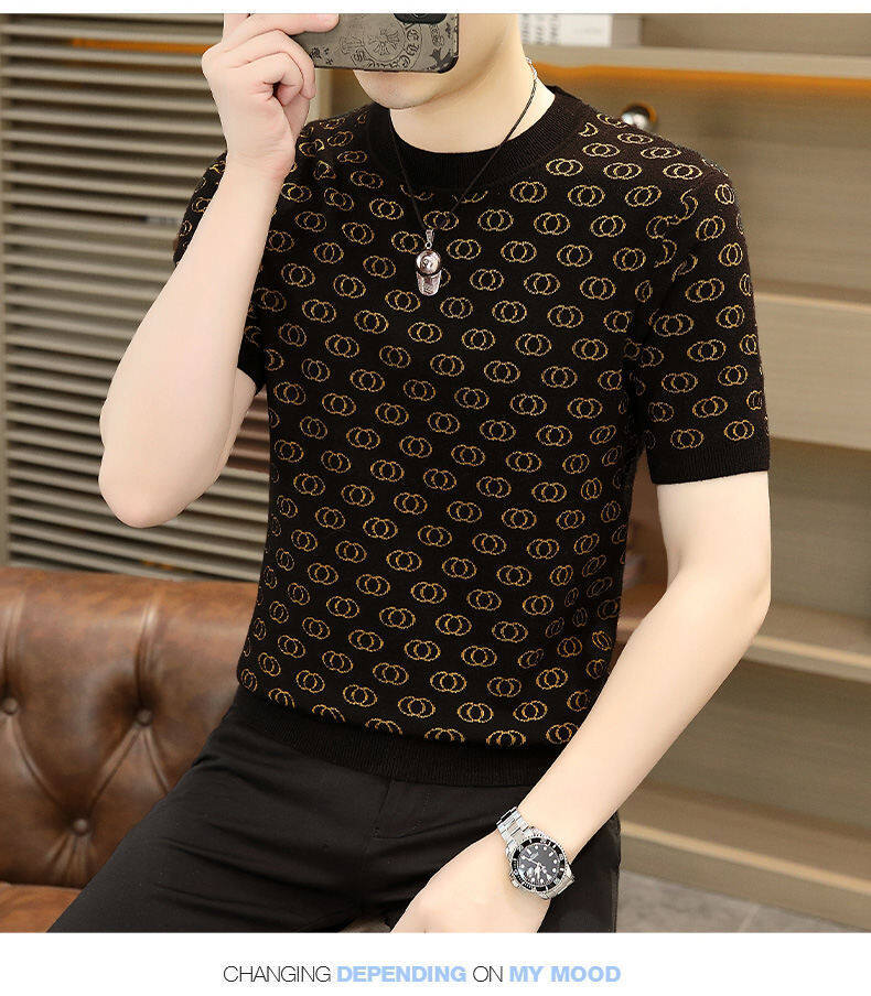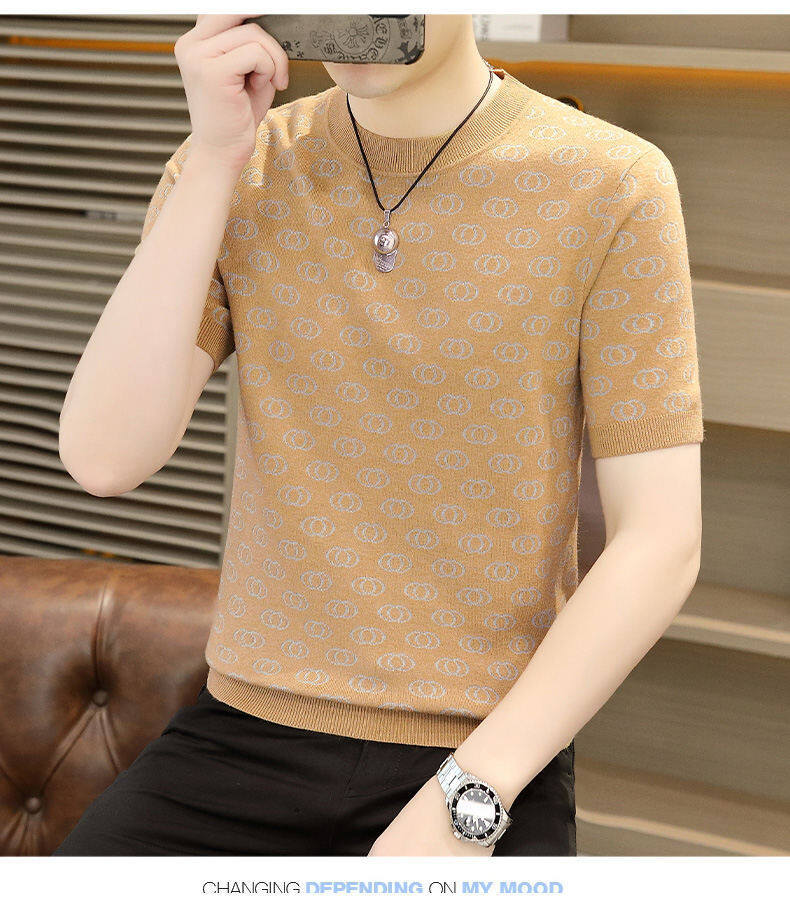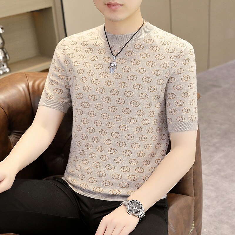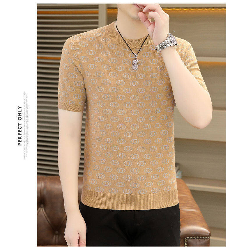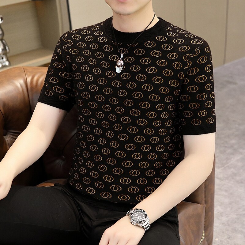 봄, 가을, 겨울 새로운 고급 니트 반팔 남성용 반팔 스웨터 라운드 넥 레터 트렌디 다용도 남성복스토어 가기
