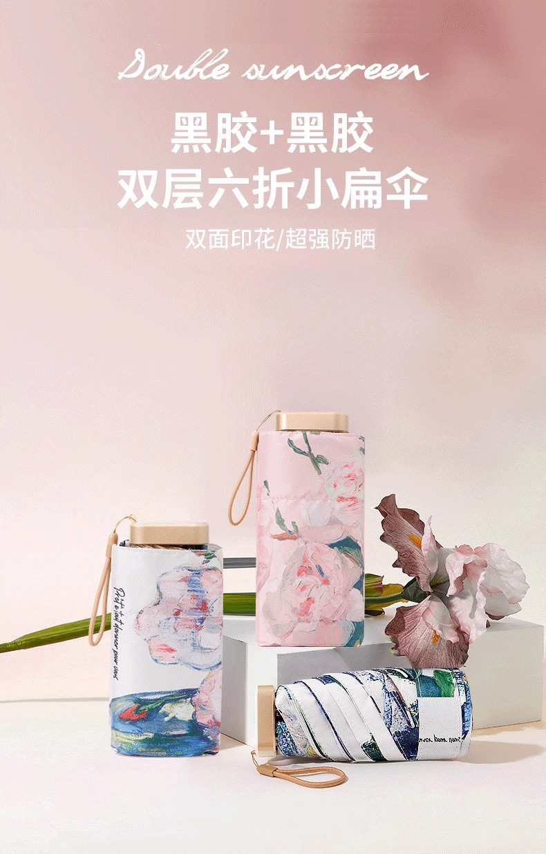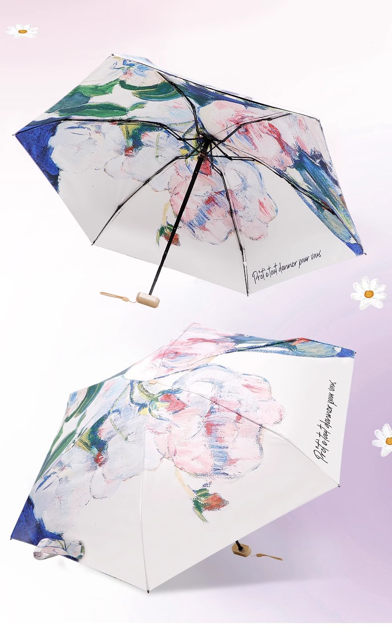 맞춤형 플랫 40% off 태양 우산 유화 태양 보호 파라솔 자외선 차단 여성용 비 또는 샤인 우산 소형 및 휴대용