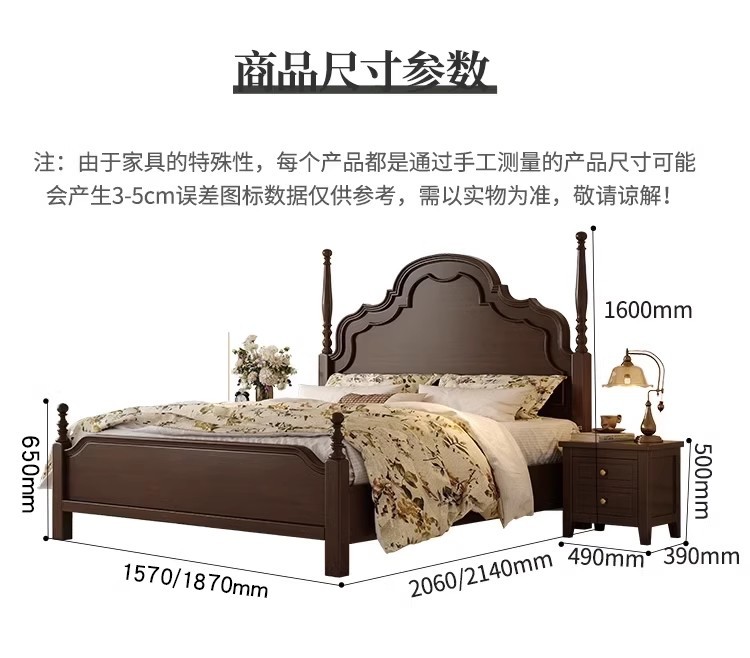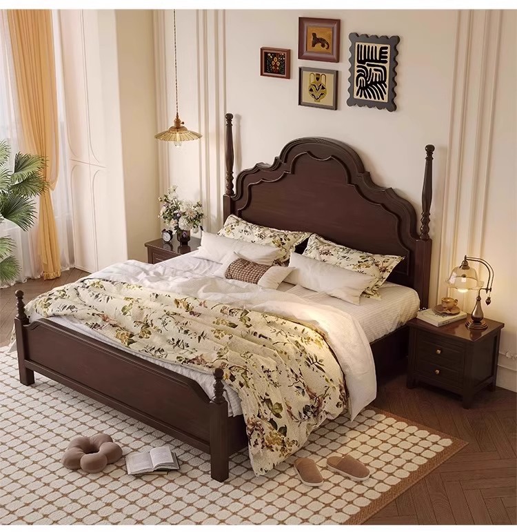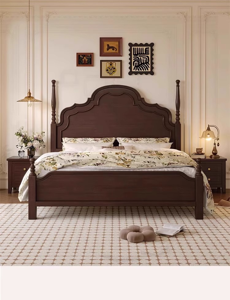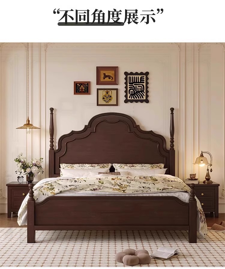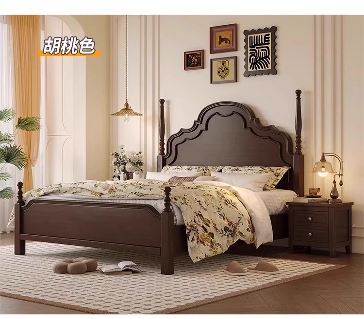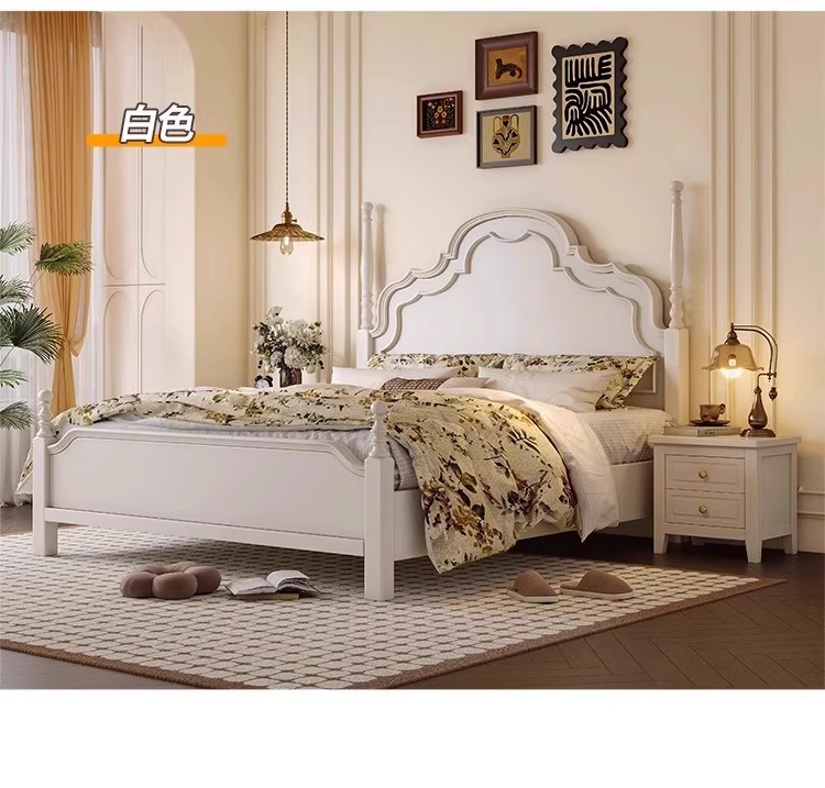 미국식 원목 침대 1.95m 중세풍 마스터 침실 더블 침대 안나 침대 프랑스식 고급 수납형 웨딩 침대 b