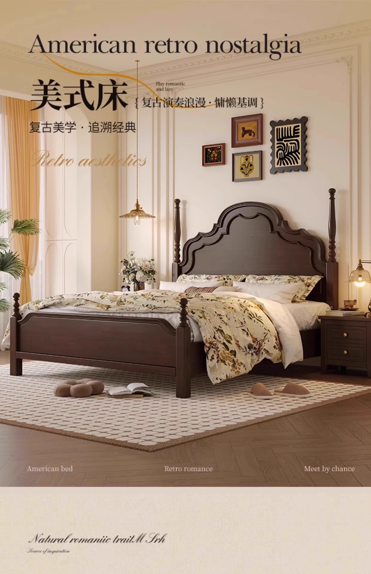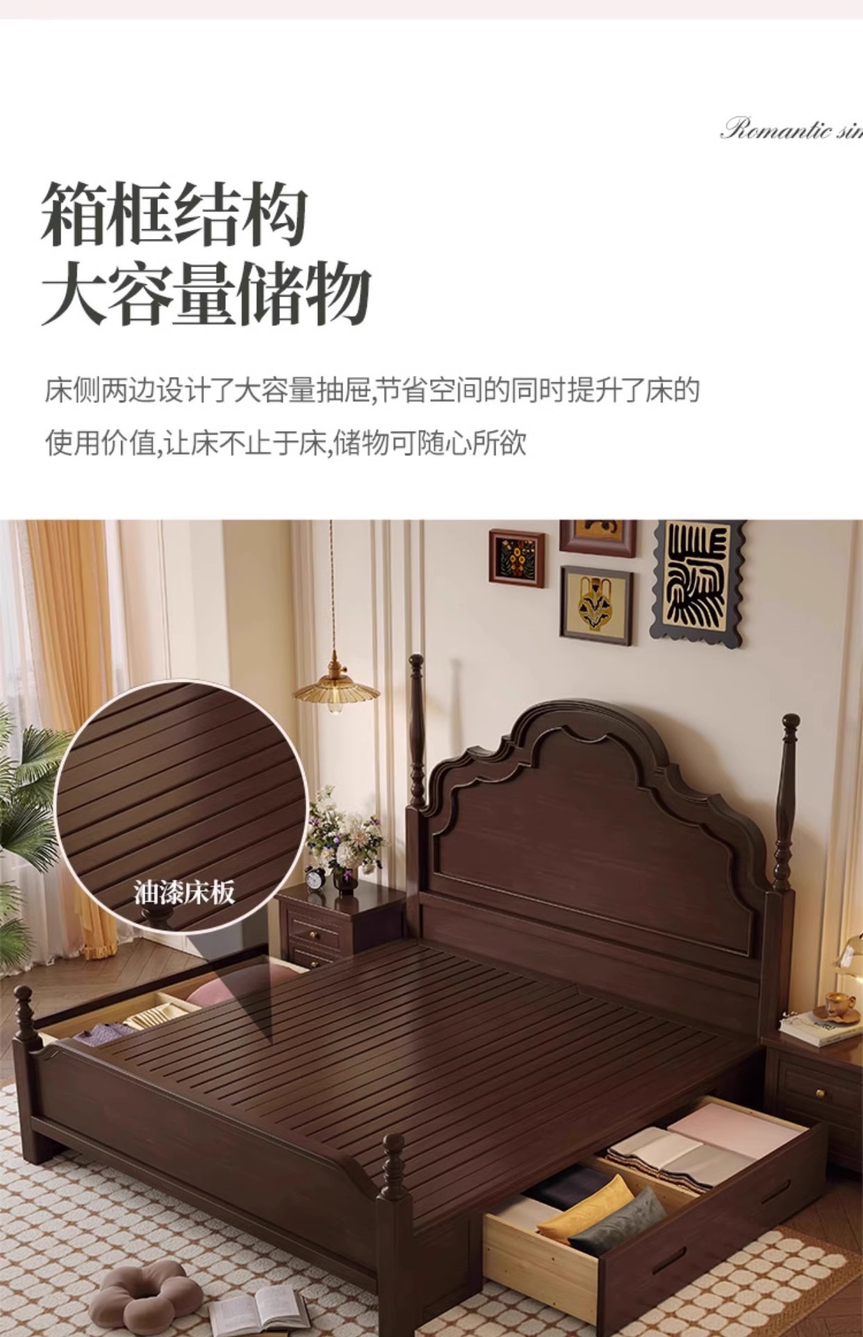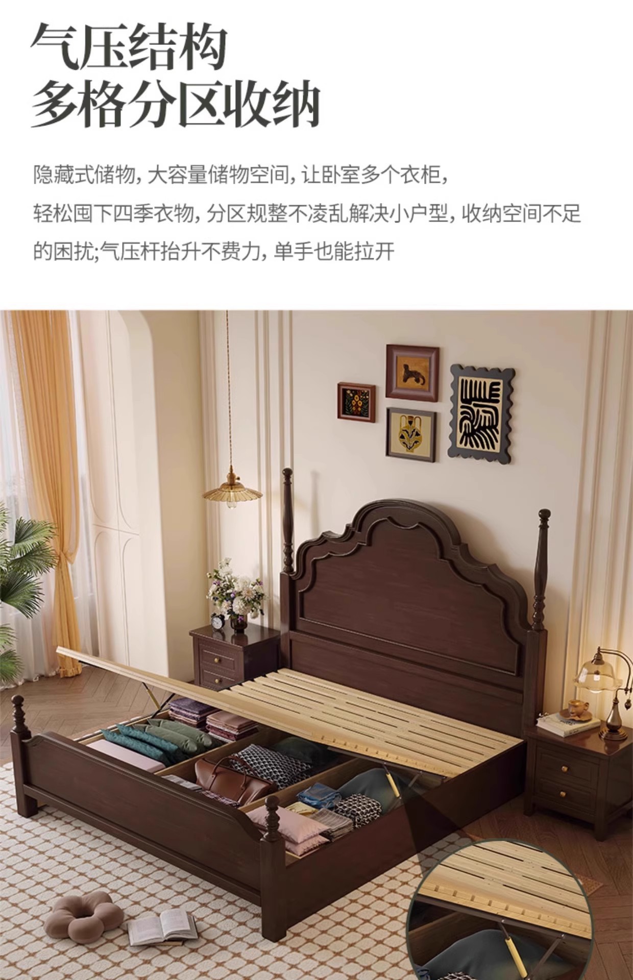 미국식 원목 침대 1.95m 중세풍 마스터 침실 더블 침대 안나 침대 프랑스식 고급 수납형 웨딩 침대 b