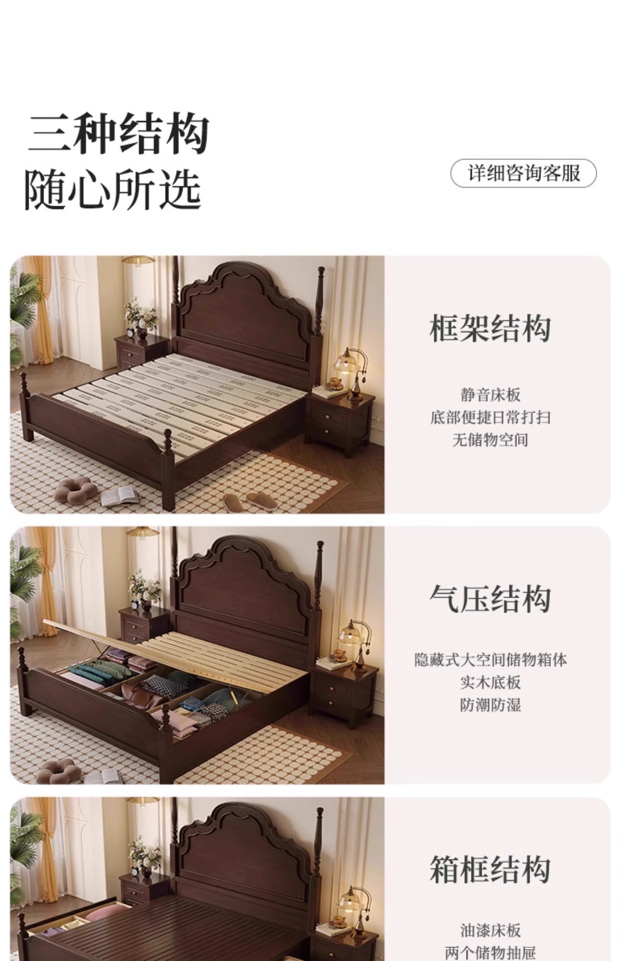 미국식 원목 침대 1.95m 중세풍 마스터 침실 더블 침대 안나 침대 프랑스식 고급 수납형 웨딩 침대 b스토어 가기