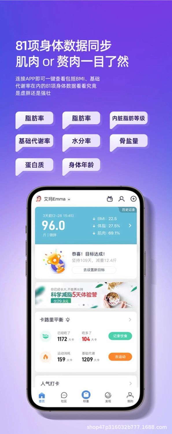 소녀들을 위한 가정용 체지방 체중계를 위한 Okok 블루투스 연결을 지원합니다.스토어 가기