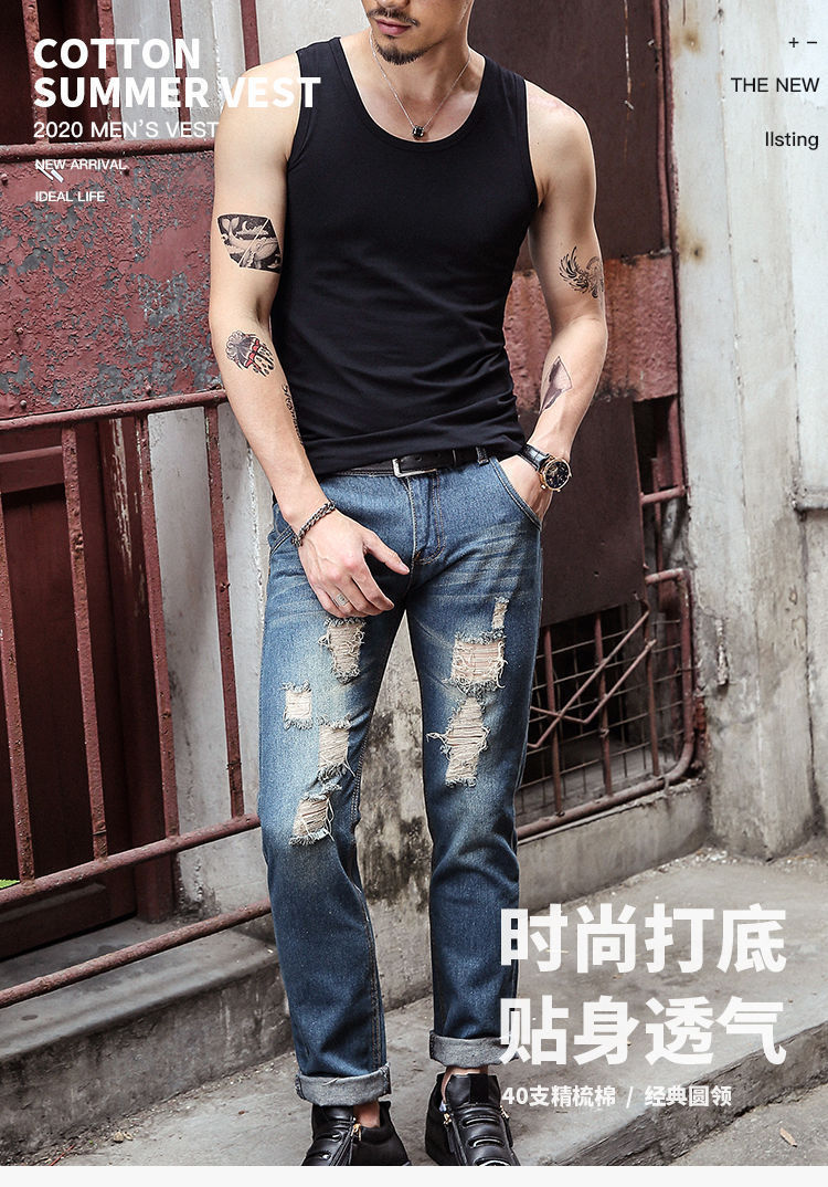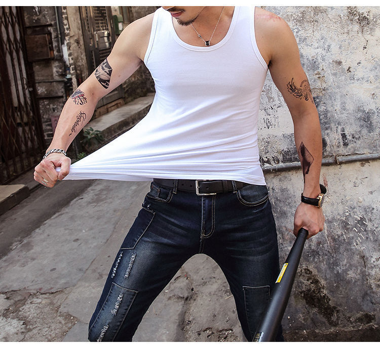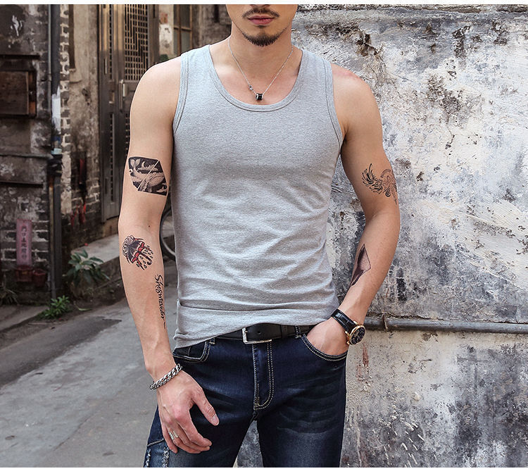 남성용 코튼 조끼 여름 땀 흡수성 스레드 슬링 탄성 슬림 핏 스포츠 백킹 스웨트 셔츠 허들 솔리드 컬러 직접 판매스토어 가기