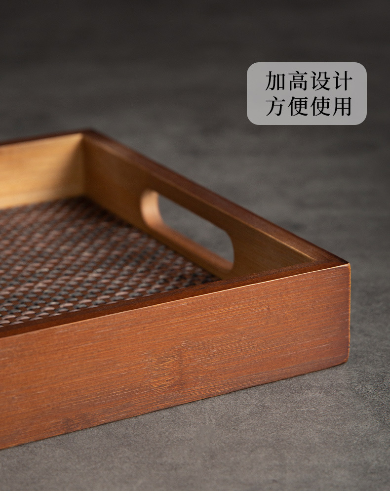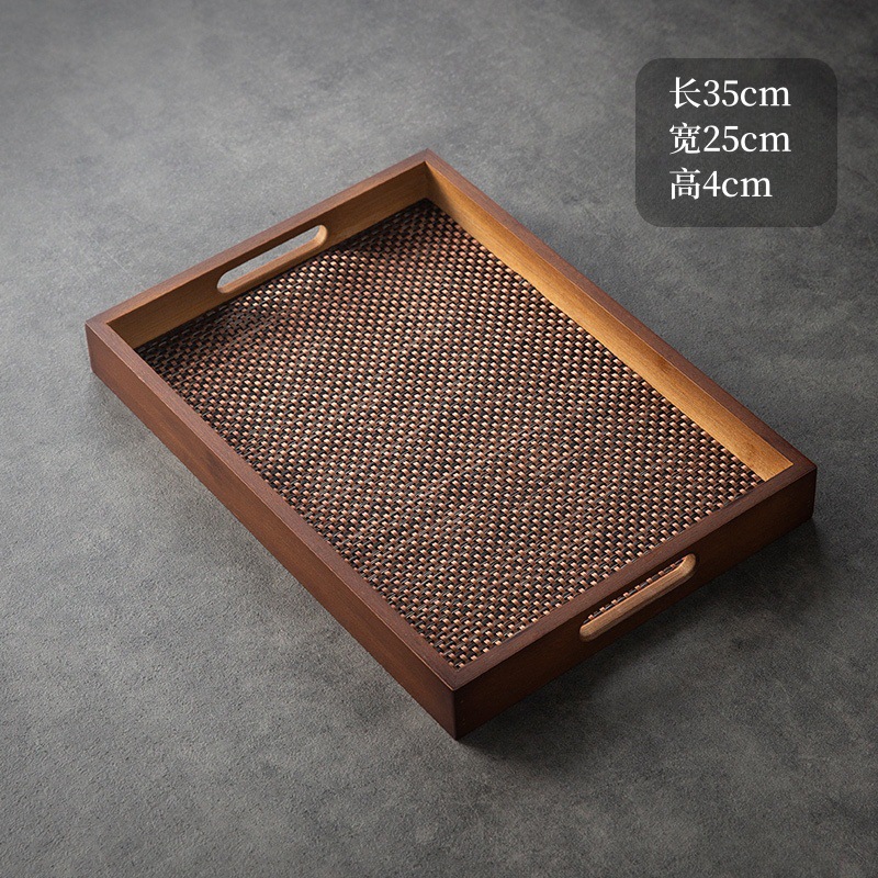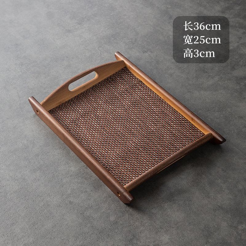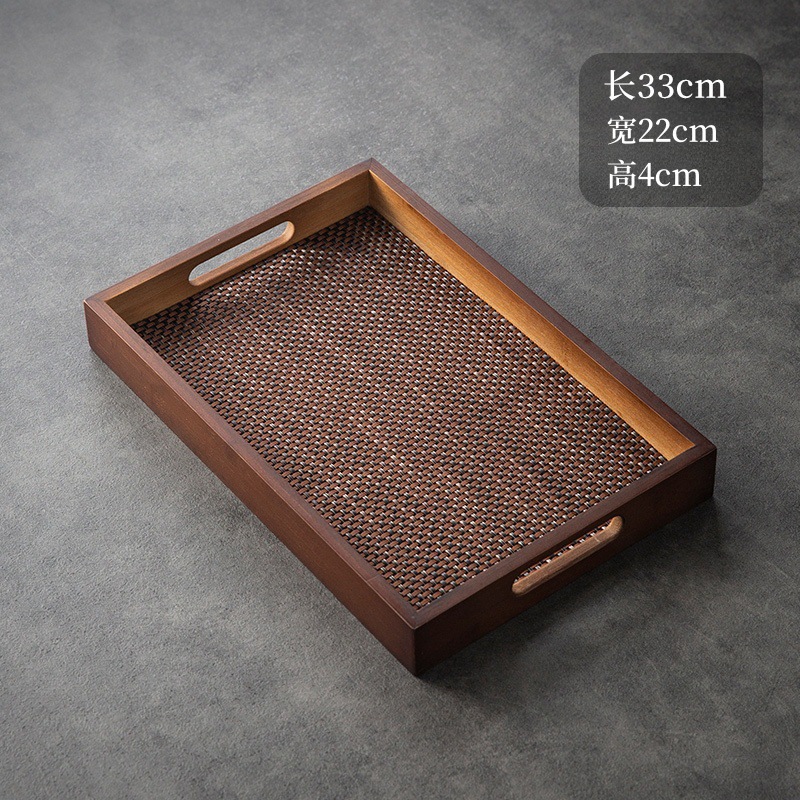 • 다크 커피 손잡이 트레이 [33*22*4] + 인조 대나무 매트