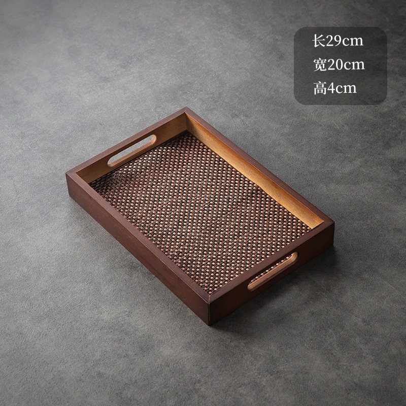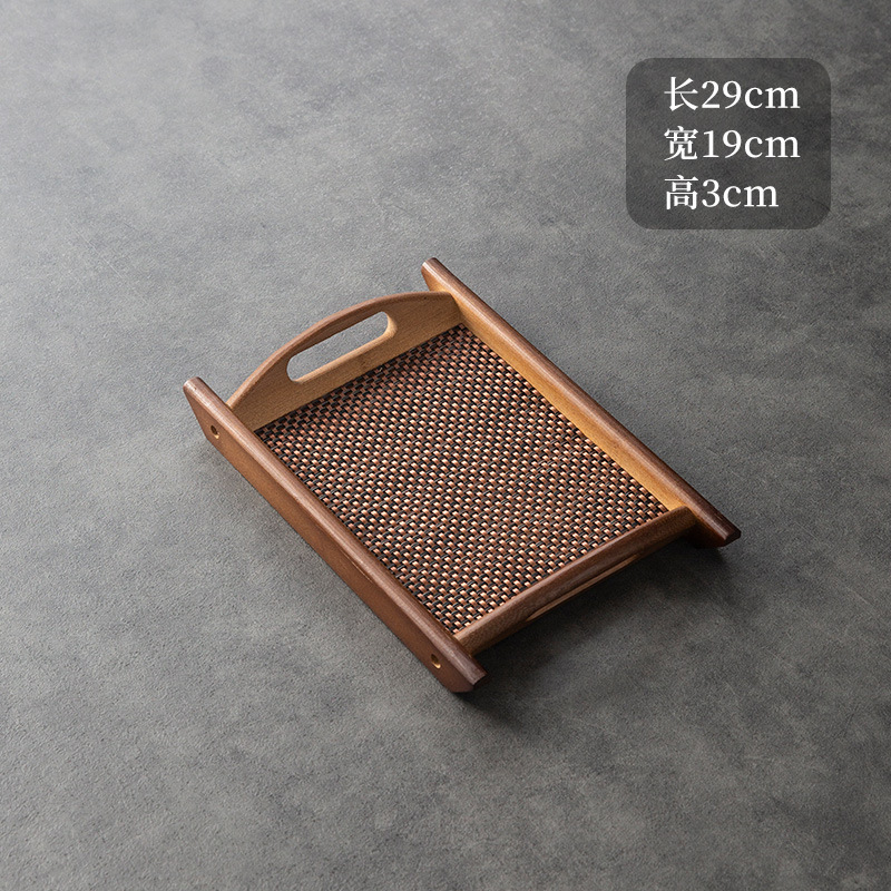 • 다크 커피 손잡이 트레이 [29*20*4] + 인조 대나무 매트