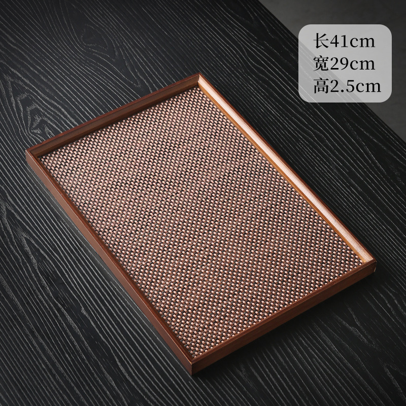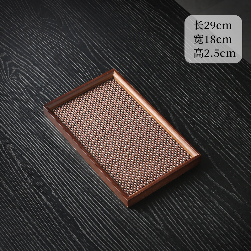 • 다크 커피 손잡이 트레이 [52*34*4] + 인조 대나무 매트