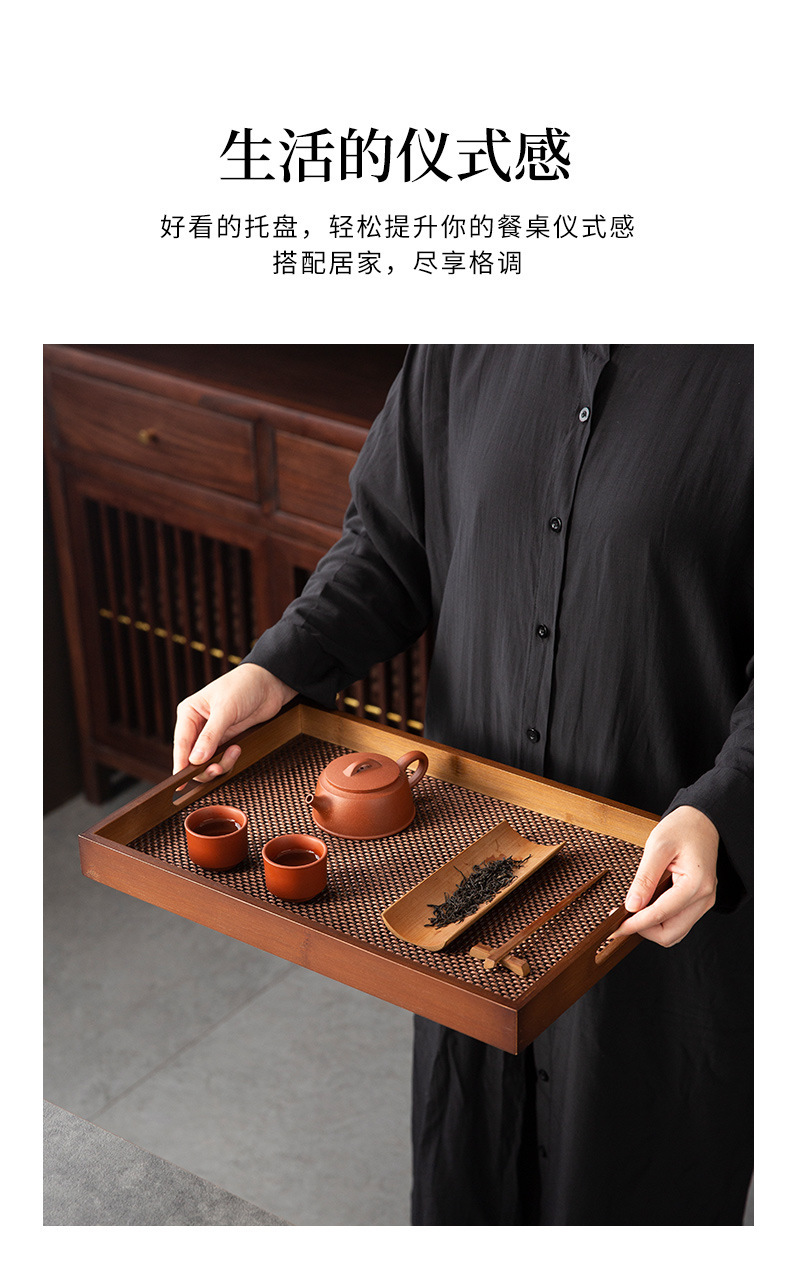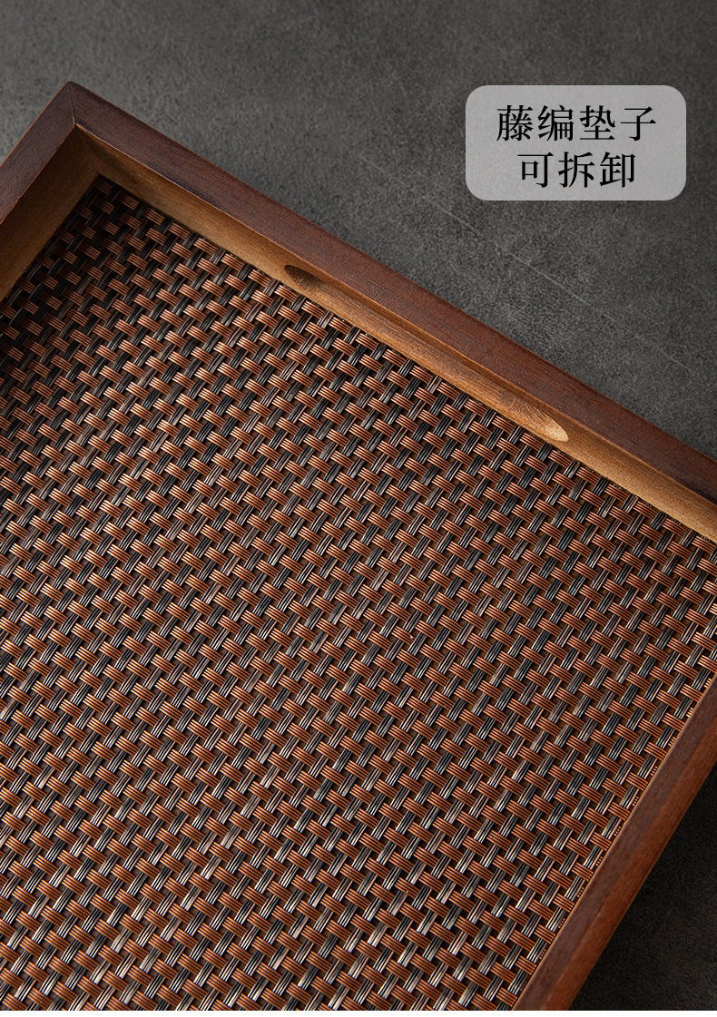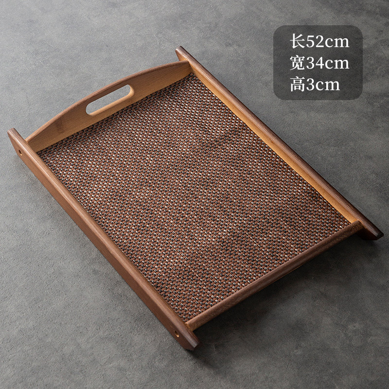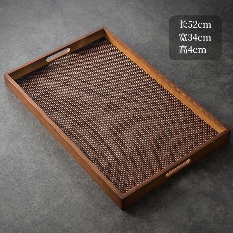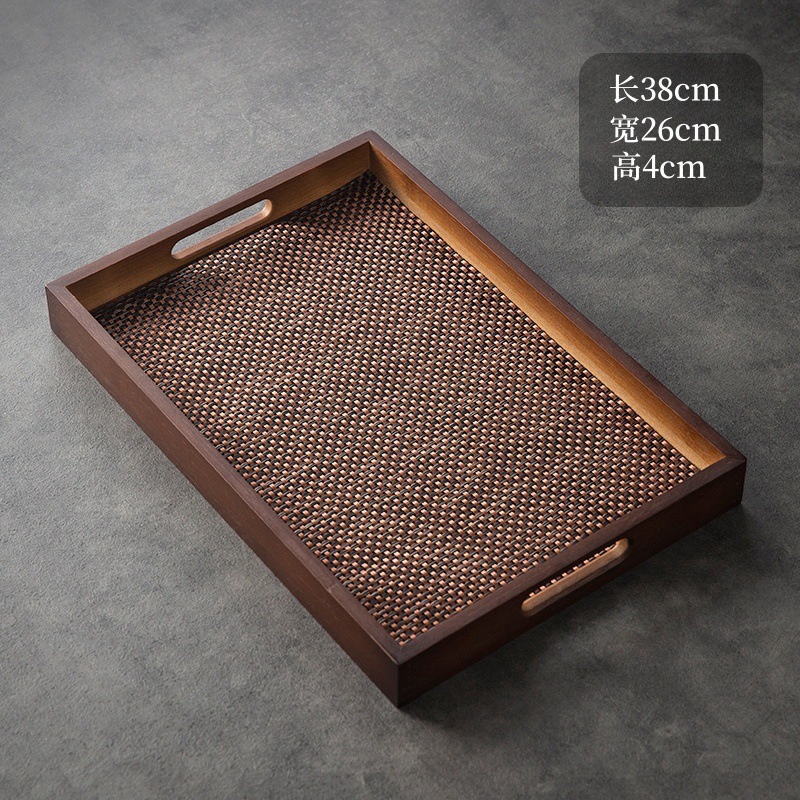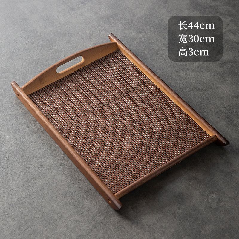 • 다크 커피 손잡이 트레이 [38*26*4] + 인조 대나무 매트