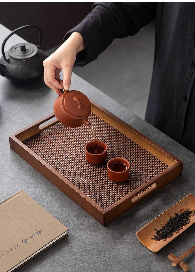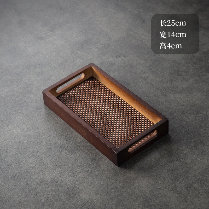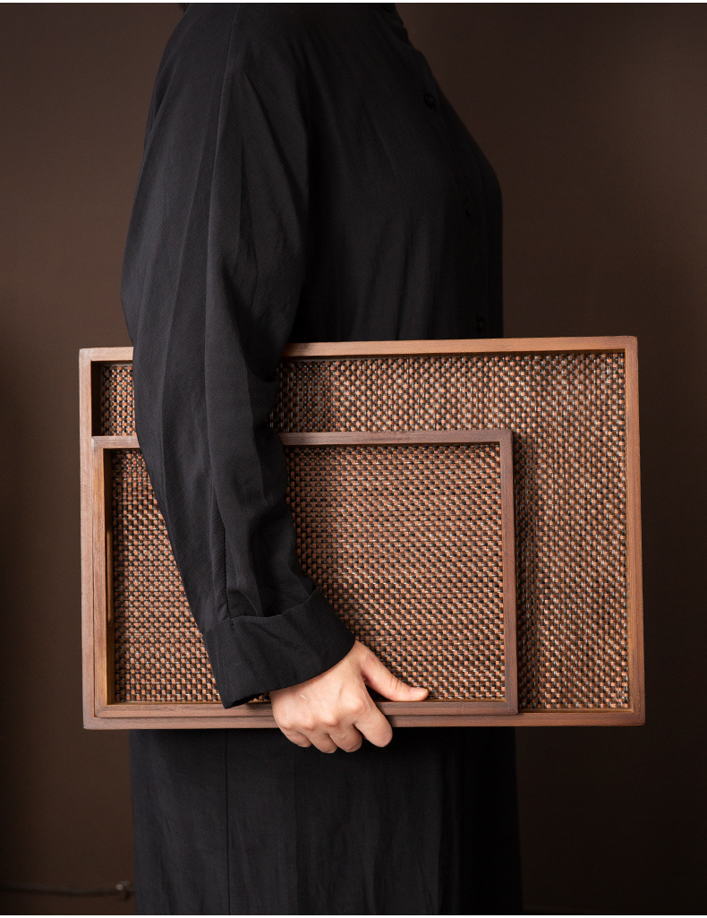 • 다크 커피 손잡이 트레이 [25*14*4] + 인조 대나무 매트