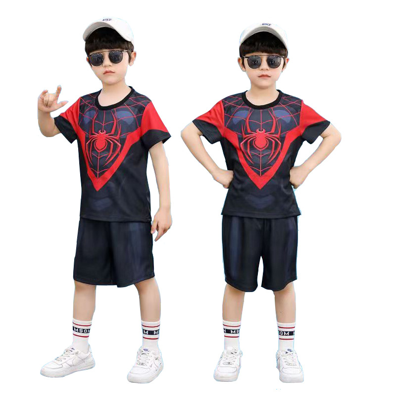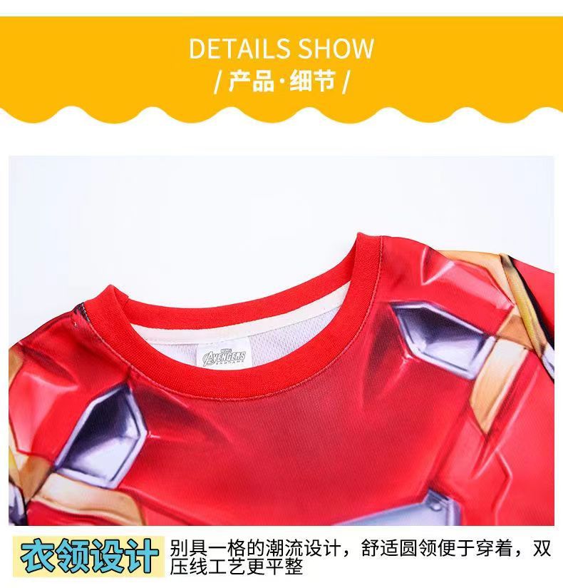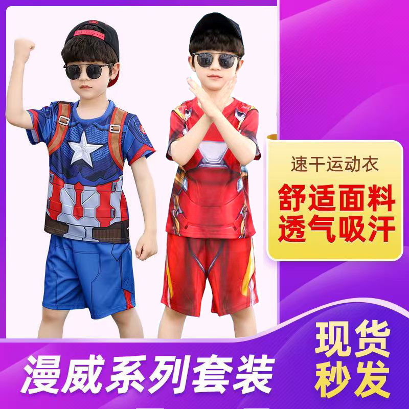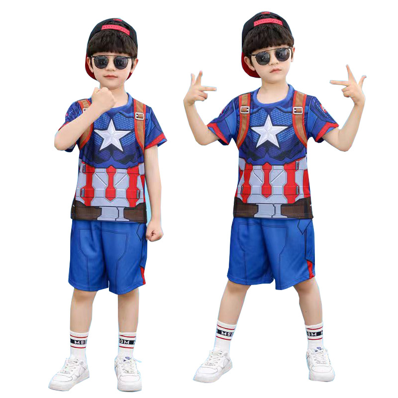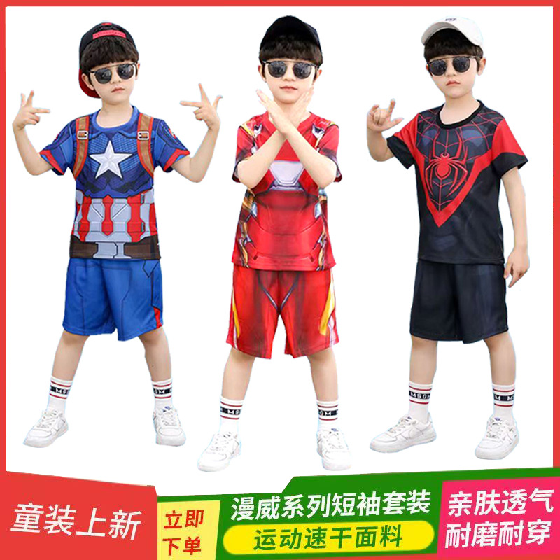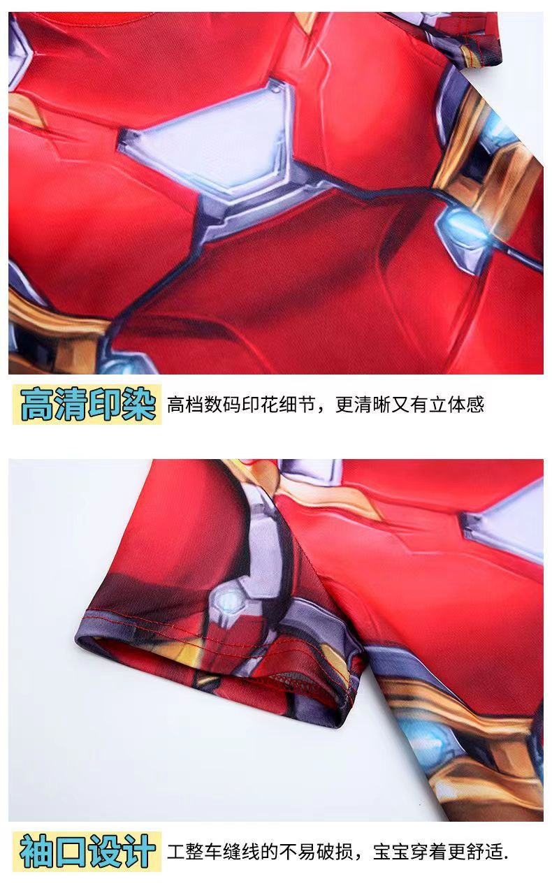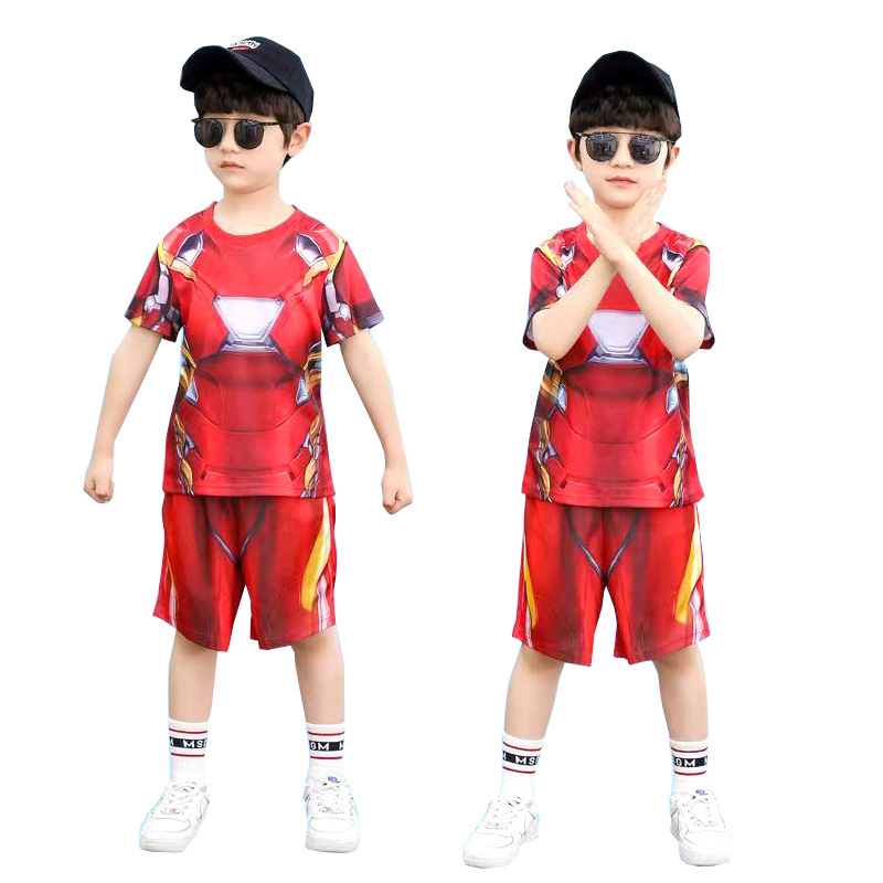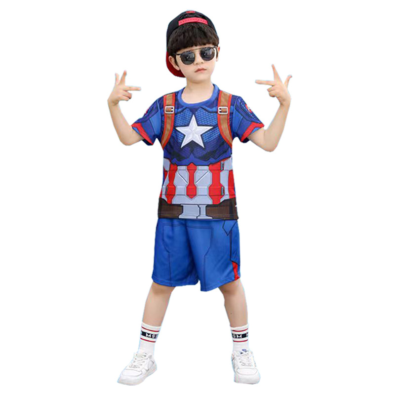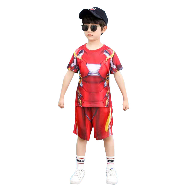 61 아이언 맨 캡틴 아메리카 스파이더 맨 옵티머스 프라임 어린이 빠른 건조 반팔 세트 코스프레 의상