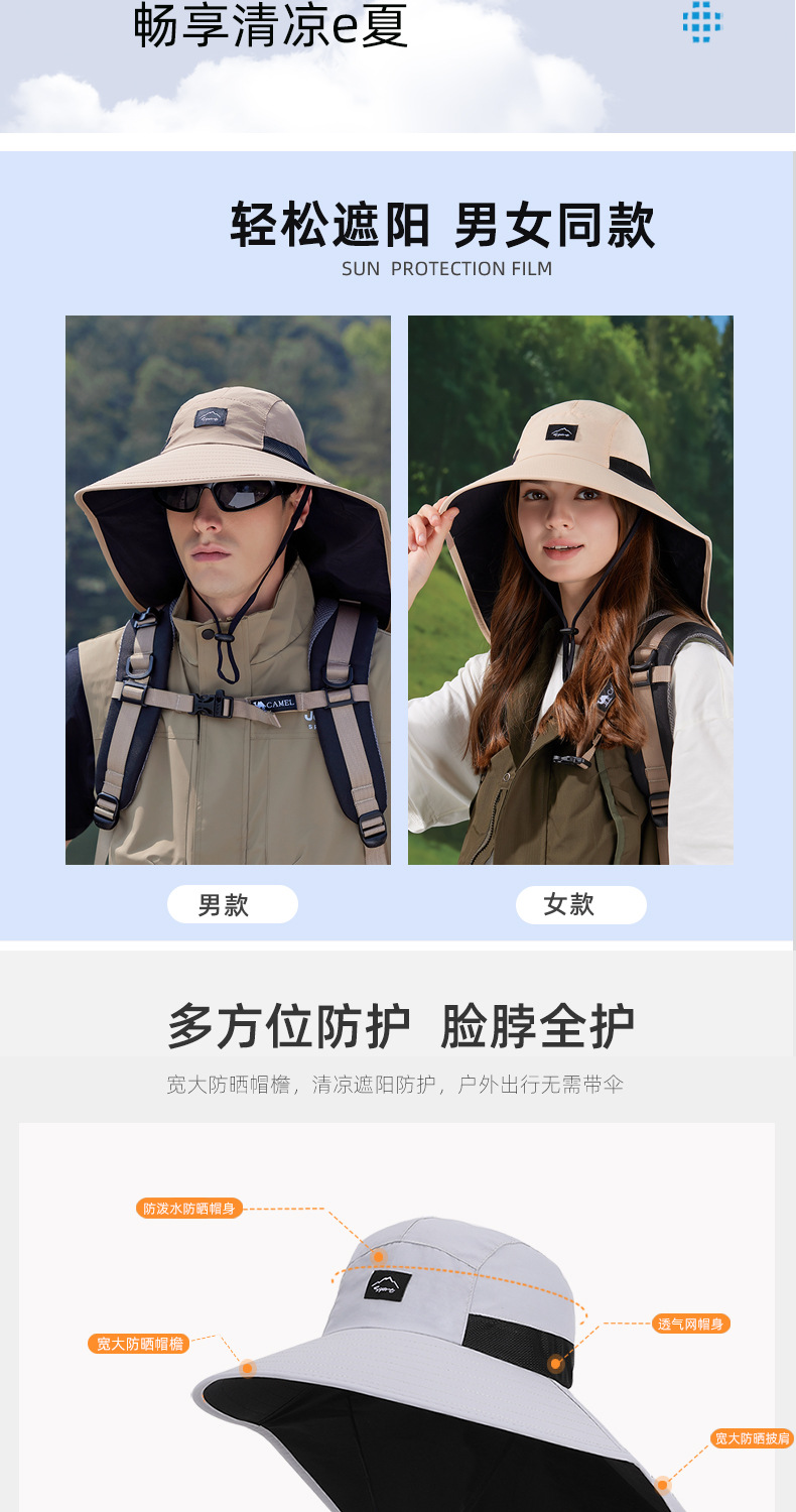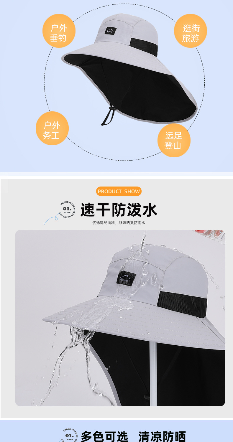여름 야외 대형 브림 자외선 차단제 모자 등산 낚시 빠른 건조 방수 어부 모자 남녀 목도리 목 보호 차양 모자스토어 가기