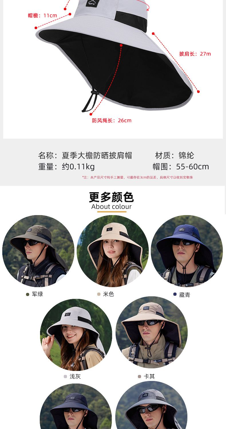 여름 야외 대형 브림 자외선 차단제 모자 등산 낚시 빠른 건조 방수 어부 모자 남녀 목도리 목 보호 차양 모자