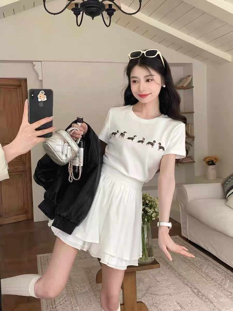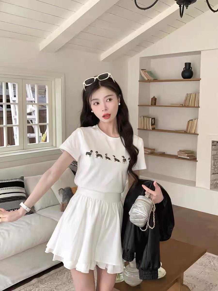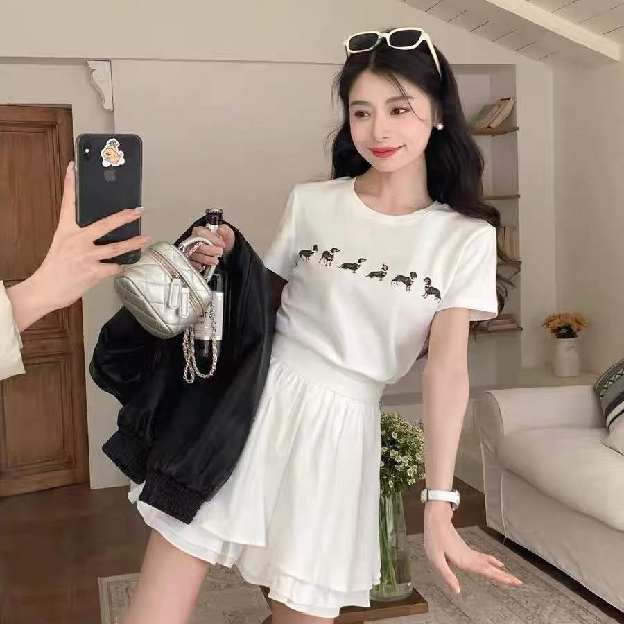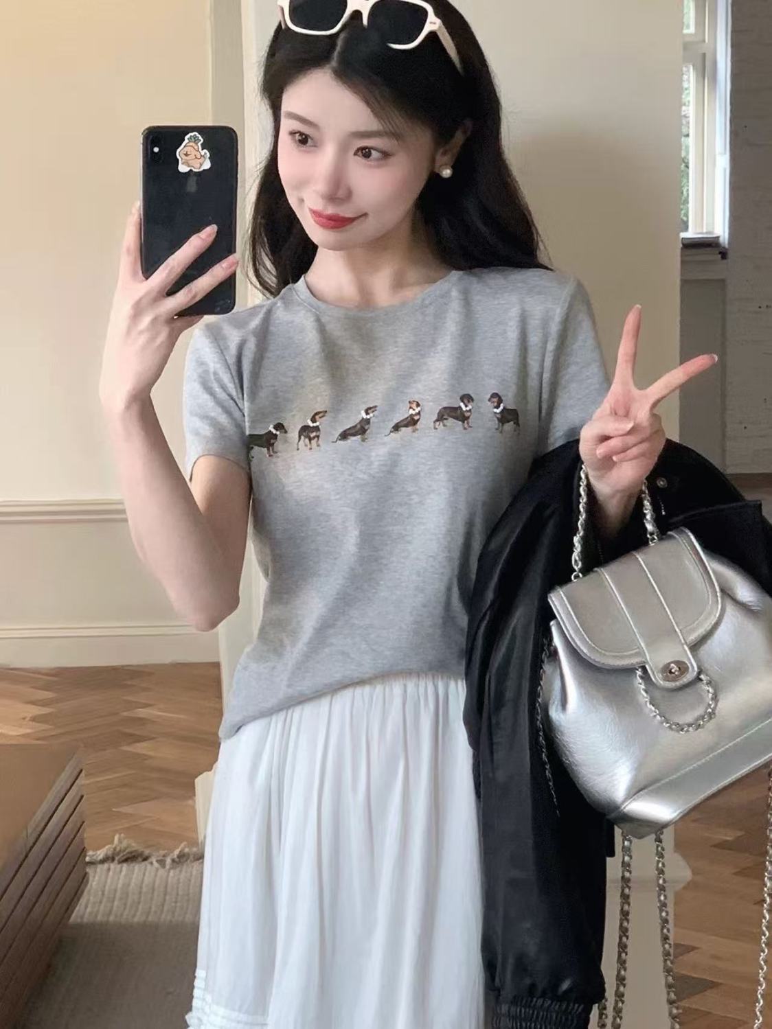 [92 레이온 8 스판덱스 260g 오프셋 인쇄] 여름 신작 트렌디 핫걸 슬림핏 여성용 반팔 티셔츠