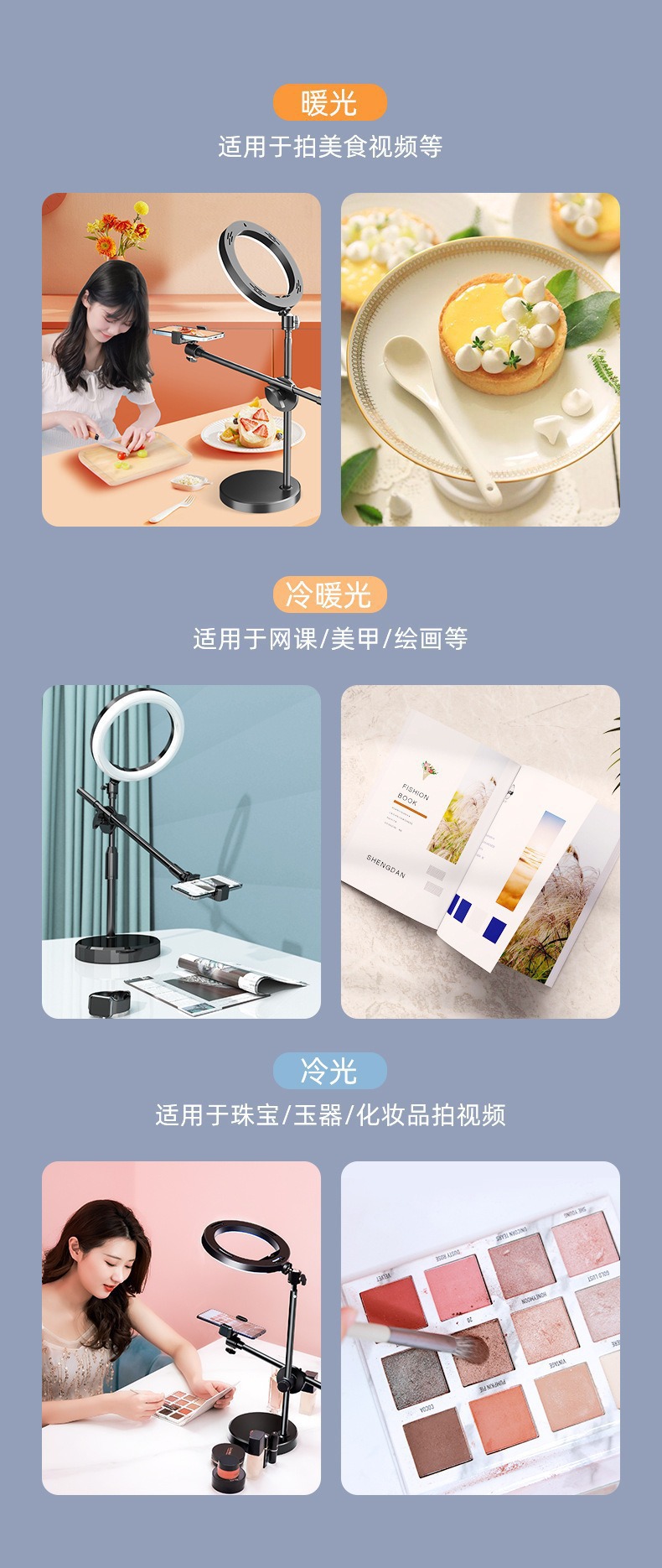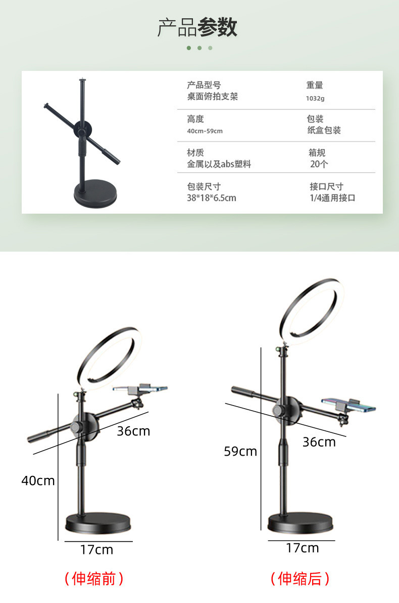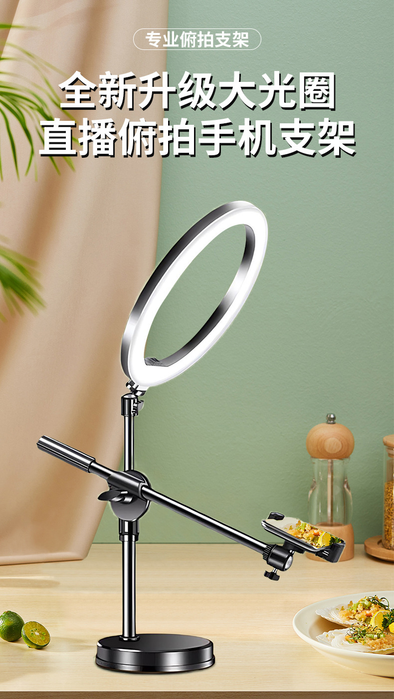 라이브 방송 촬영용 휴대폰 거치대, 보조광, 자유롭게 회전 가능한 촬영등, 버섯형 조명, 탁상용 휴대폰 오버헤드 촬영 거치대