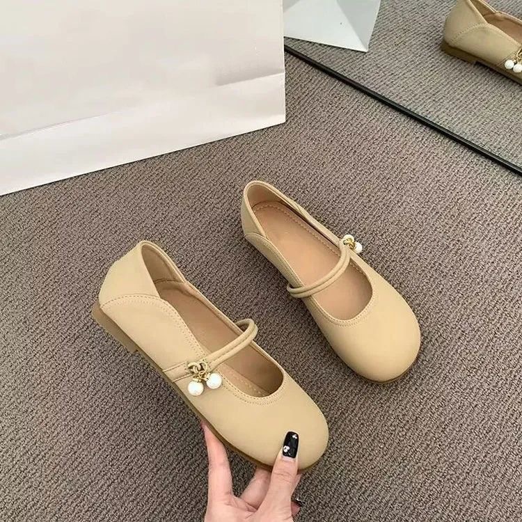 부드러운 가죽 프렌치 스커트 라운드 토 메리 슈즈 2025년 여름 신상 얕은 입 부드러운 밑창 여성화 플랫 캐주얼 가죽 신발스토어 가기