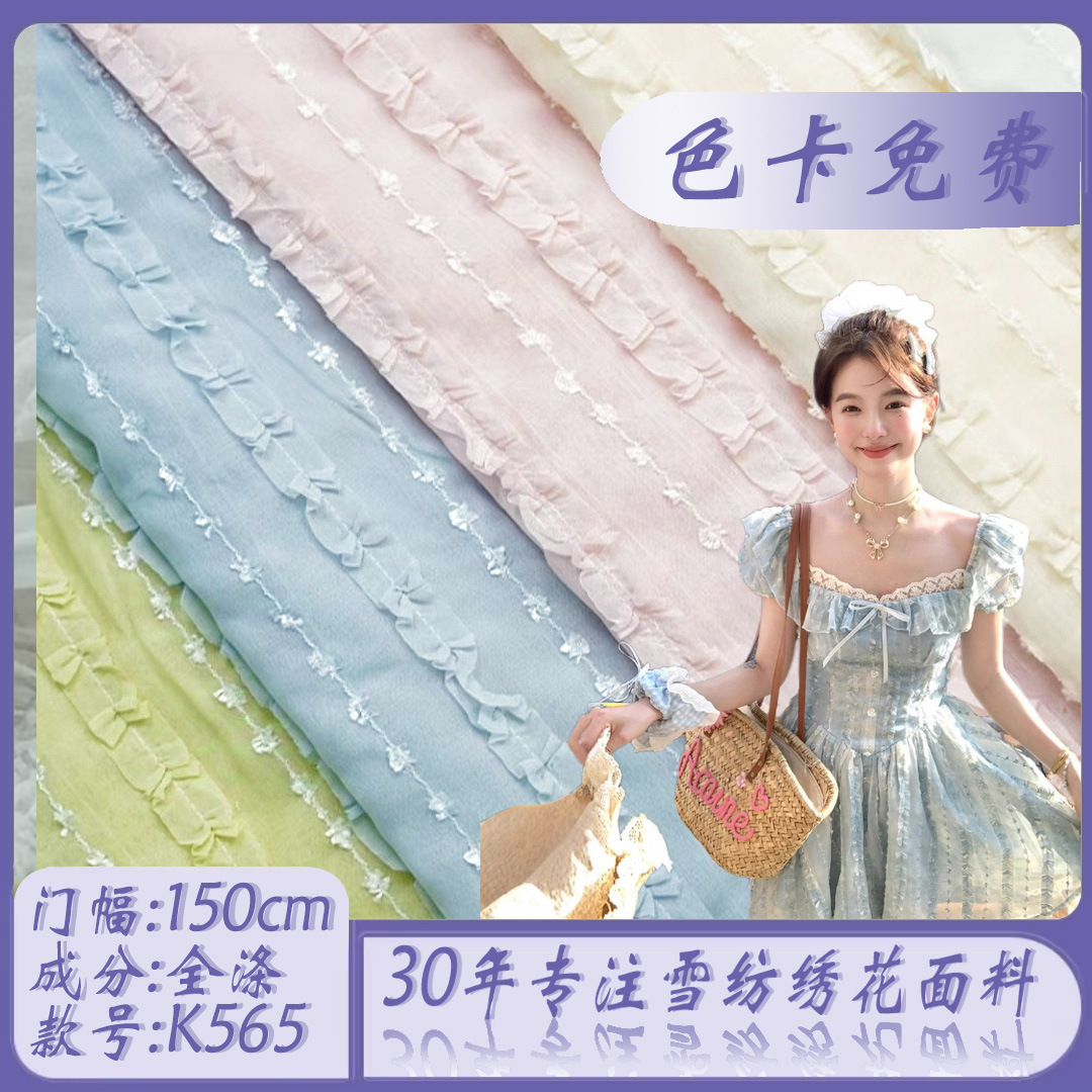 봄과 여름 새로운 스타일 쉬폰 수 놓은 줄무늬 달콤한 작은 신선한 패션 드레스 캐미솔 로리타 장식 패브릭스토어 가기