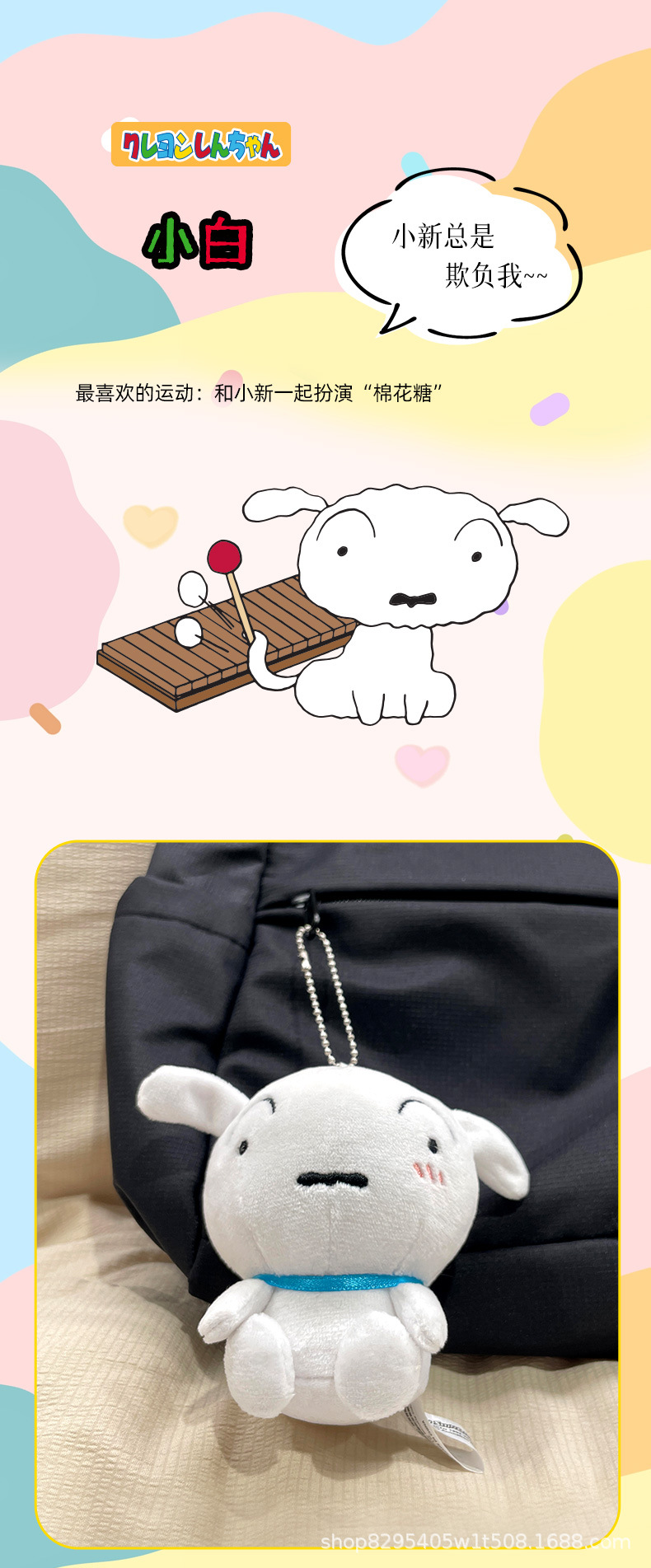정품 크레용 신짱 플러시 펜던트 귀여운 불멸의 Zuo Weimen 펜던트 작은 흰색 개 인형 비디오 게임 도시 놀이 인형스토어 가기