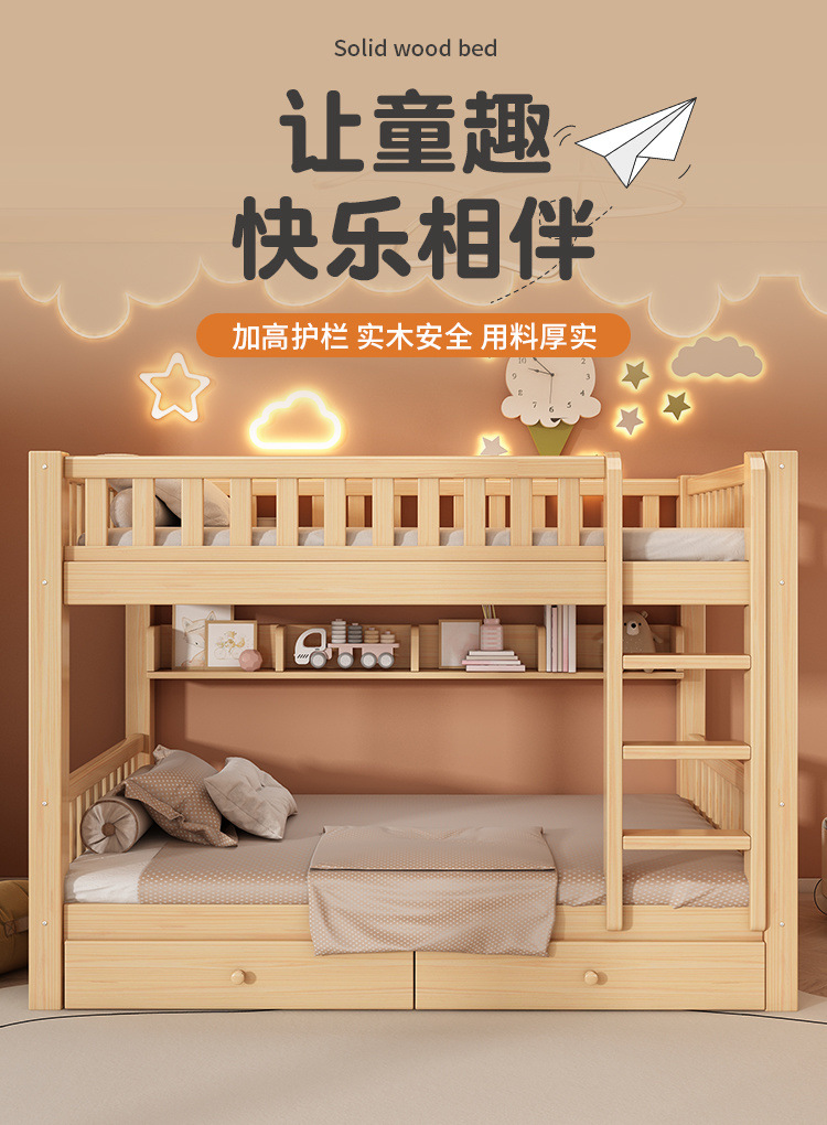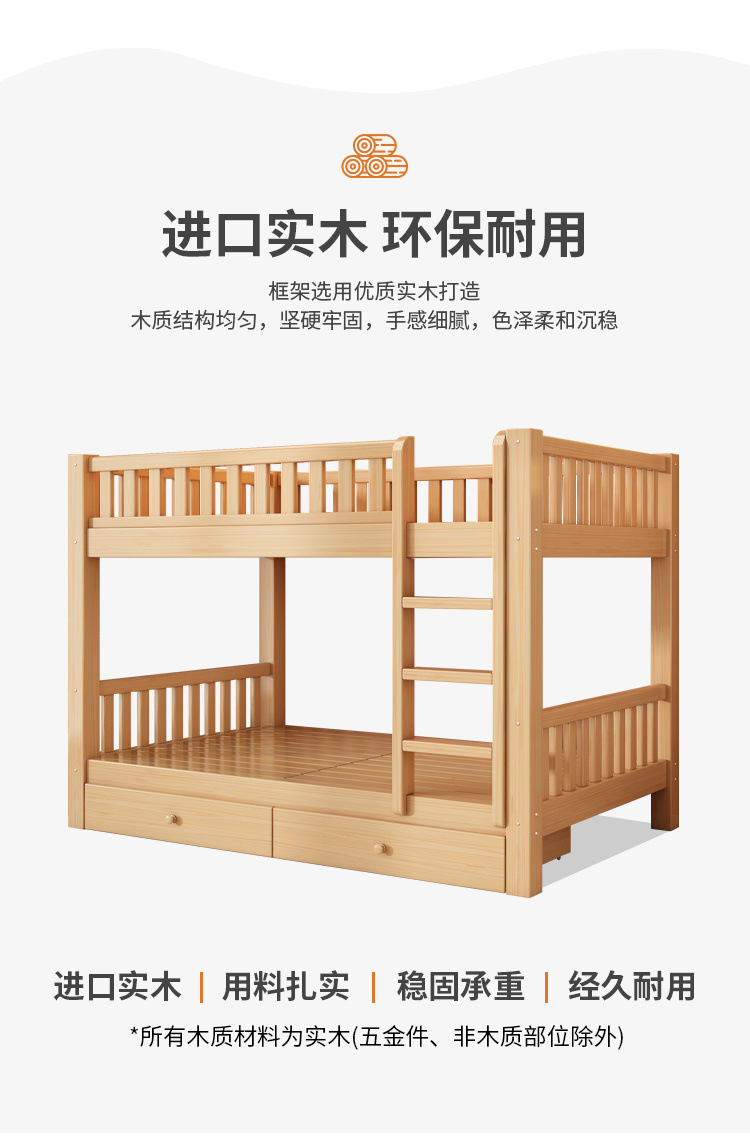 모든 원목 2층 침대, 두껍고 심플하고 모던한 이층 침대, 높낮이 이층 기숙사, 성인용 이층 침대, 어린이용 원피스스토어 가기