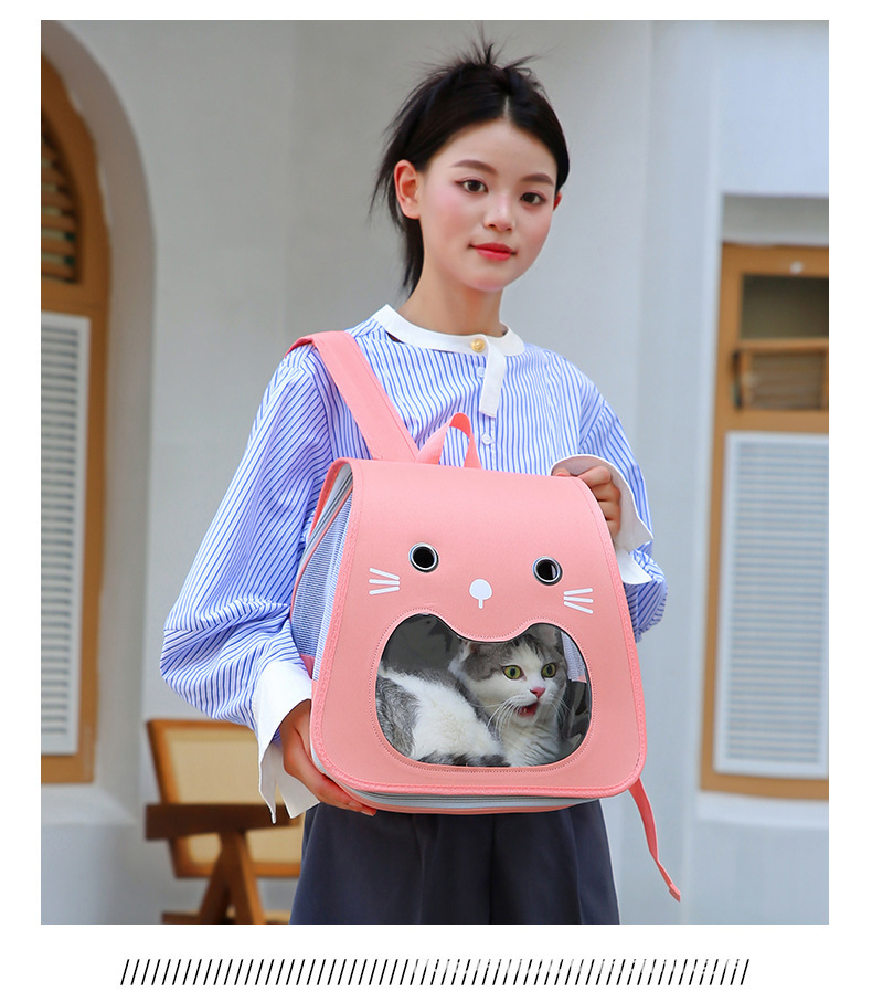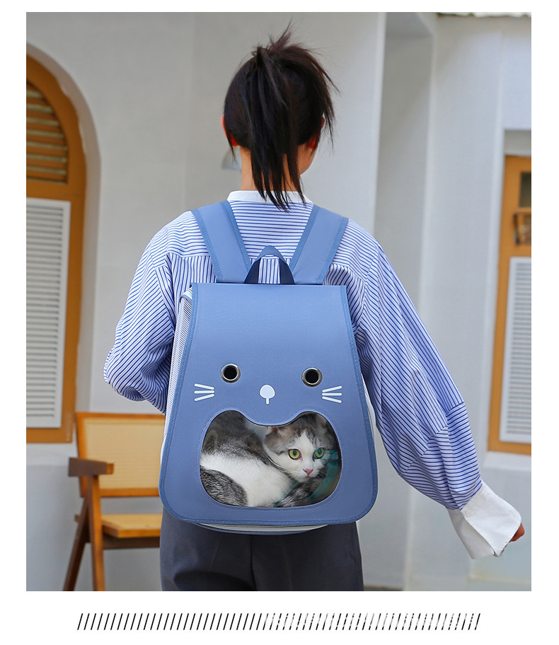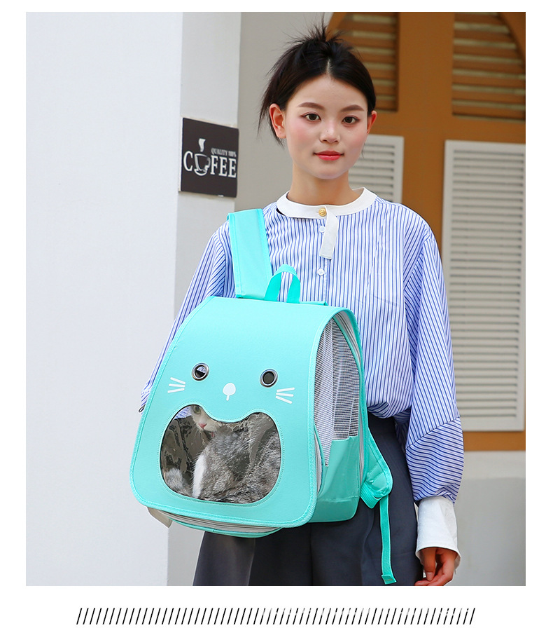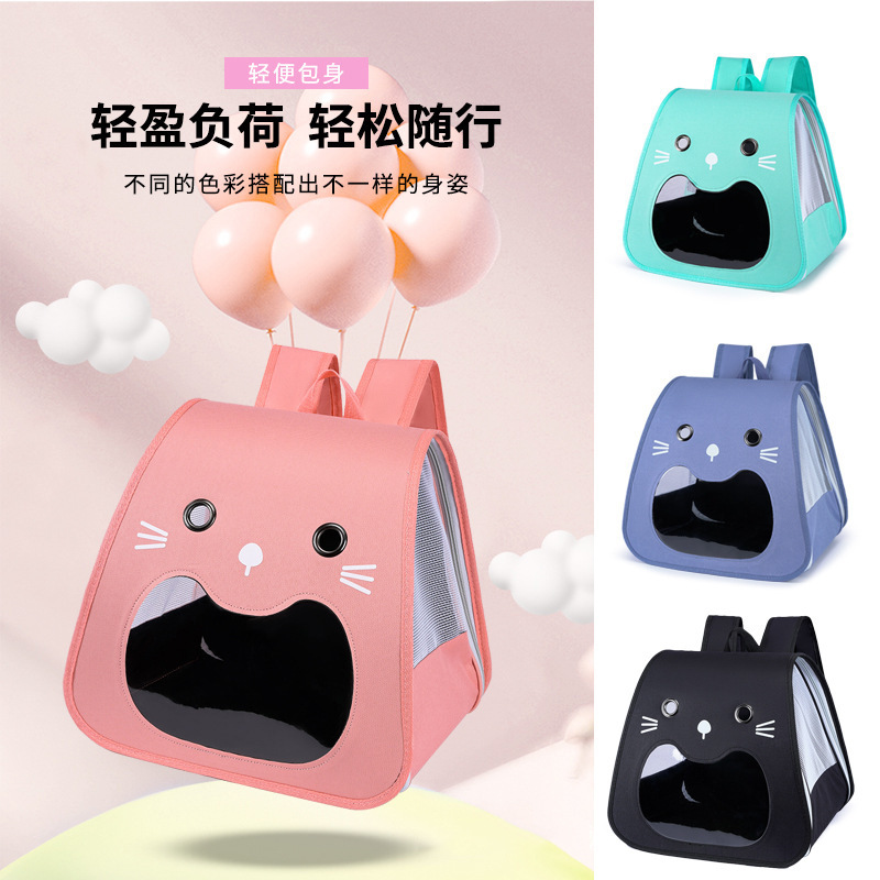 고양이 가방, 휴대용 애완 동물 가방, 웃는 얼굴 고양이 배낭, 다면 메쉬 중공 통기성 대용량 고양이 가방, 개스토어 가기