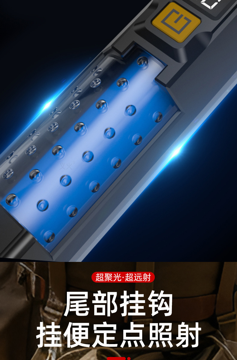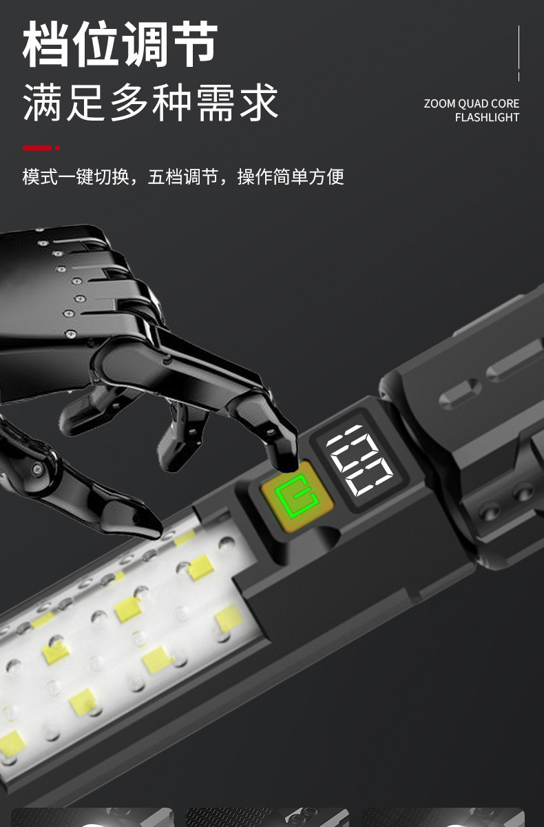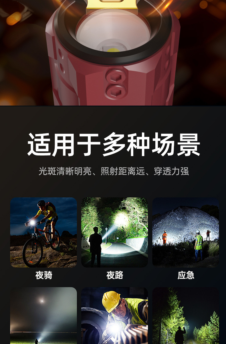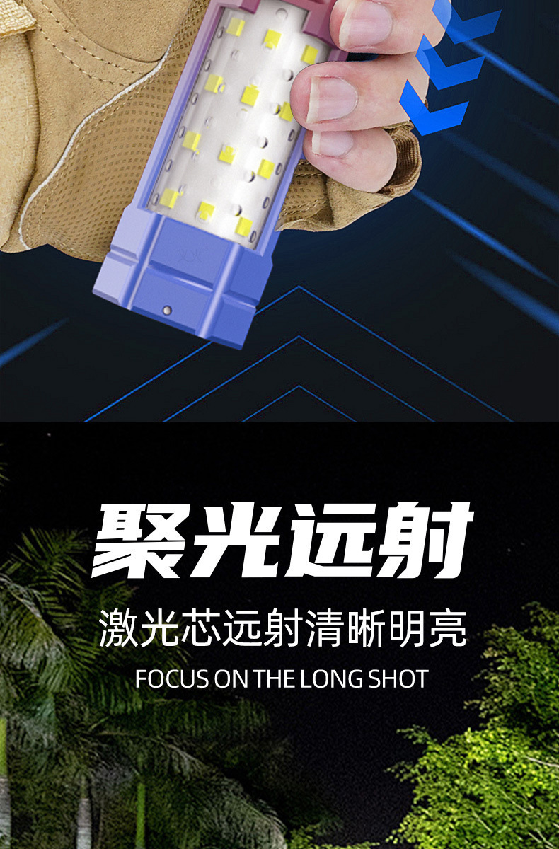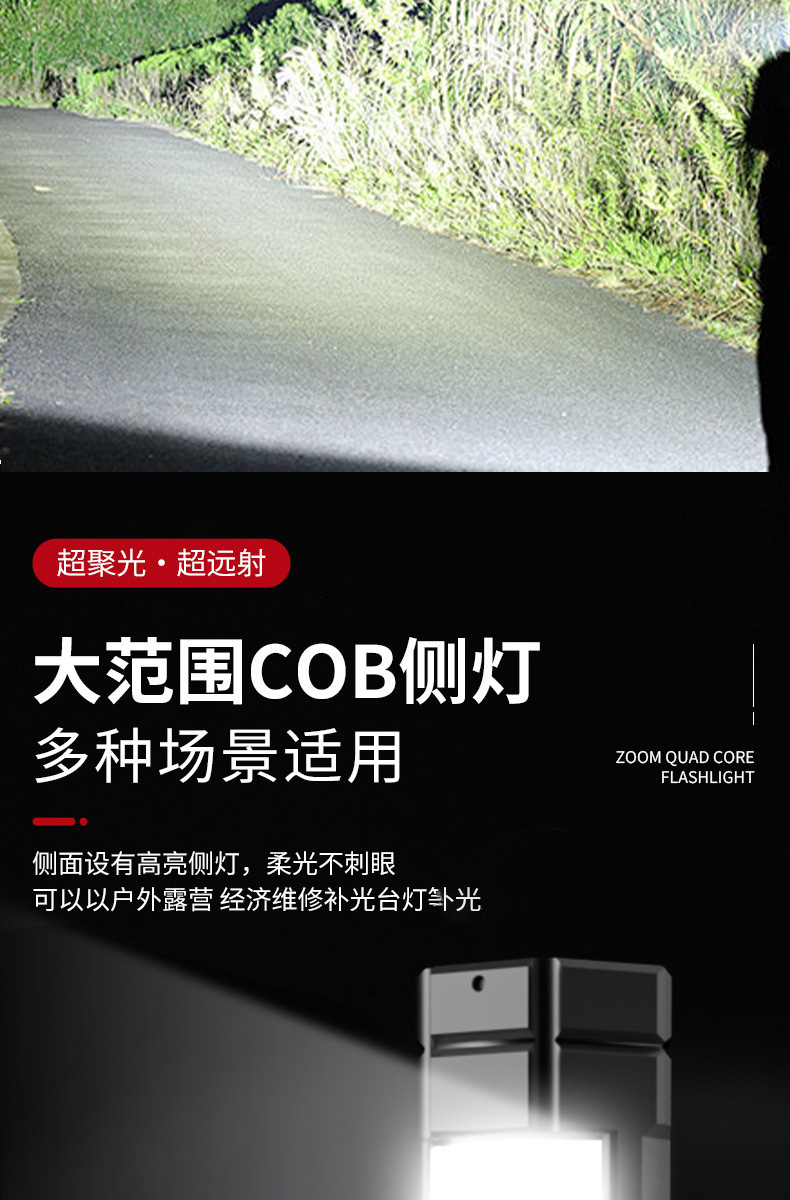 크로스보더 줌 기능 손전등 차량용 휴대용 작업등 야외 LED 손전등 경고 탐조등 충전식 핸드헬드스토어 가기