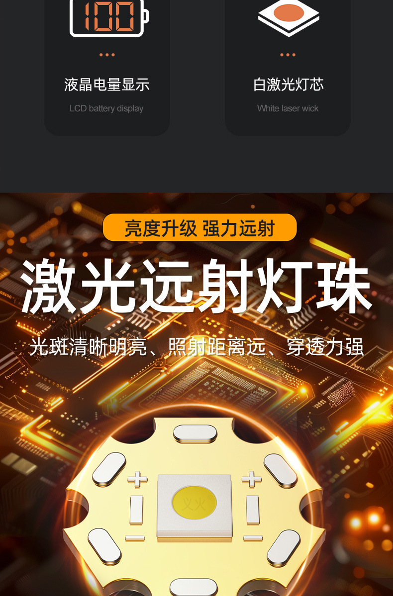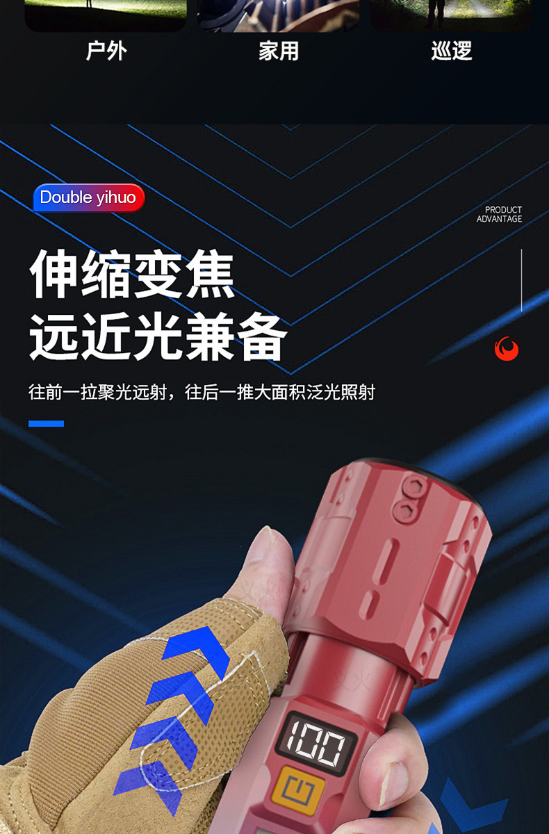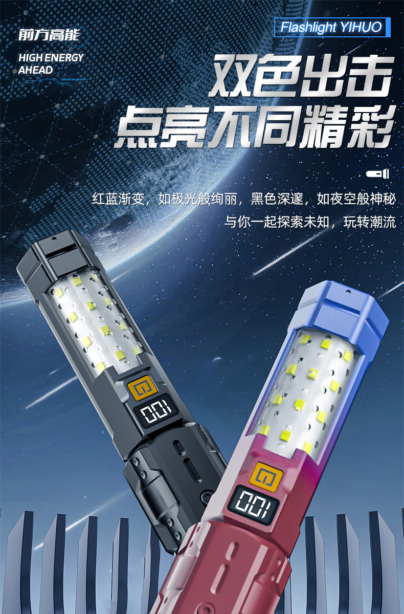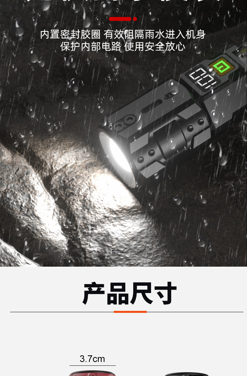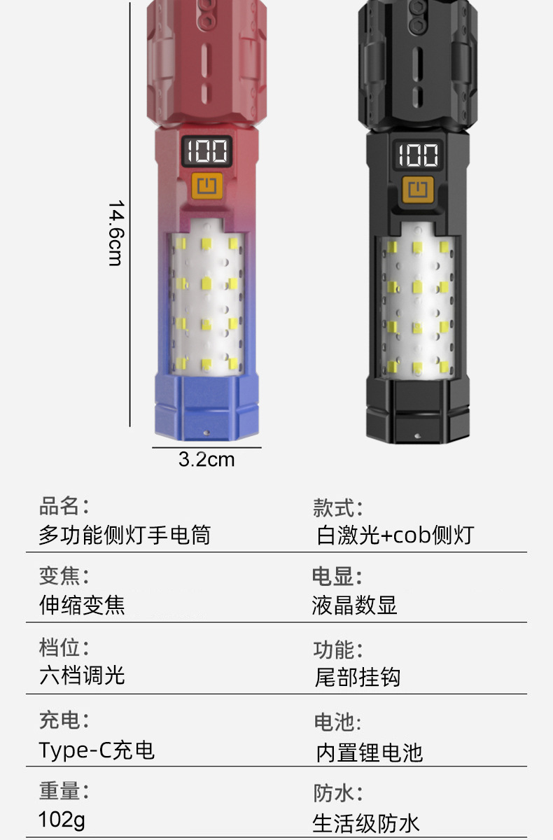 크로스보더 줌 기능 손전등 차량용 휴대용 작업등 야외 LED 손전등 경고 탐조등 충전식 핸드헬드스토어 가기