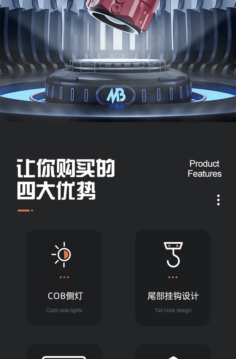 크로스보더 줌 기능 손전등 차량용 휴대용 작업등 야외 LED 손전등 경고 탐조등 충전식 핸드헬드