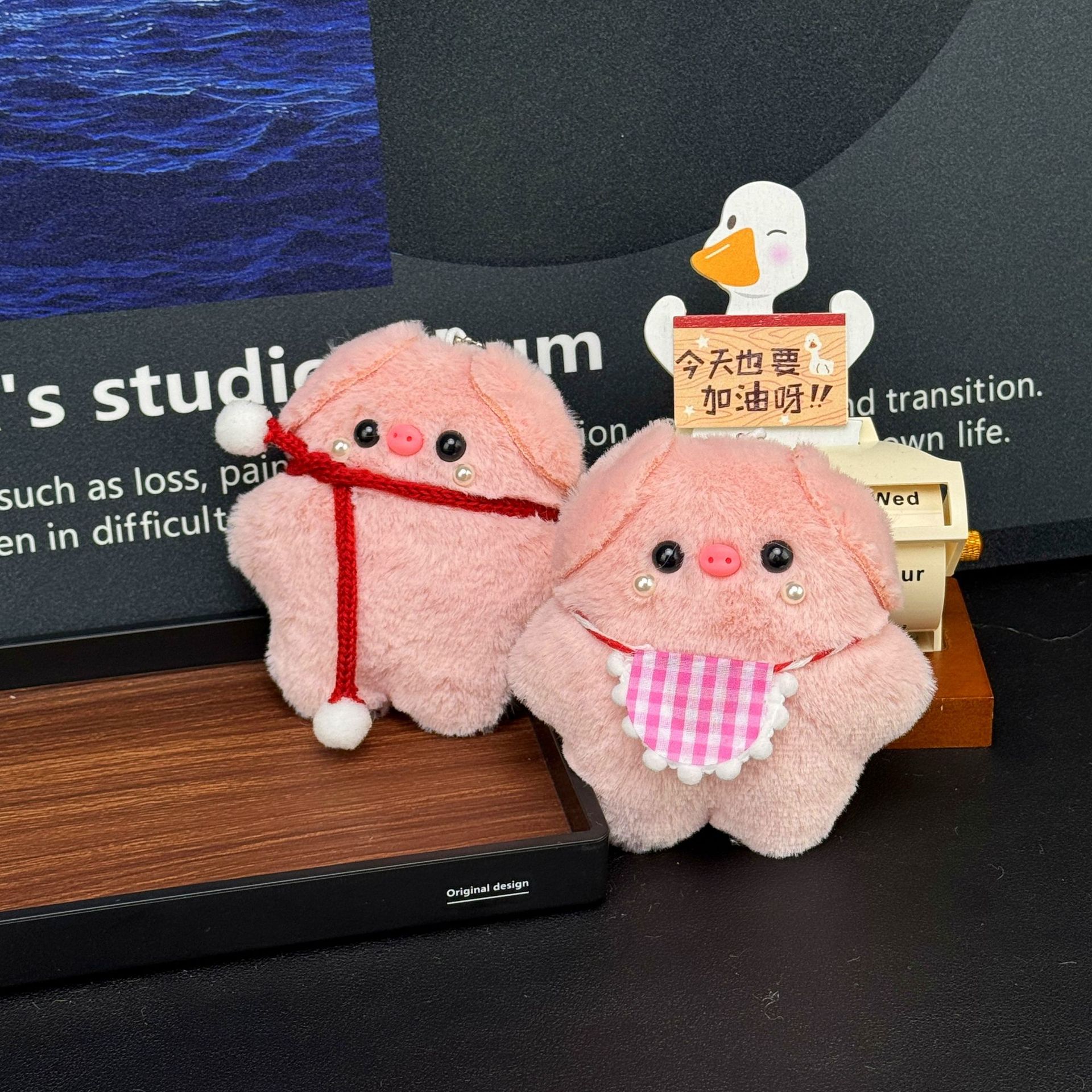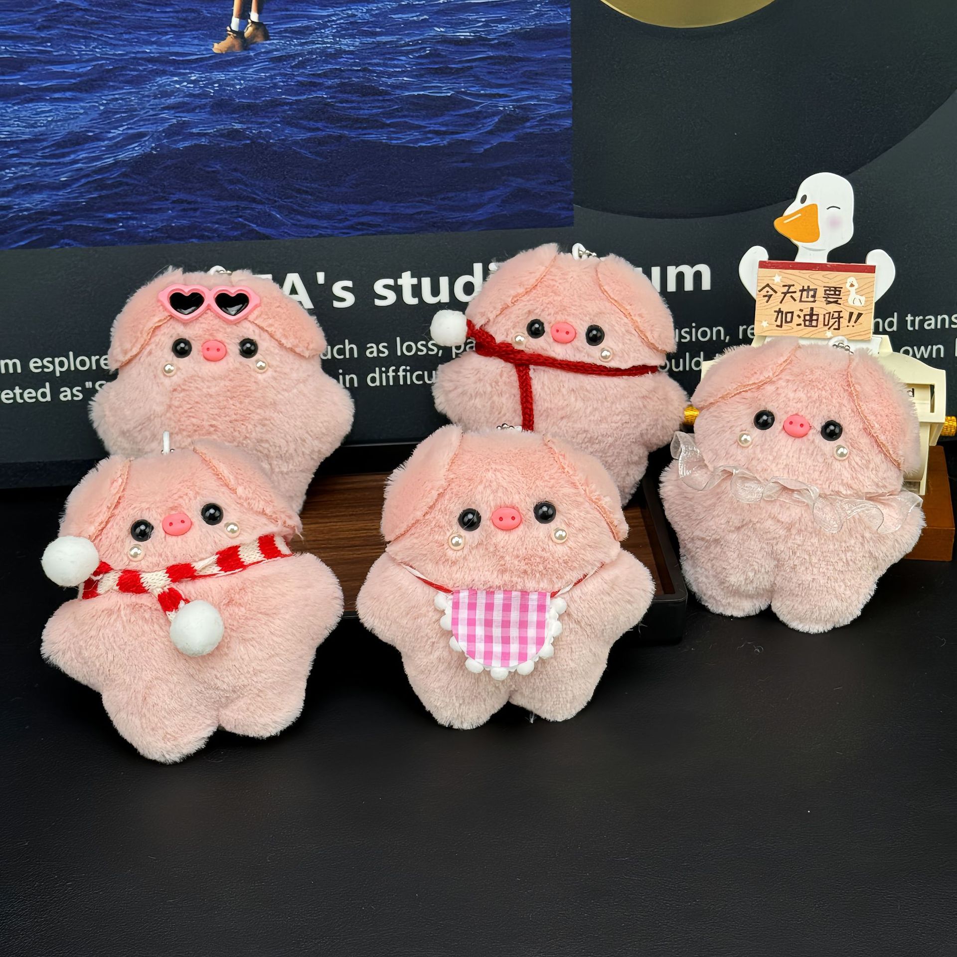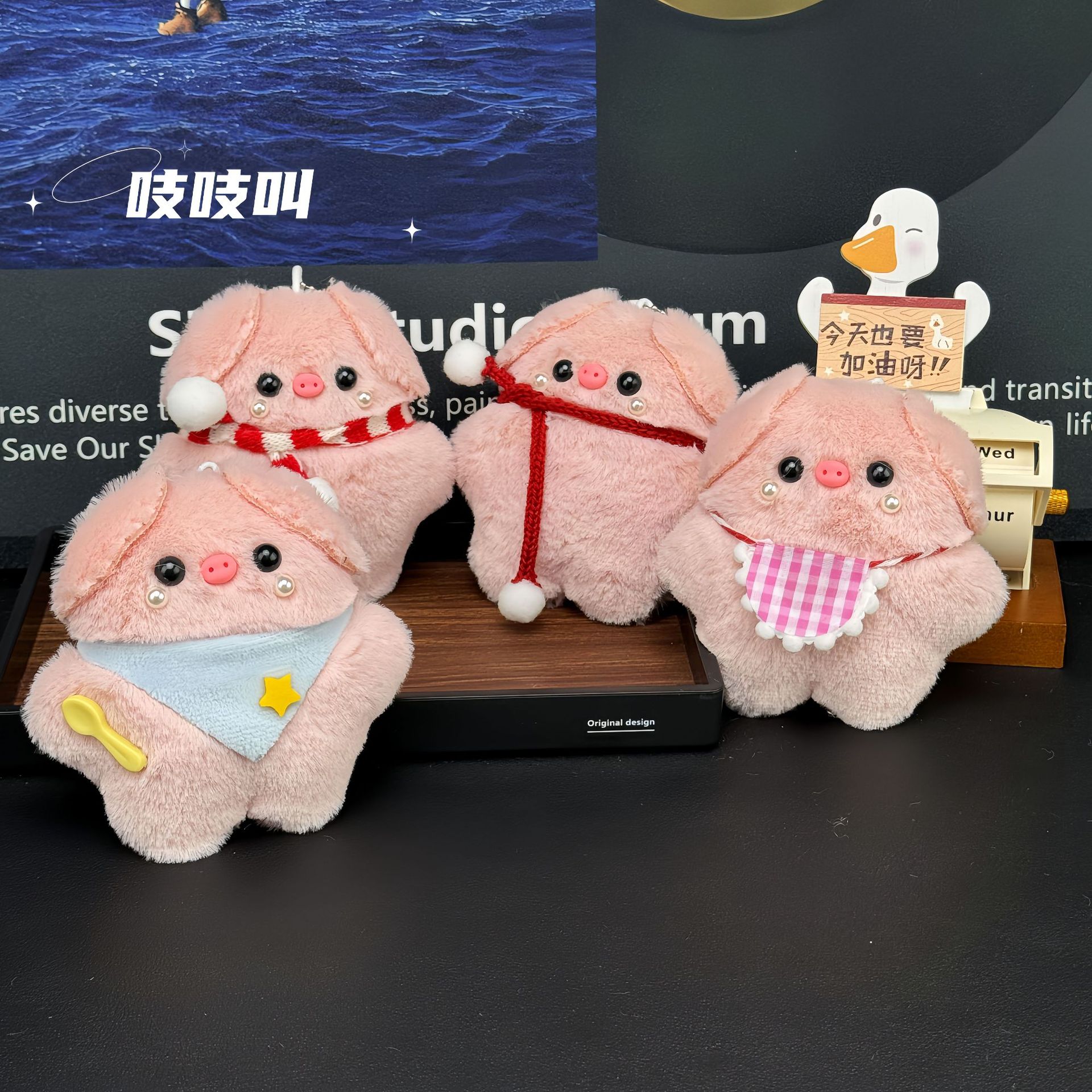 창조적 인 귀여운 돼지 스카프 턱받이 돼지 만화 키 체인 펜던트 인형 가방 봉제 펜던트 인형 도매
