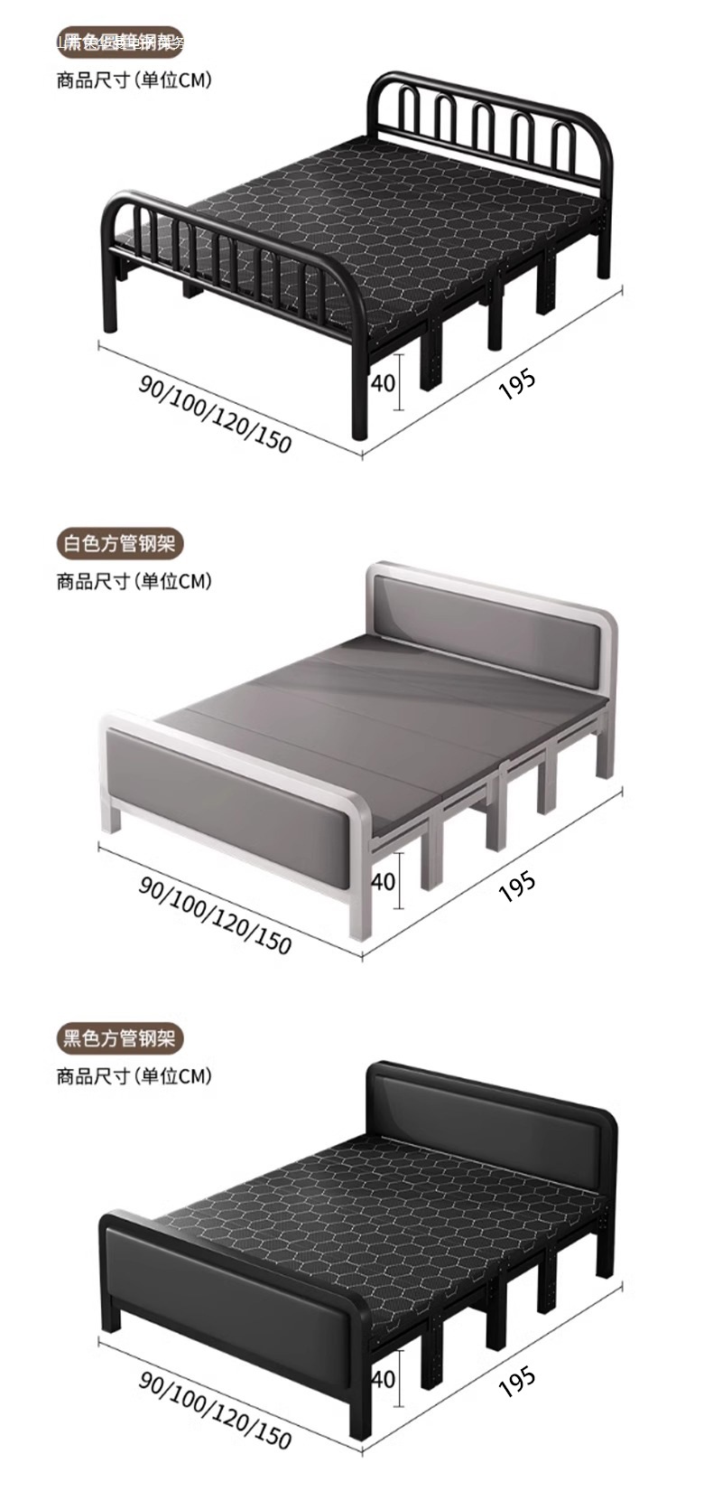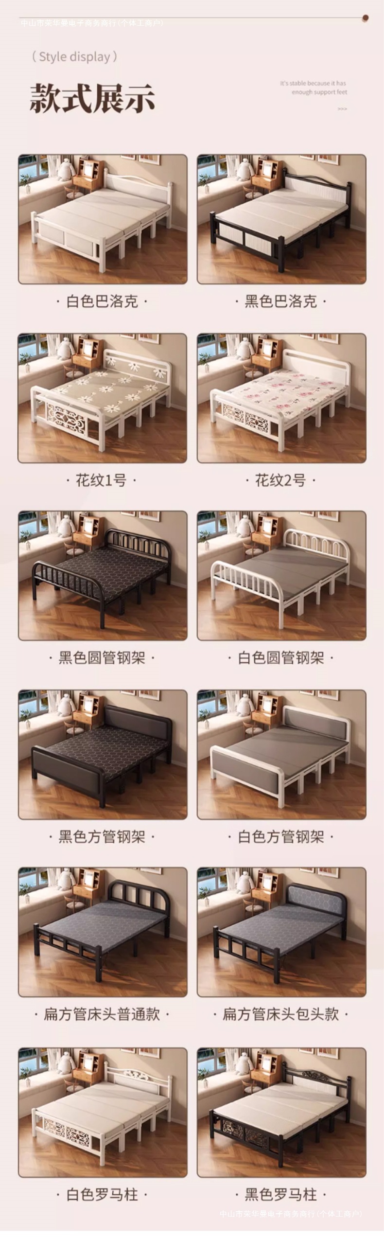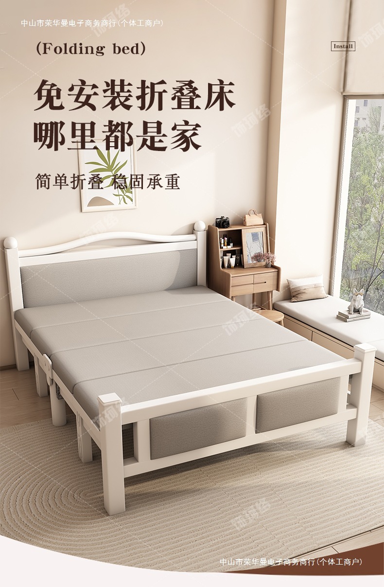 접이식 침대 싱글 침대 간단한 가정용 점심 식사 1.5 미터 더블 침대 마스터 침실 성인 임대 작은 침대 철 하드 보드 침대스토어 가기