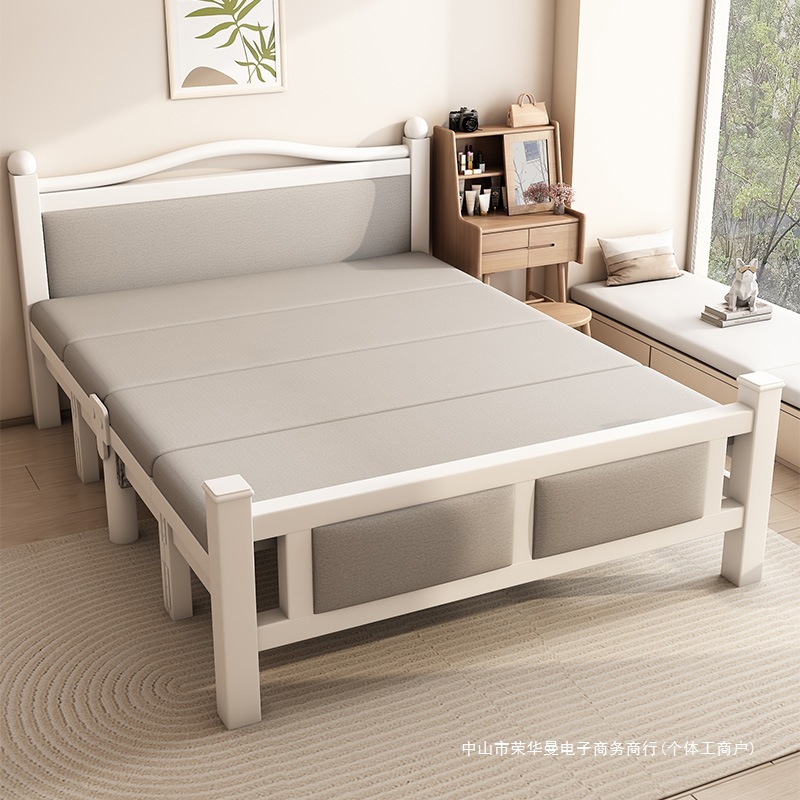 접이식 침대 싱글 침대 간단한 가정용 점심 식사 1.5 미터 더블 침대 마스터 침실 성인 임대 작은 침대 철 하드 보드 침대