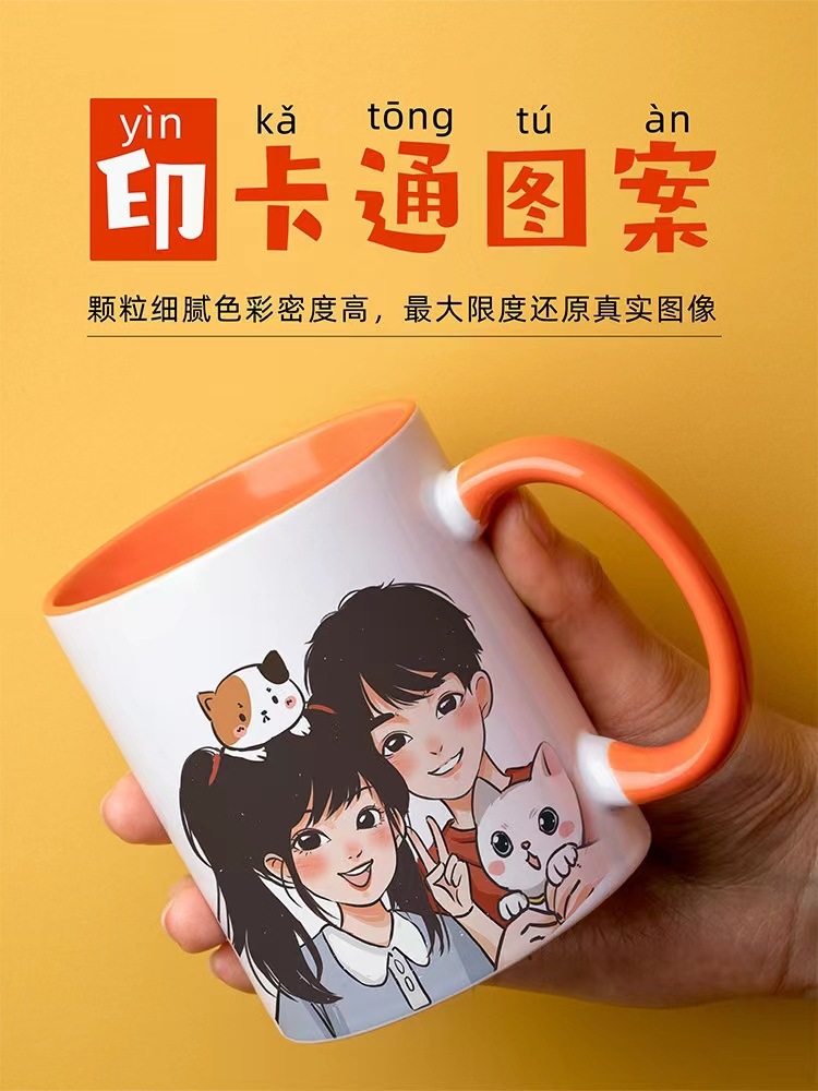 국경 간 세라믹 머그잔 맞춤형 로고 자동차 광고 컵 레터링 컵 커피 컵 인쇄 열 전달 컵스토어 가기
