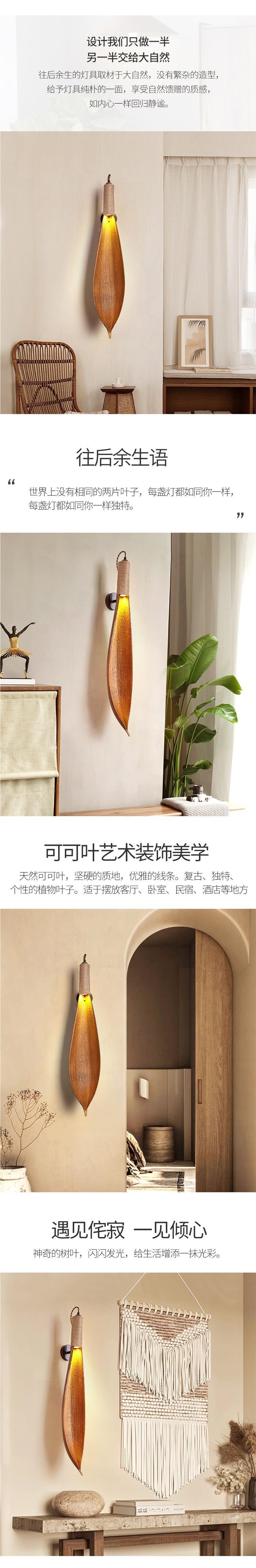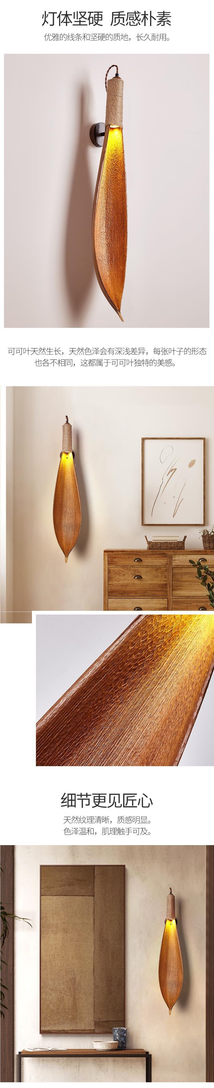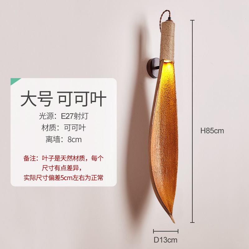 코코아 잎 디자이너 크리 에이 티브 중고 빈티지 B & B 복고풍 레스토랑 와비 사비 스타일 벽 램프 거실 벽 램프스토어 가기