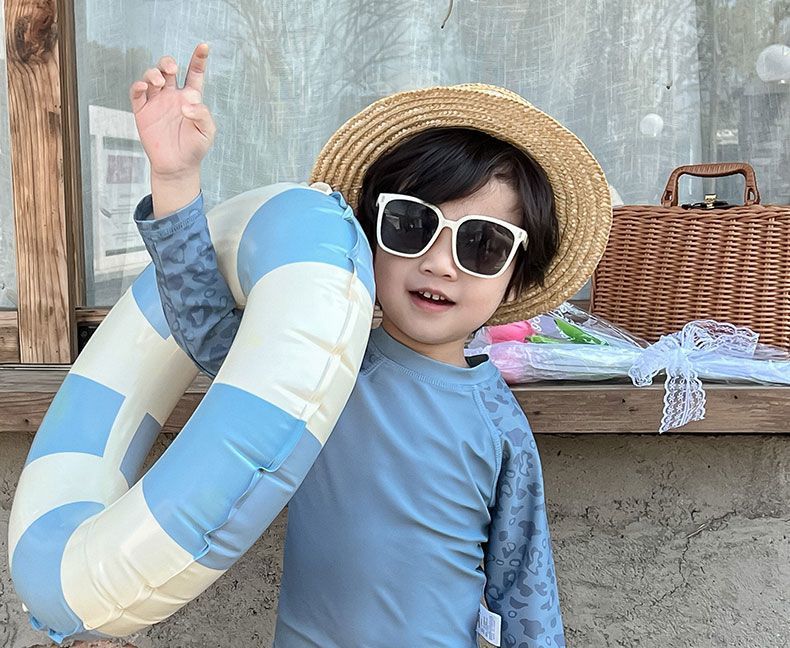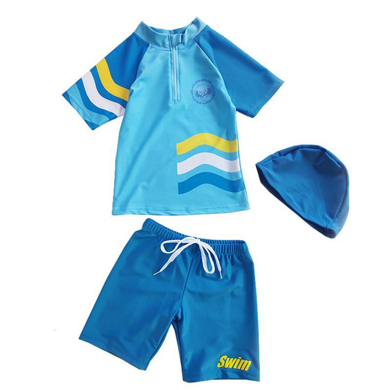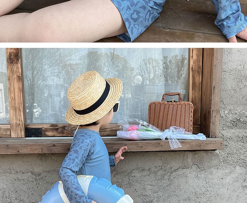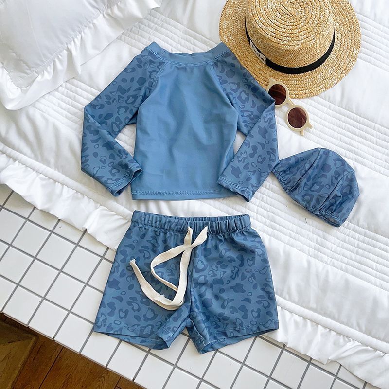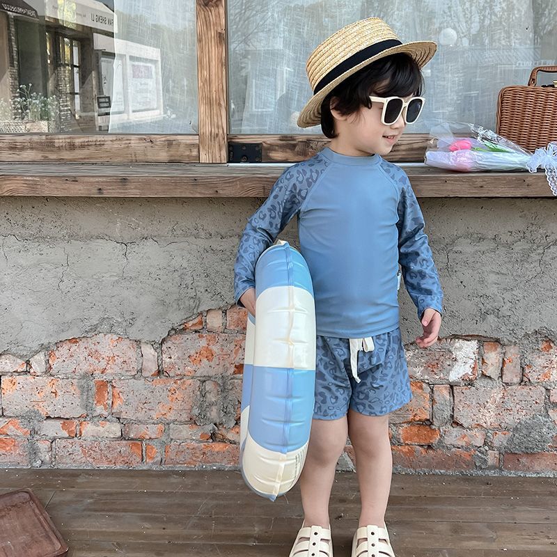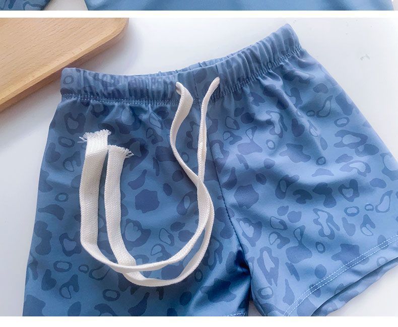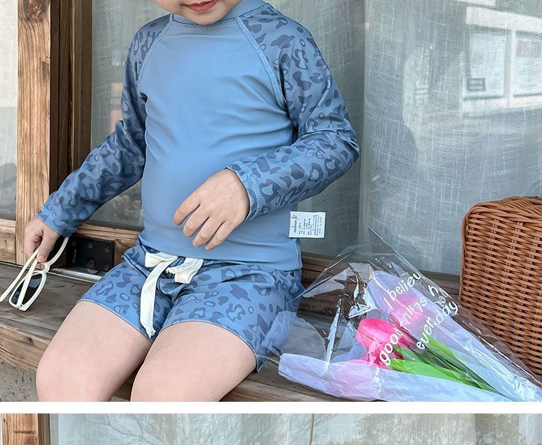Q3Y 아동용 수영복 소년 스플릿 긴팔 속건성 자외선 차단 수영 트렁크 세트 큰 어린이와 아기를 위한 귀여운 표범 무늬 수영복