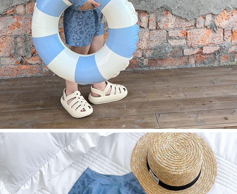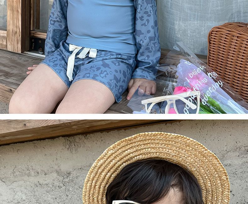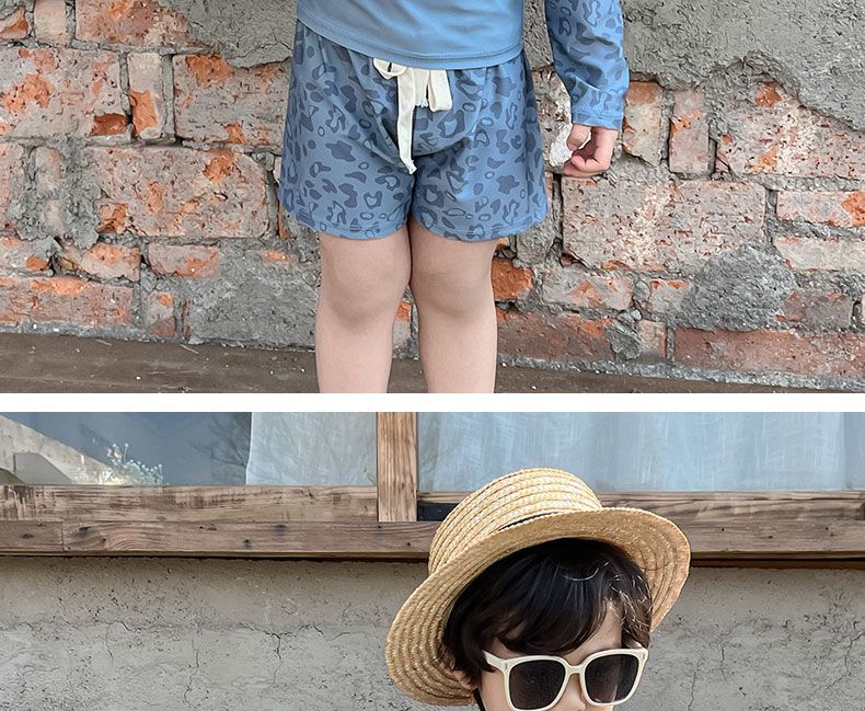 Q3Y 아동용 수영복 소년 스플릿 긴팔 속건성 자외선 차단 수영 트렁크 세트 큰 어린이와 아기를 위한 귀여운 표범 무늬 수영복스토어 가기