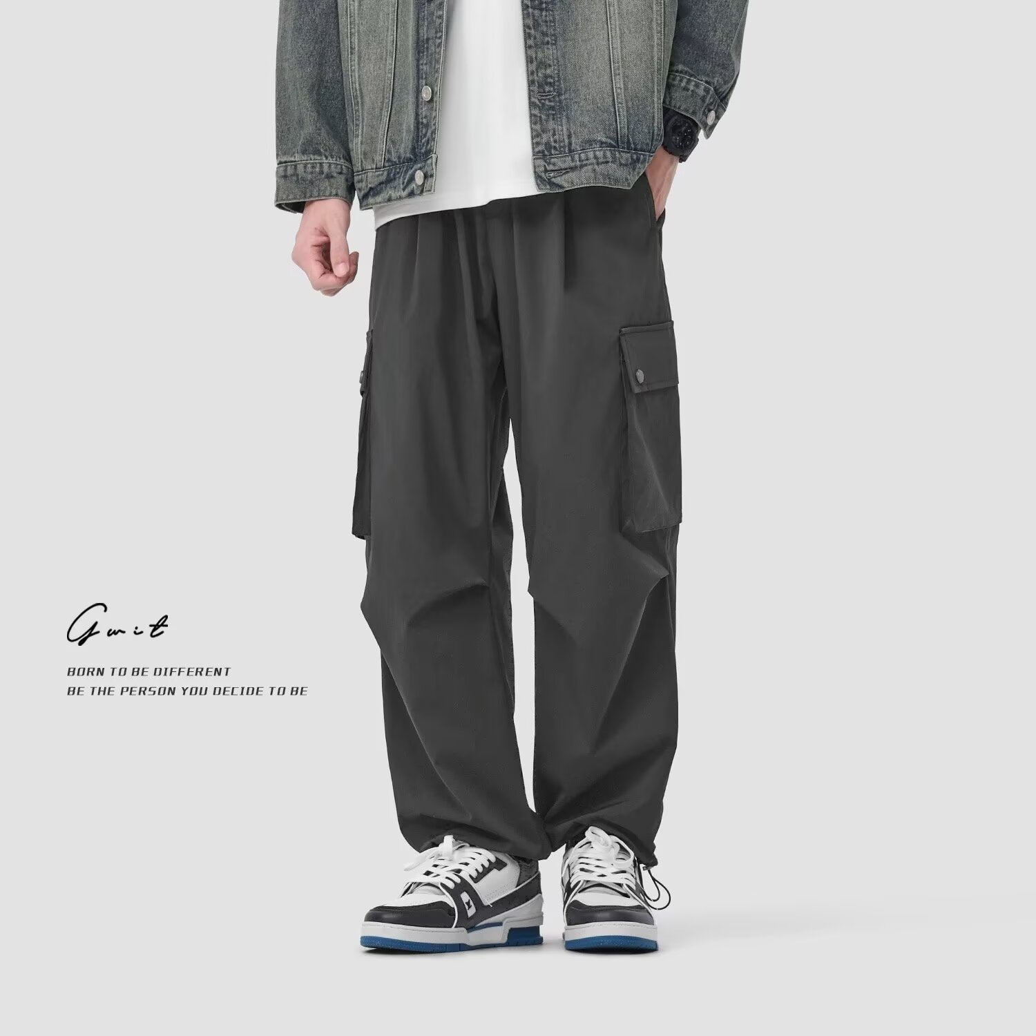 새로운 복고풍 드레이프 등산 야외 작업복 대형 포켓 낙하산 바지 세련된 레깅스 캐주얼 바지 남성용 충전 바지 유행스토어 가기