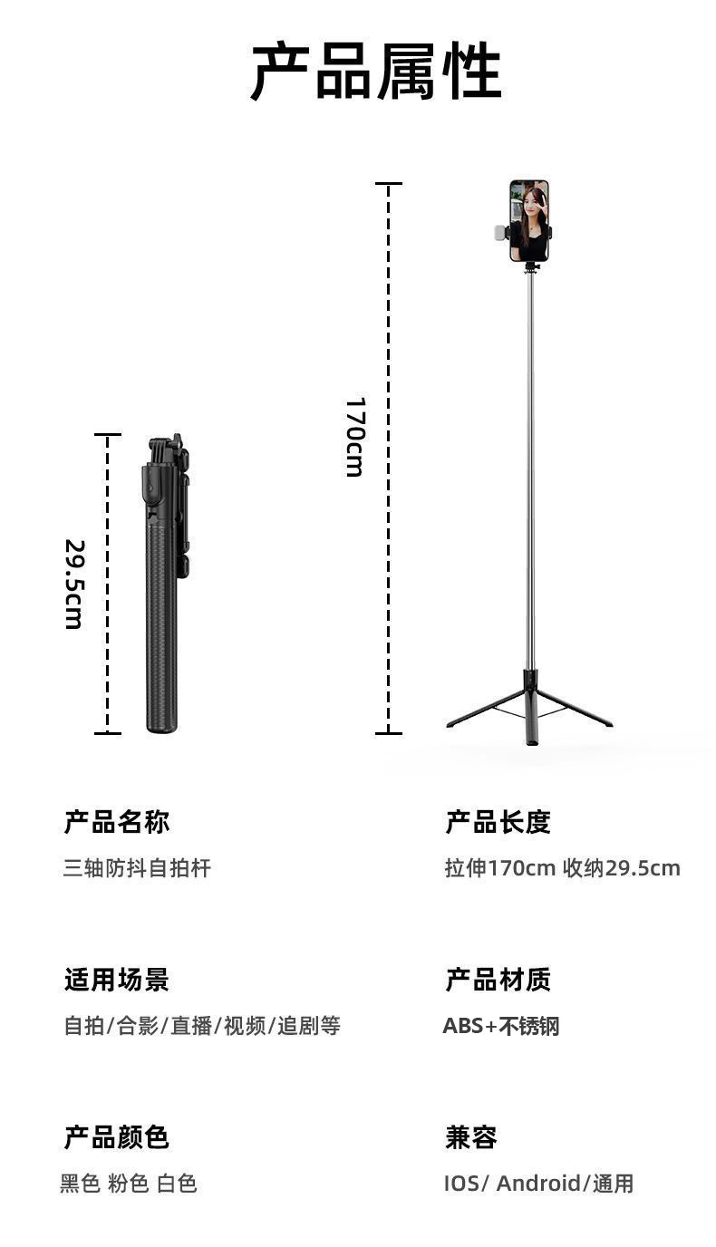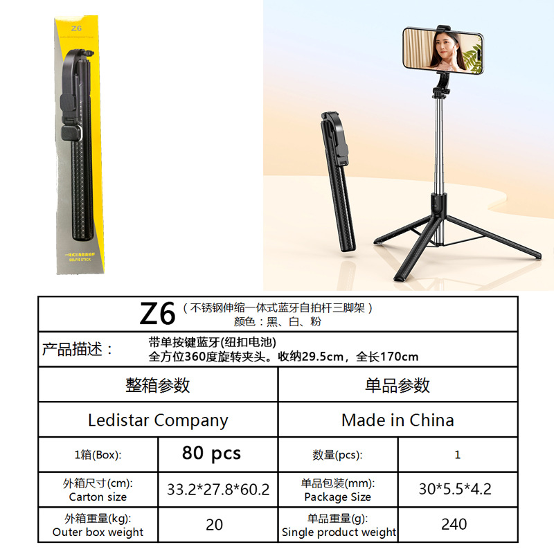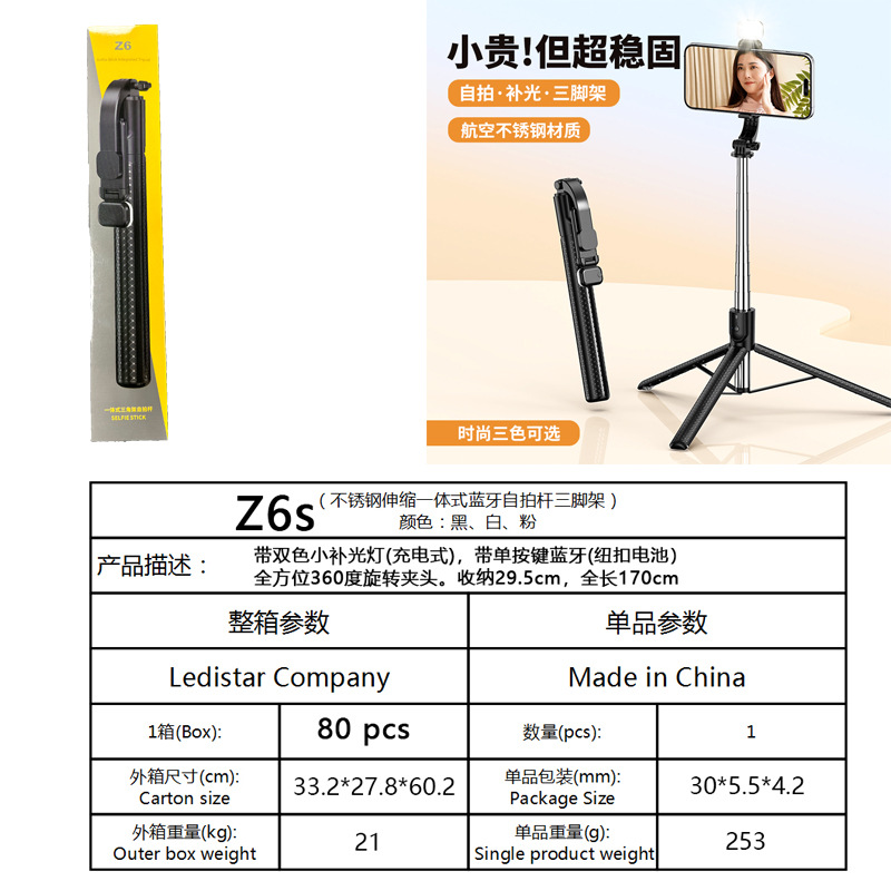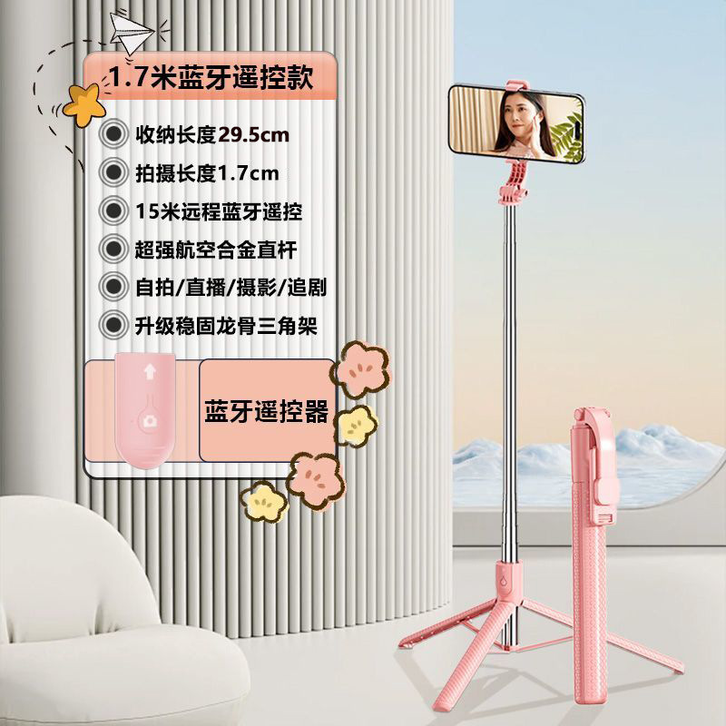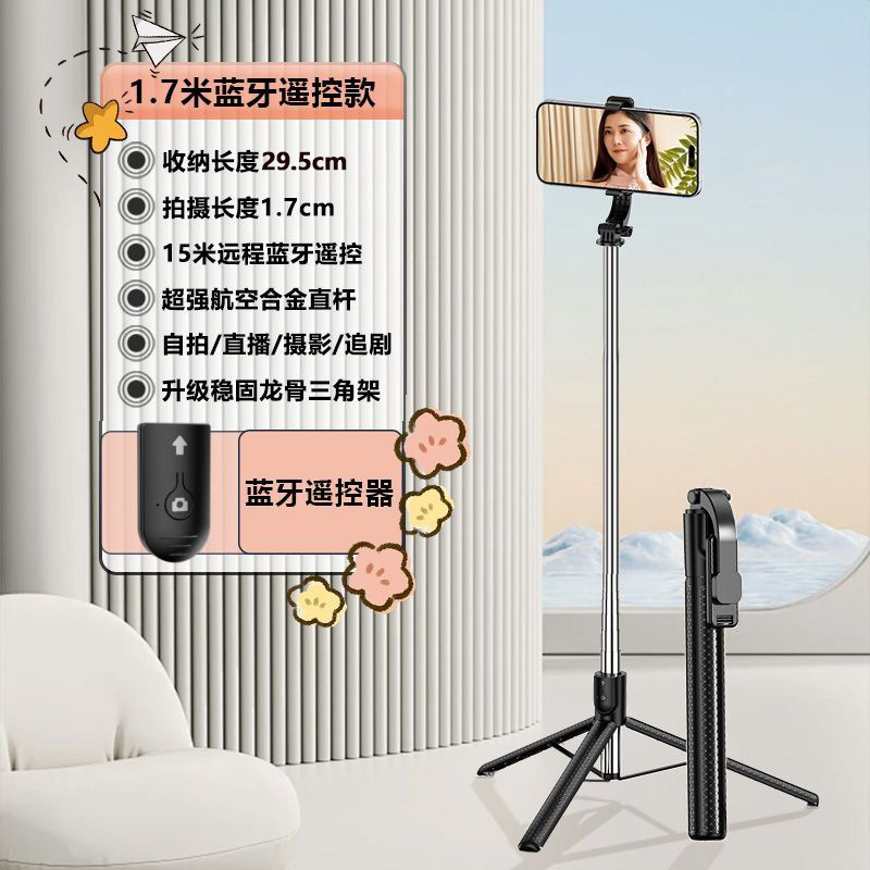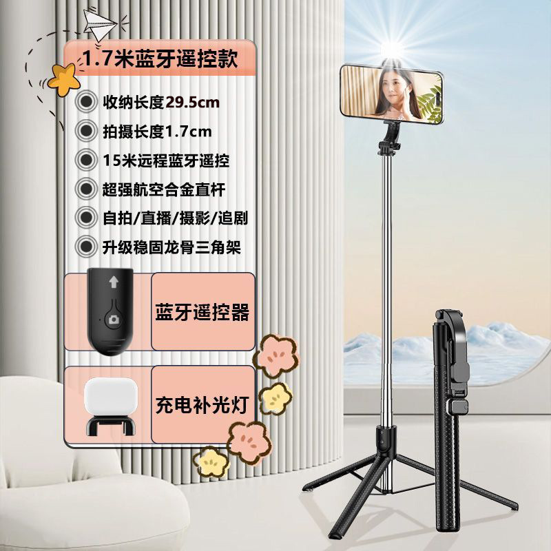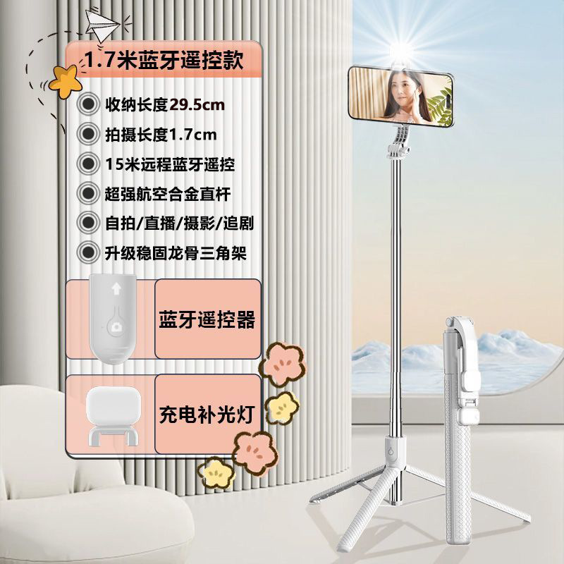 Z6 셀카봉 확장형 1.7m 블루투스 리모컨이 포함된 다기능 스탠드 뷰티 필 라이트 인공물 휴대용스토어 가기