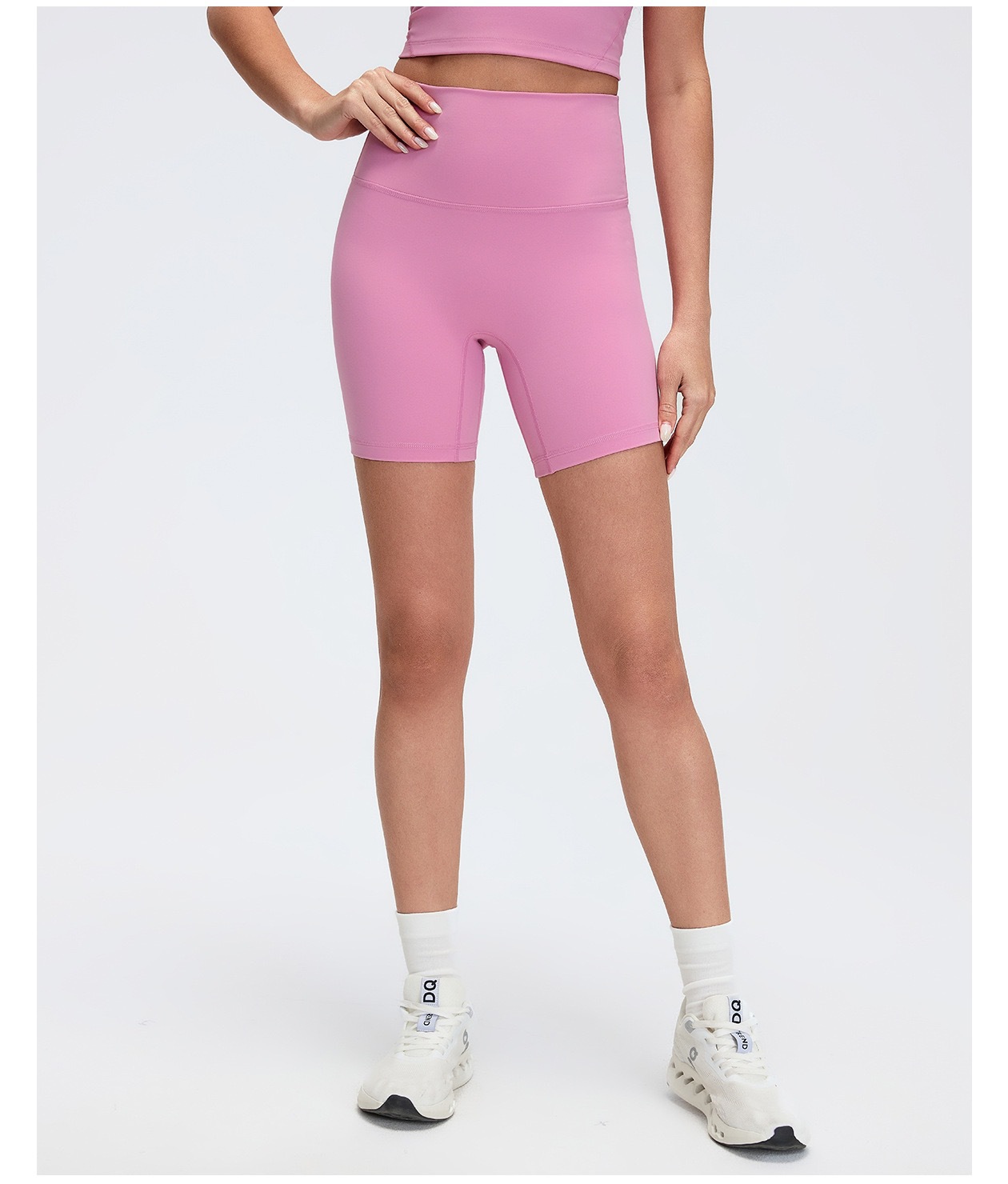 벌거 벗은 스트레치 요가 바지 배꼽 타이트한 엉덩이 라이딩 피트니스 트리플 바지 꽉 달리는 반바지 여성 DK067
