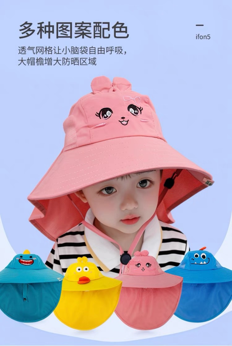 어린이 태양 모자 소년과 소녀 여름 태양 보호 모자 UV 얇은 통기성 어부 모자 큰 가슴 새 태양 모자