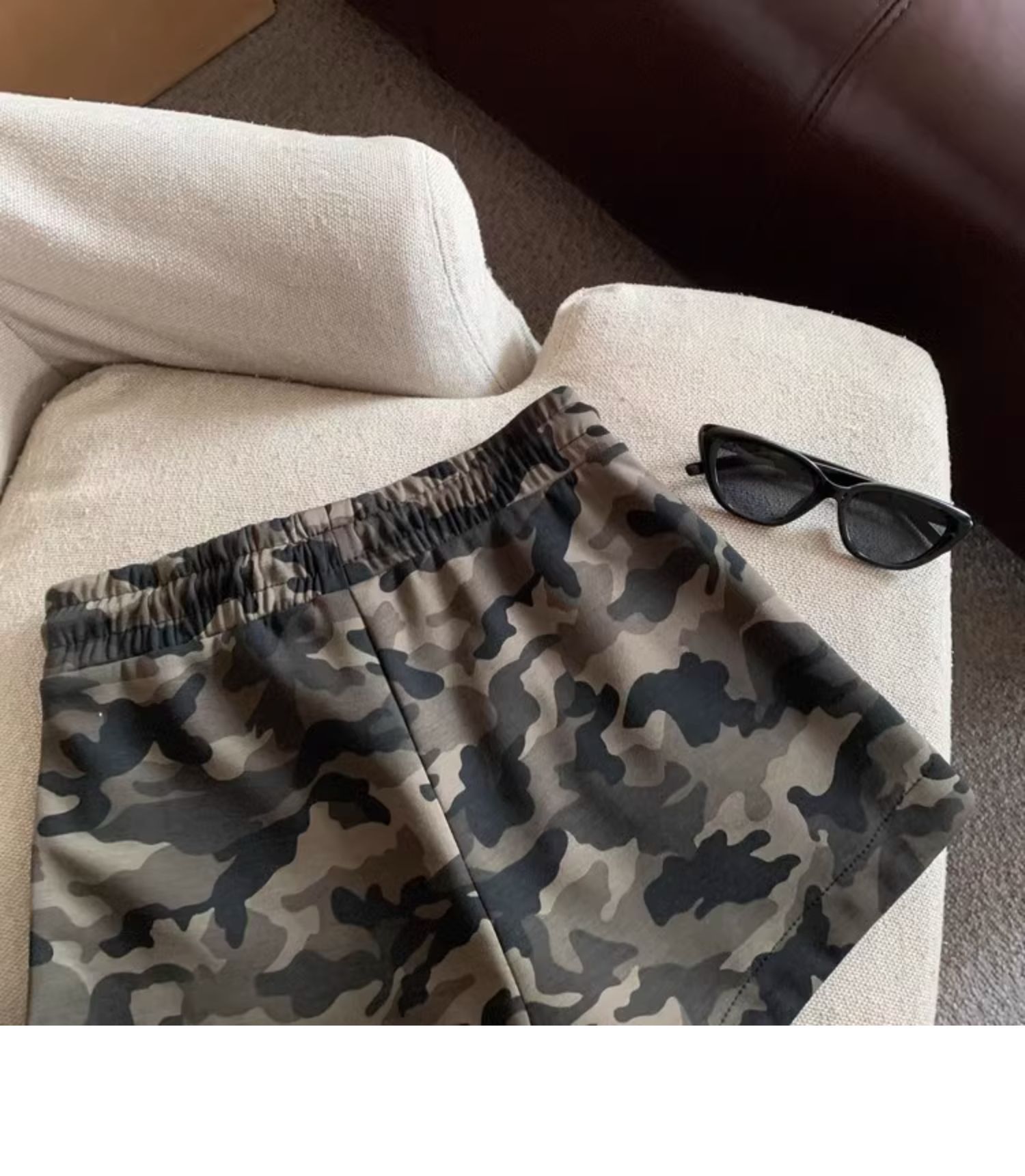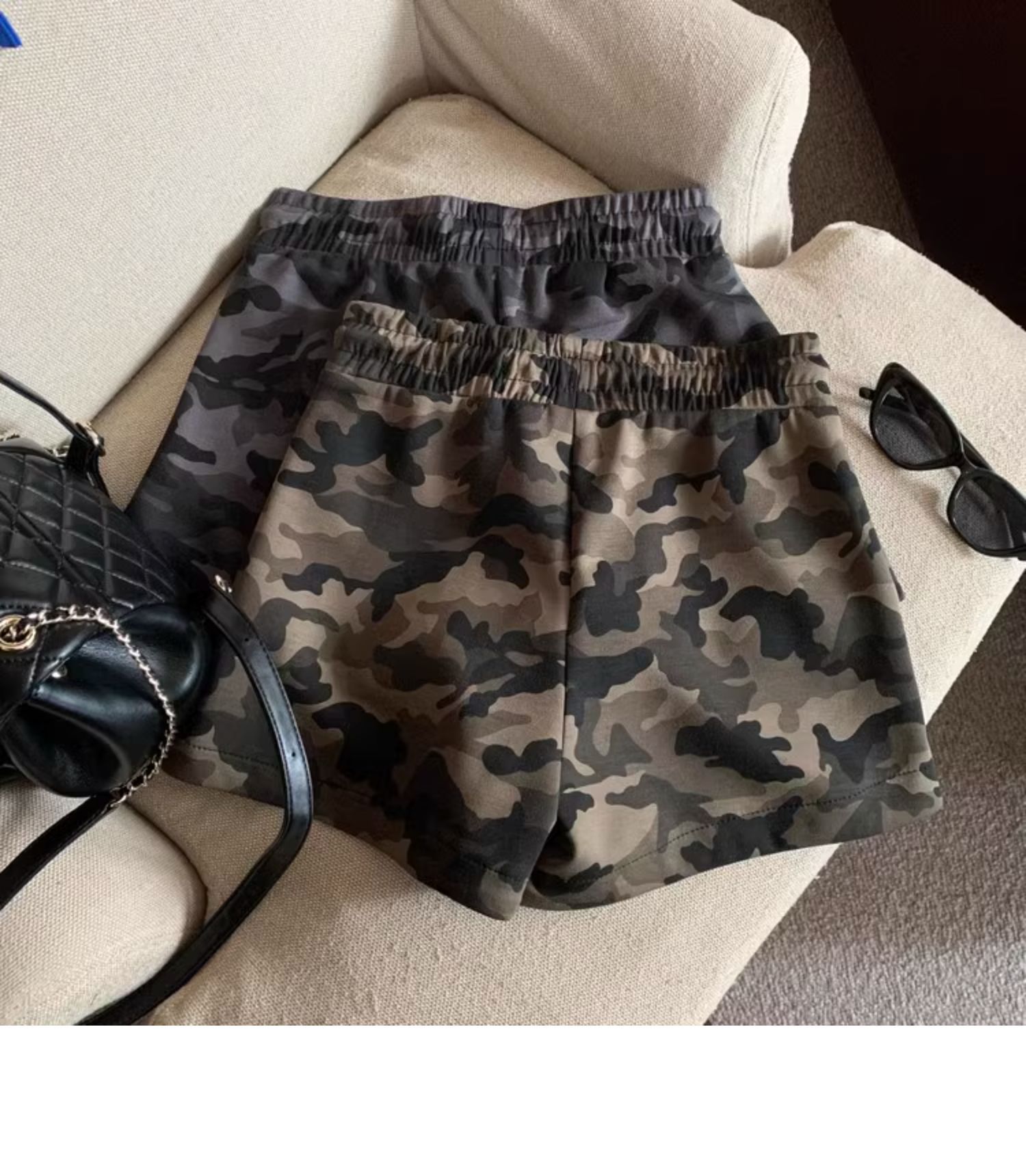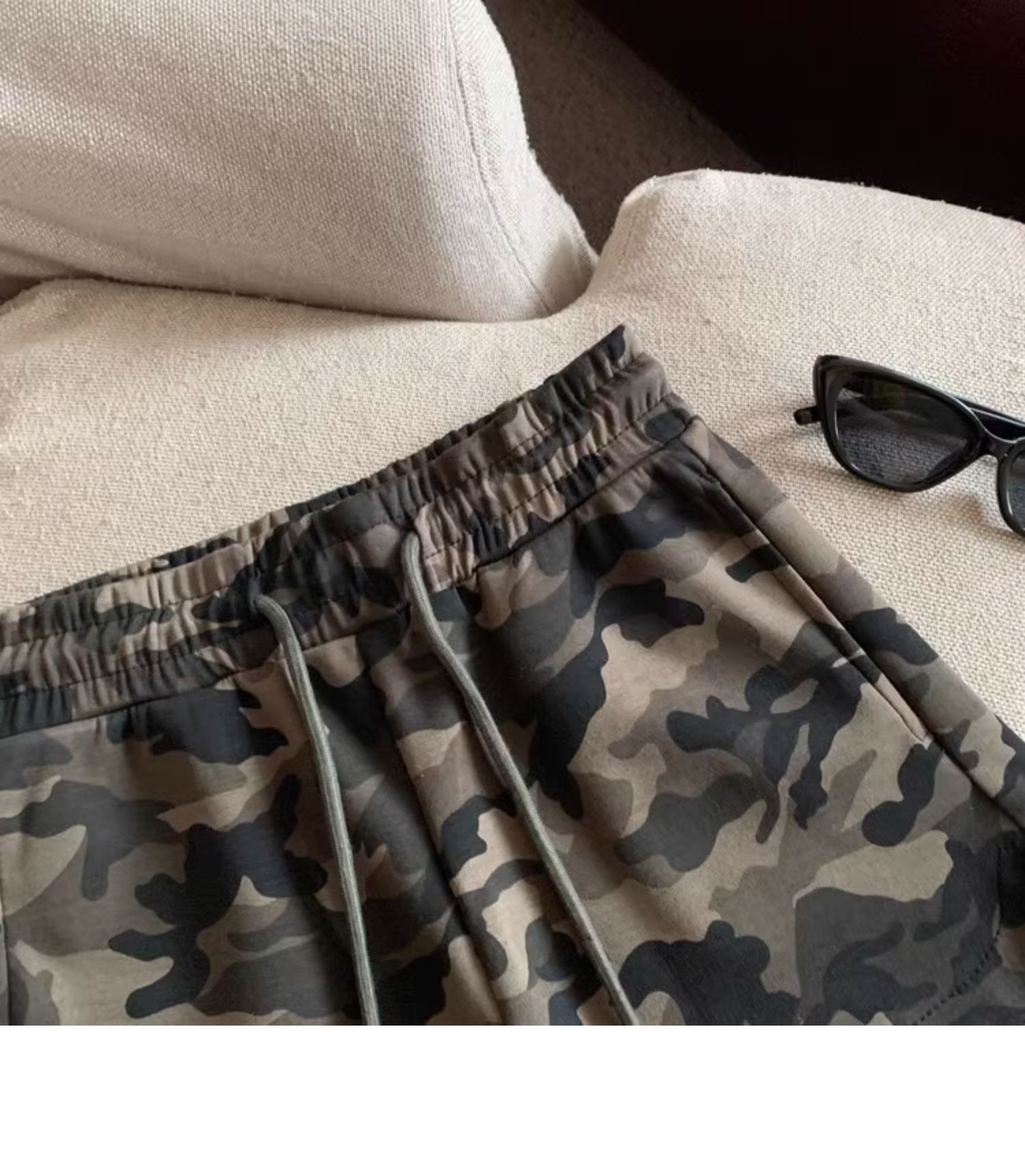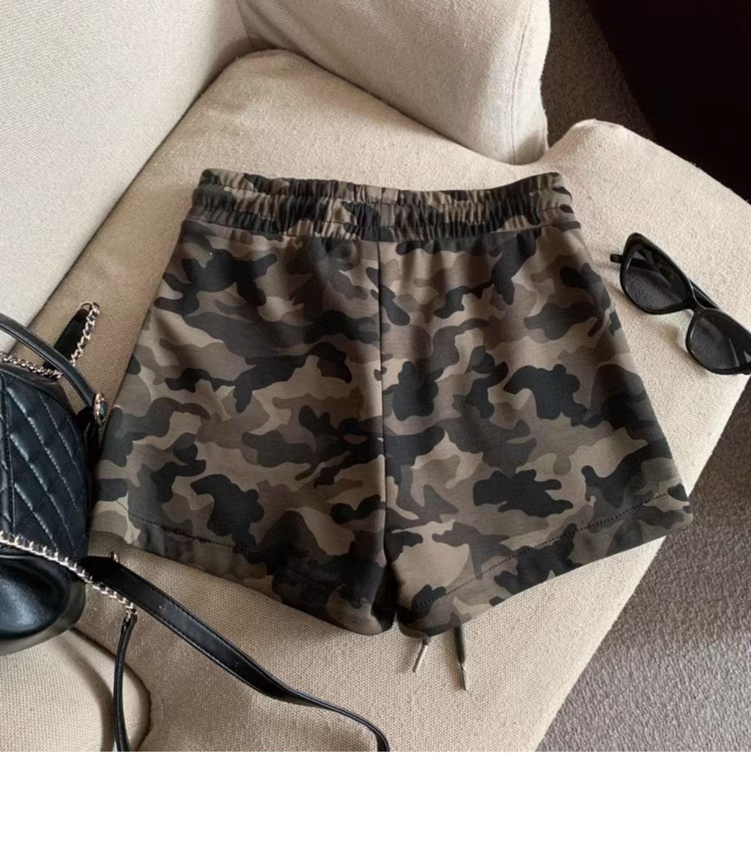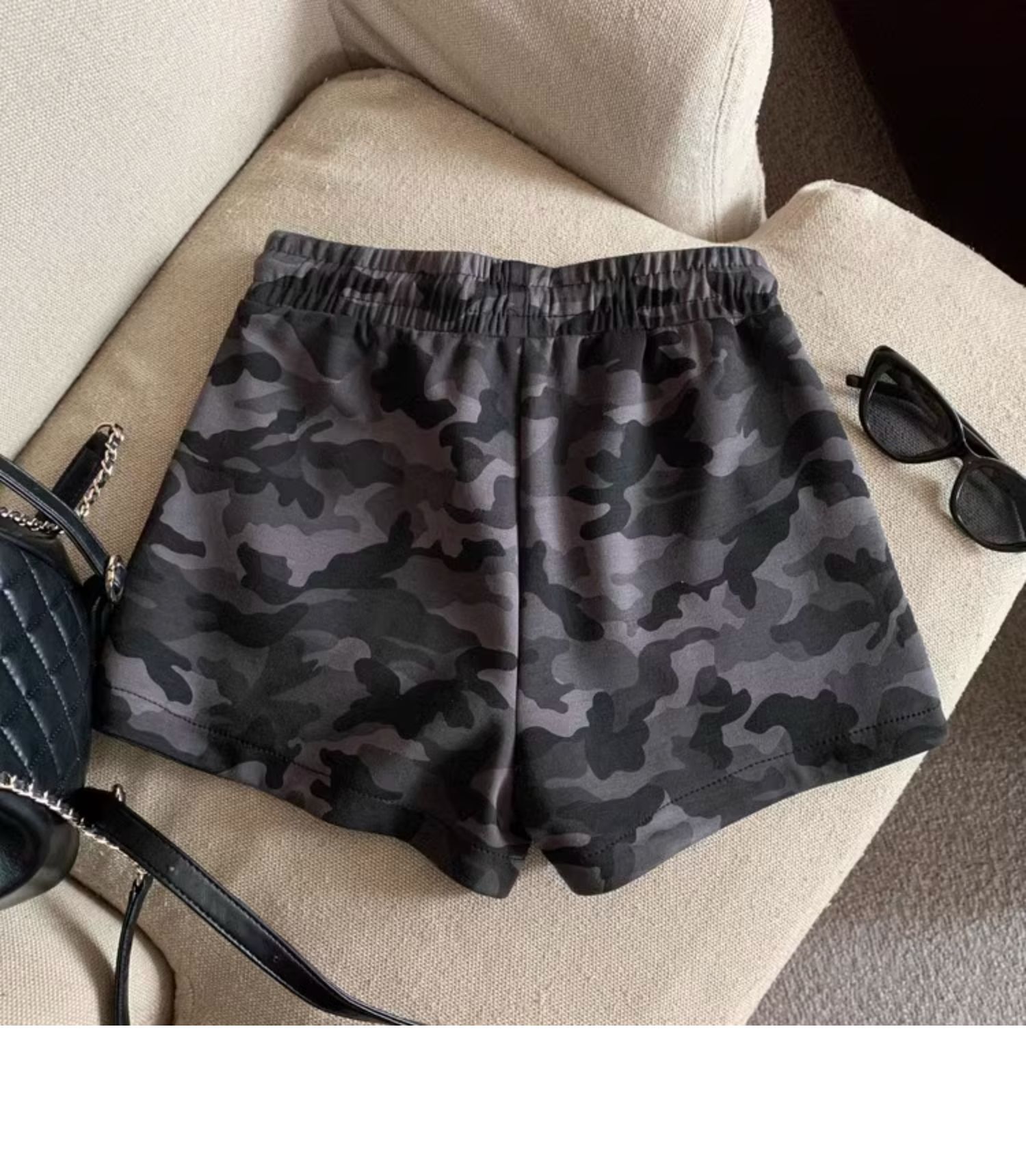 여름 여성을 위한 미국 복고풍 드로스트링 위장 캐주얼 반바지 새로운 디자인 틈새 루즈하고 다재다능한 와이드 레그 핫팬츠스토어 가기