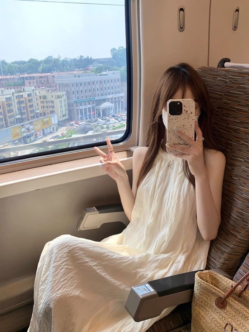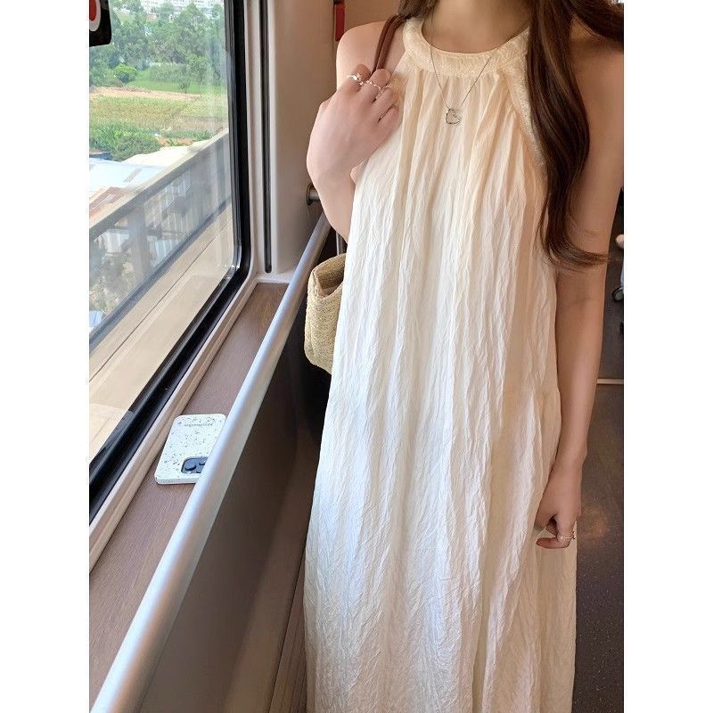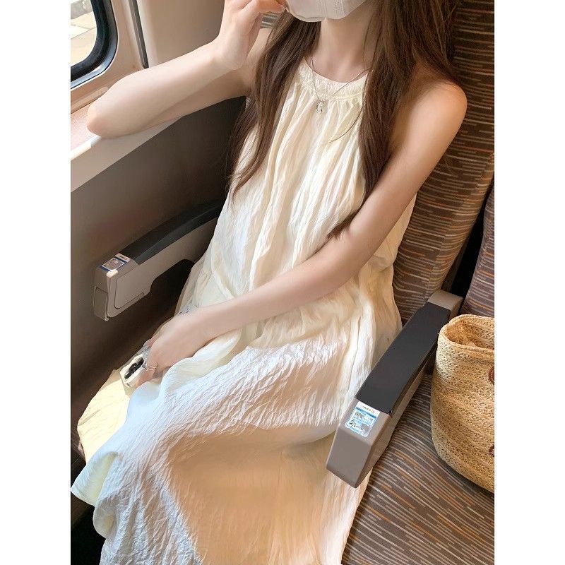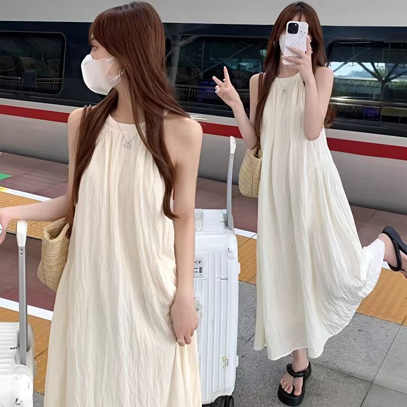프랑스 스타일 목 원피스 요정 여름 느슨한 슬리밍 새로운 민소매 달콤한 우아한 해변 휴일 긴 원피스