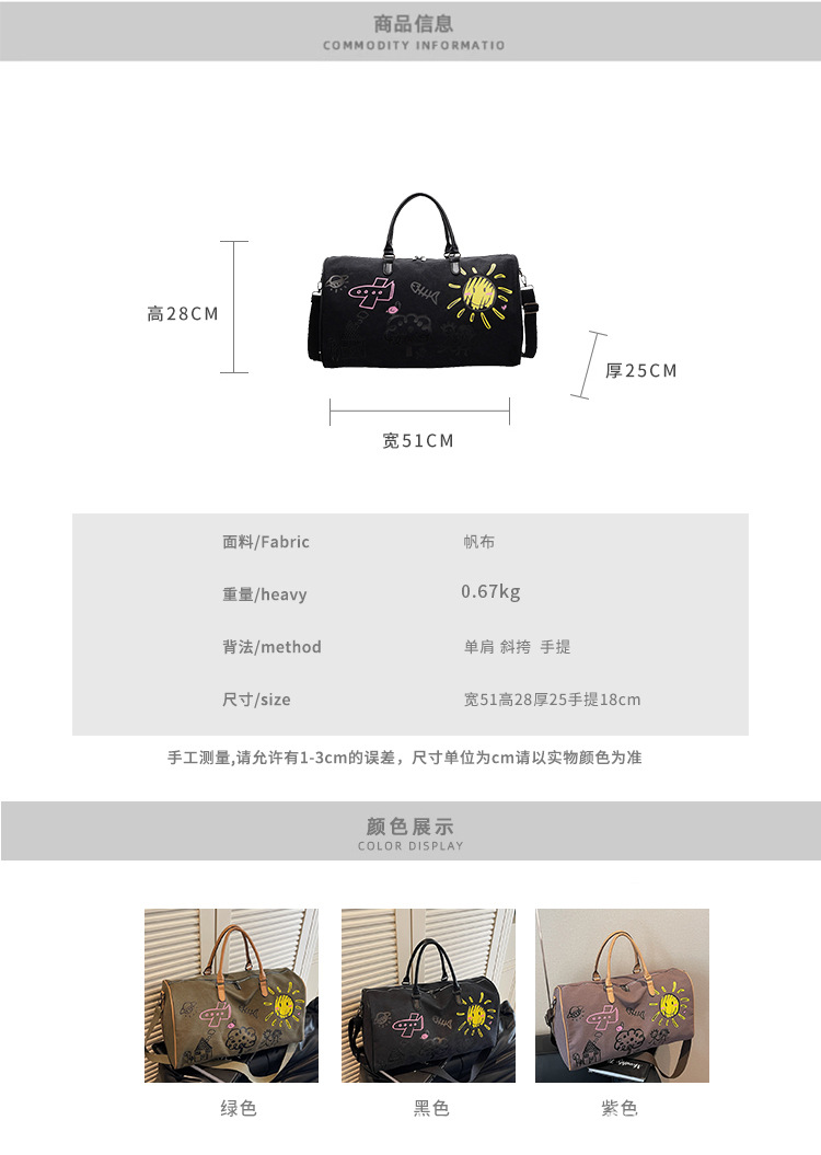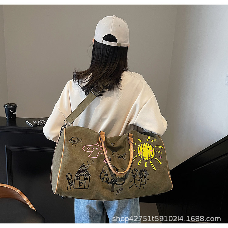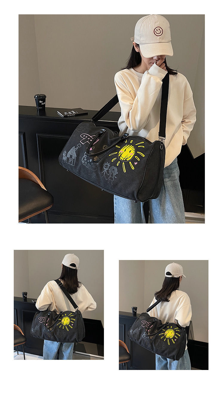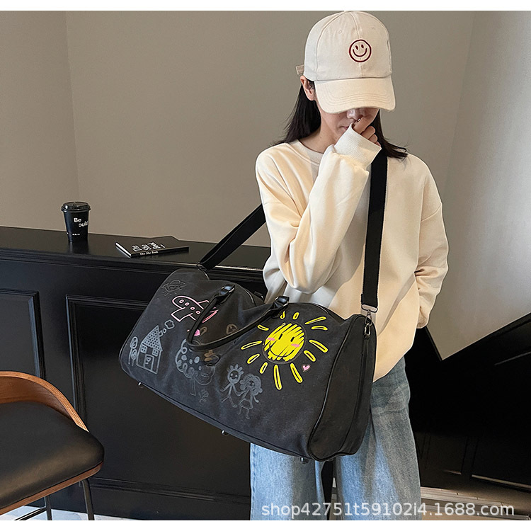 단거리 대용량 여행 가방 여성의 새로운 인쇄 스포츠 피트니스 가방 세련된 휴대용 다목적 크로스 바디 수하물 가방