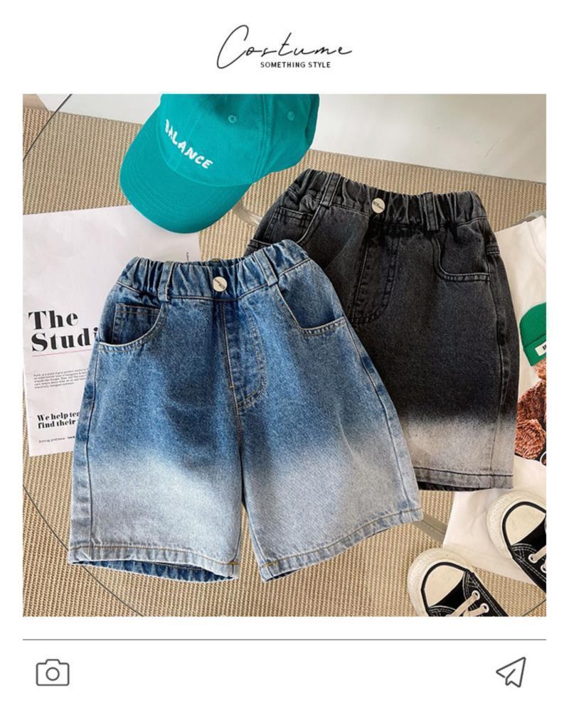아동용 5부 바지 2023 여름 신작 소년 패션 그라데이션 데님 반바지 한국 스타일 캐주얼 바지스토어 가기