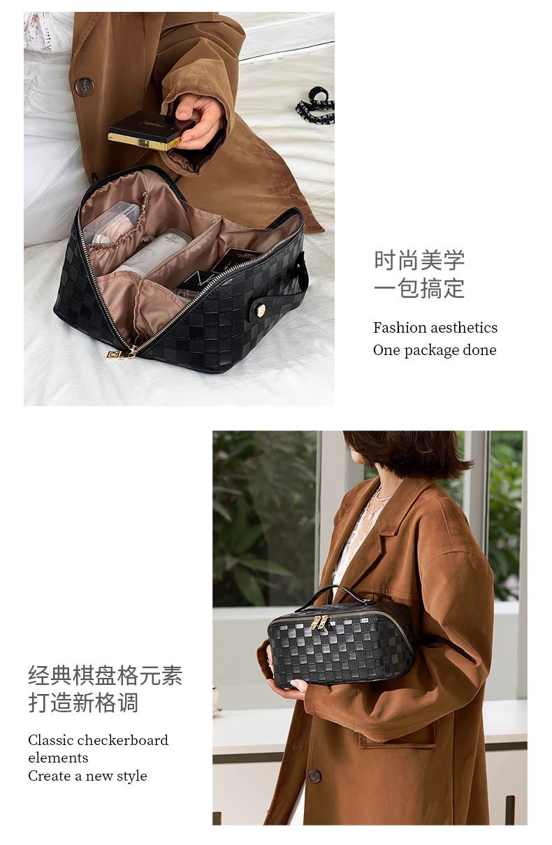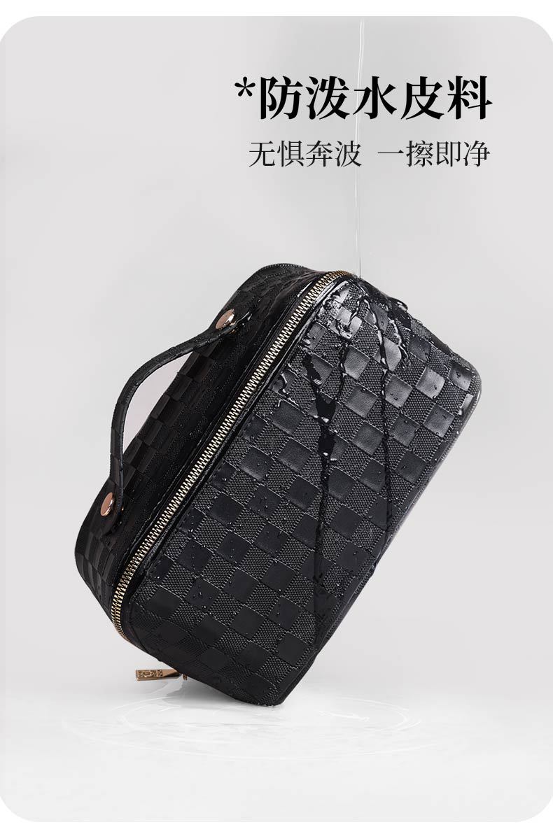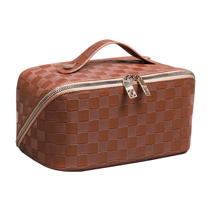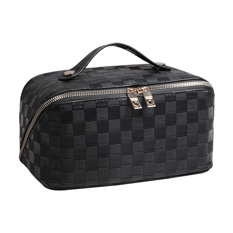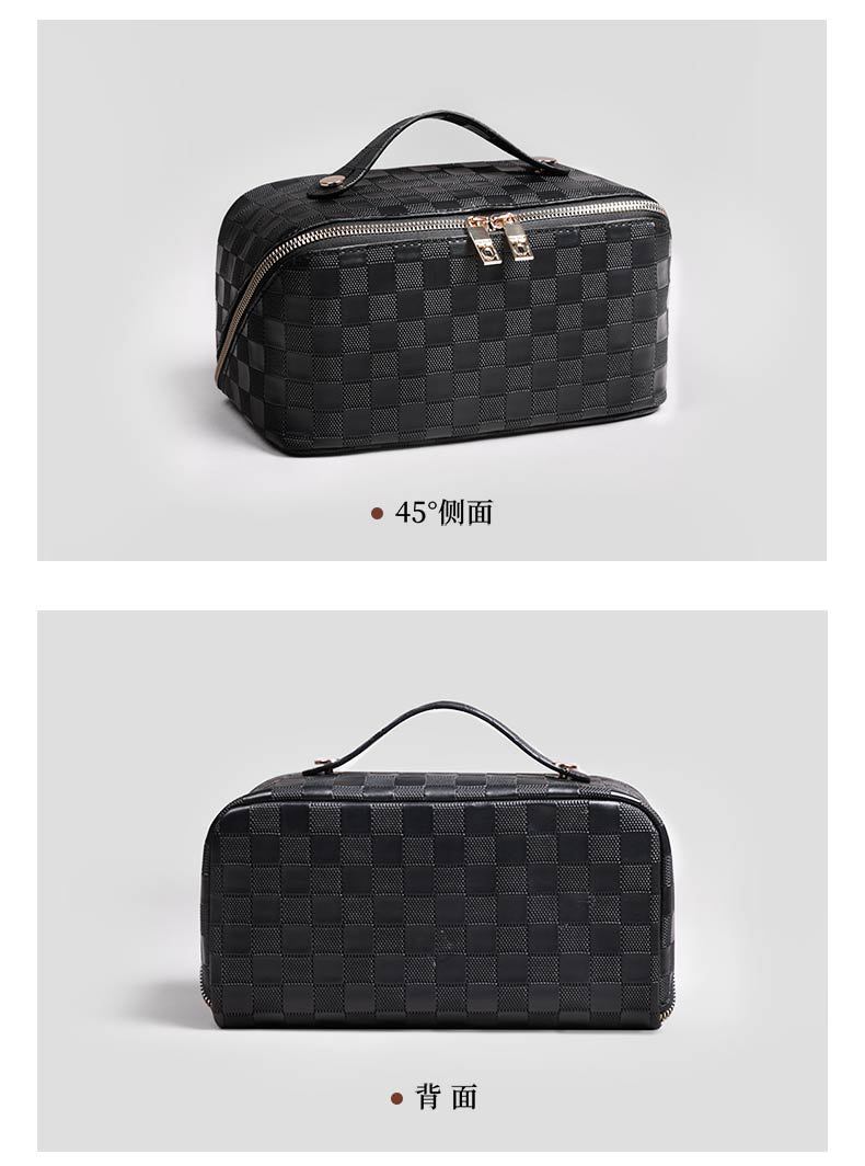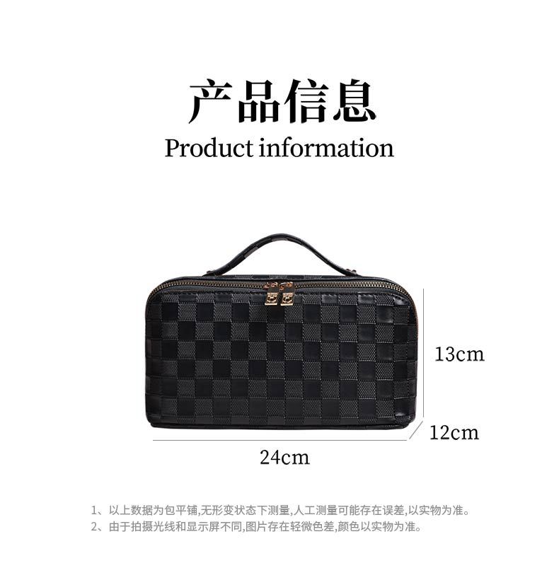 PU 가죽 체커보드 화장품 가방 대용량 휴대용 다기능 여행 화장품 세면 용품 가방 보관 가방