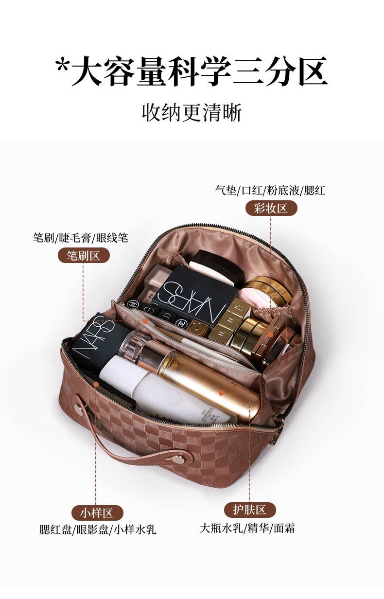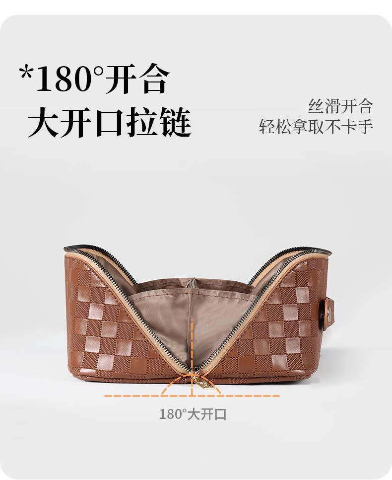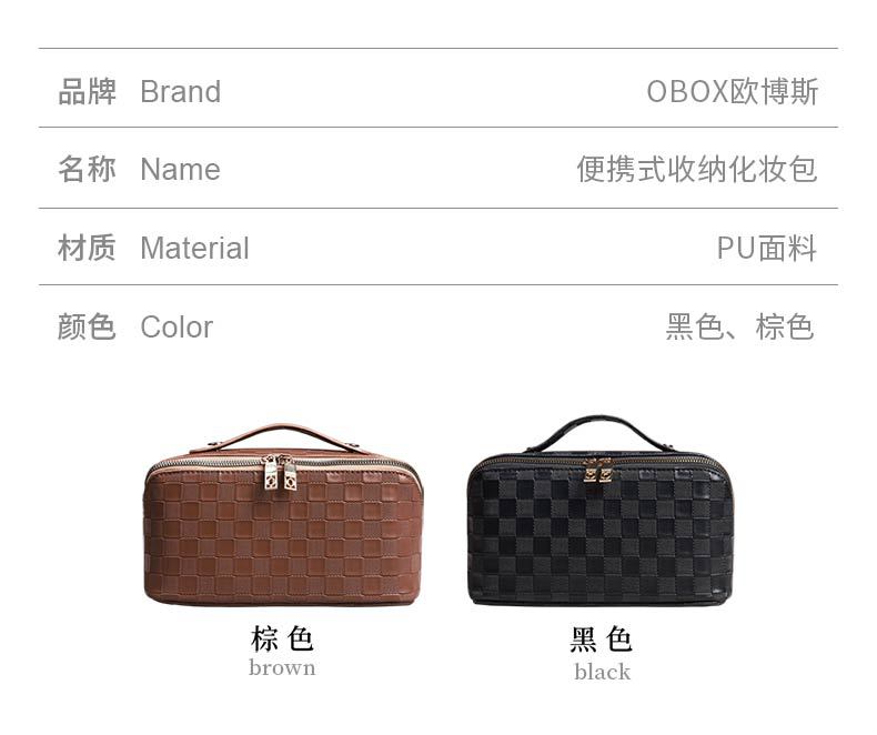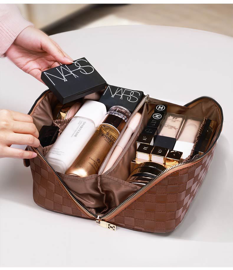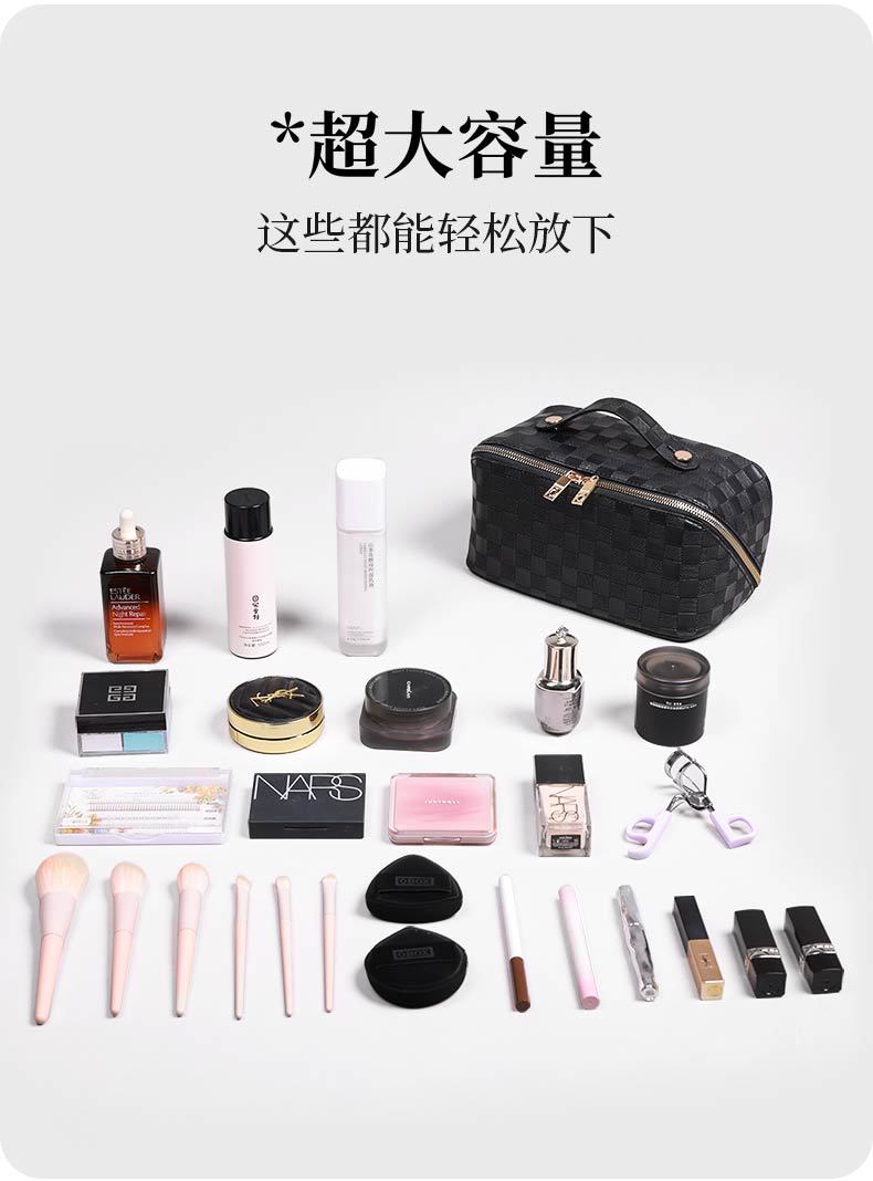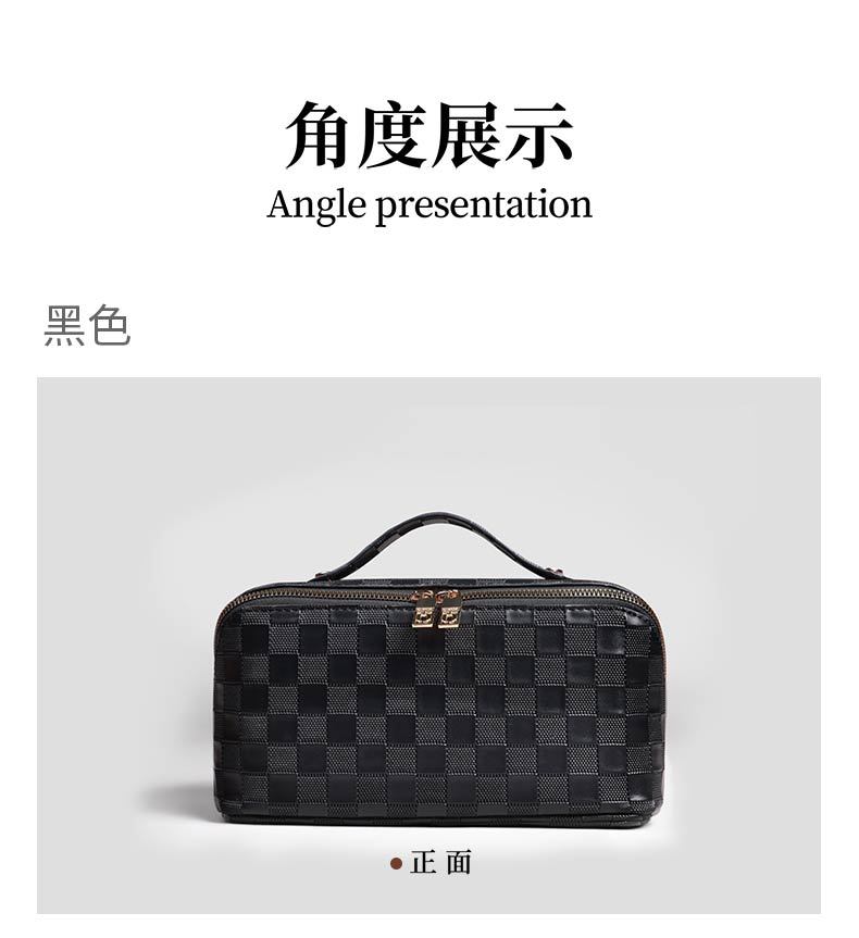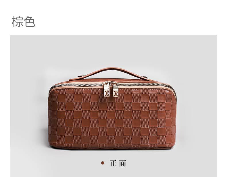 PU 가죽 체커보드 화장품 가방 대용량 휴대용 다기능 여행 화장품 세면 용품 가방 보관 가방