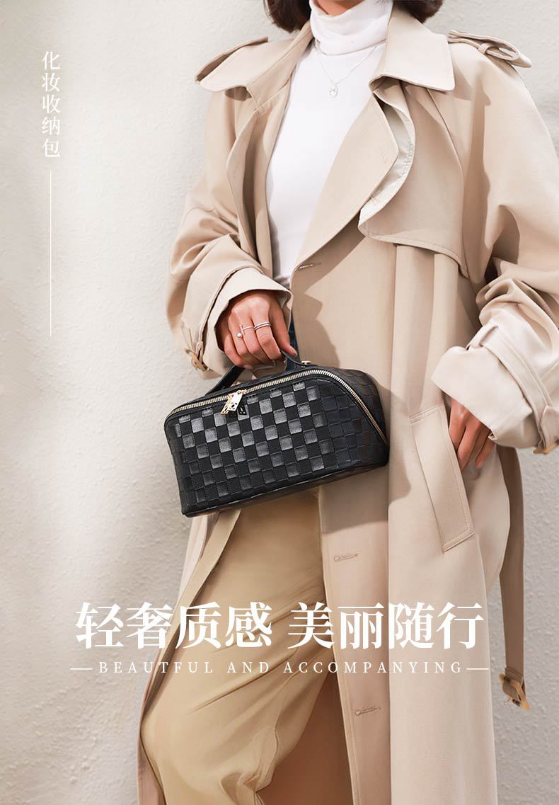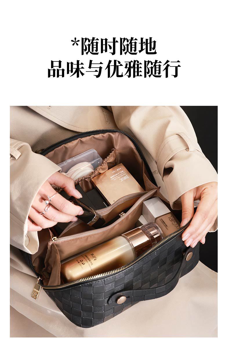 PU 가죽 체커보드 화장품 가방 대용량 휴대용 다기능 여행 화장품 세면 용품 가방 보관 가방스토어 가기