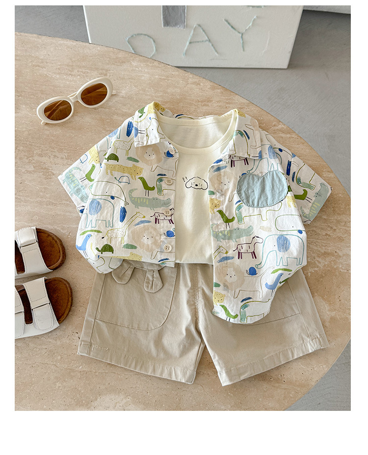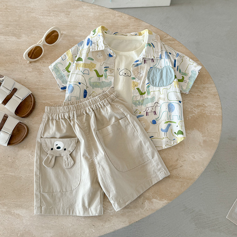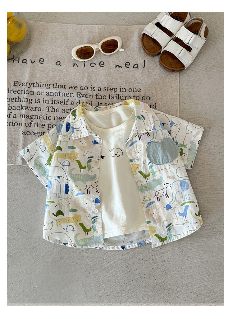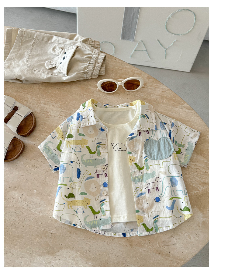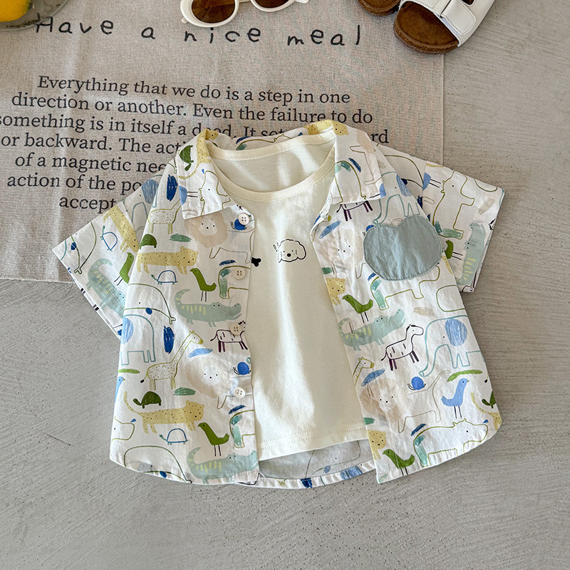 남아 셔츠 티셔츠 투피스 세트 여름 2026 신상 멋진 아기 반팔 상의 얇은 아기옷 A급