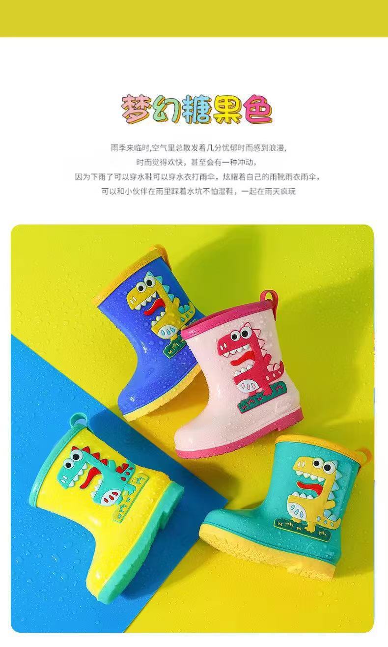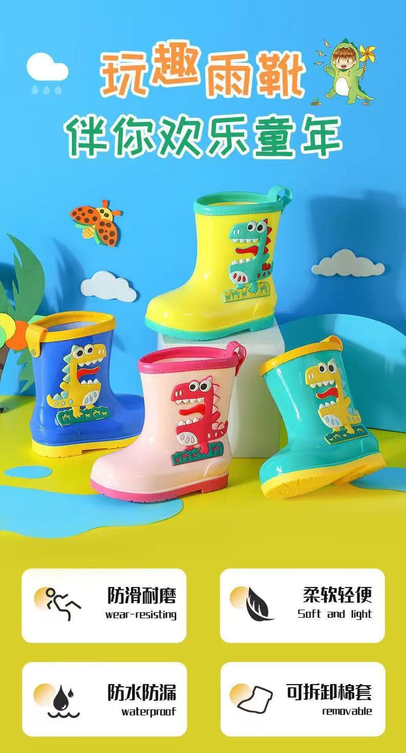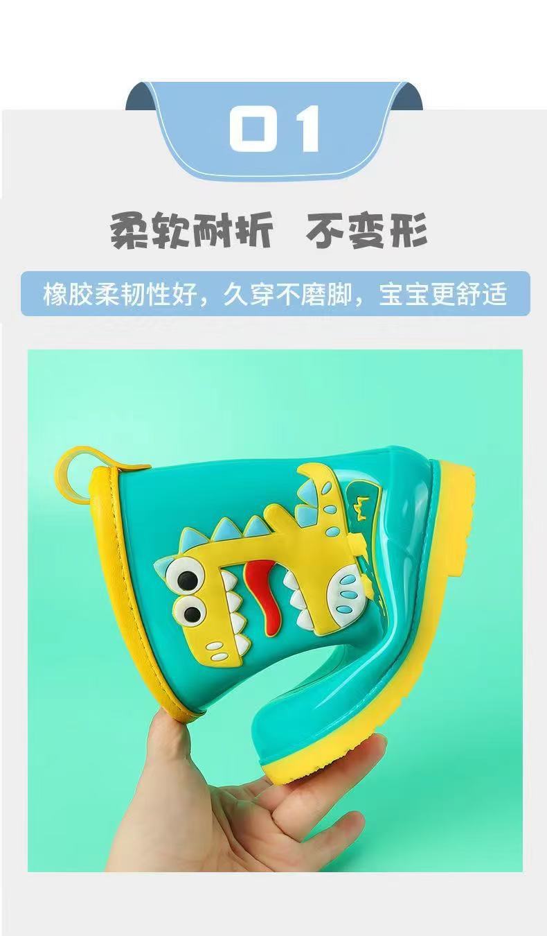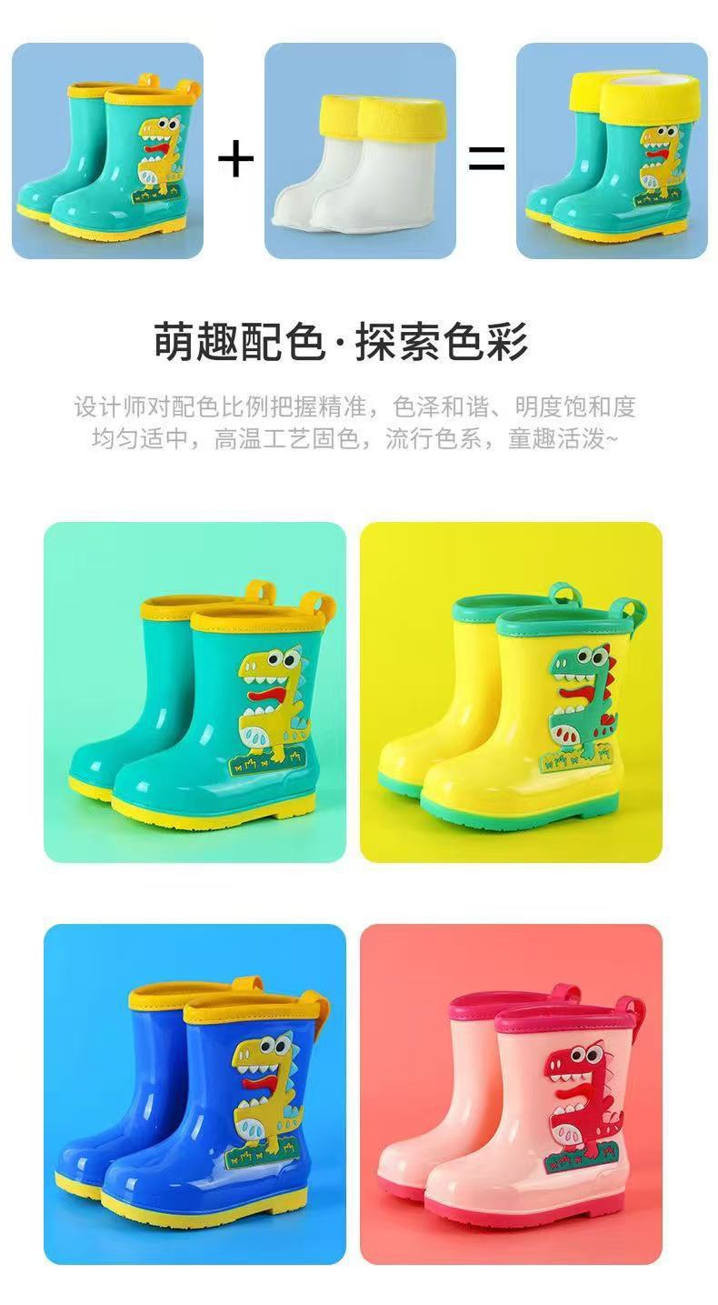 수출용 아동용 레인부츠, 남아 여아용, 솜 안감 레인부츠, 공룡 만화 캐릭터, 중대형 어린이 방수 신발, 초등학생용, 보온 안감스토어 가기