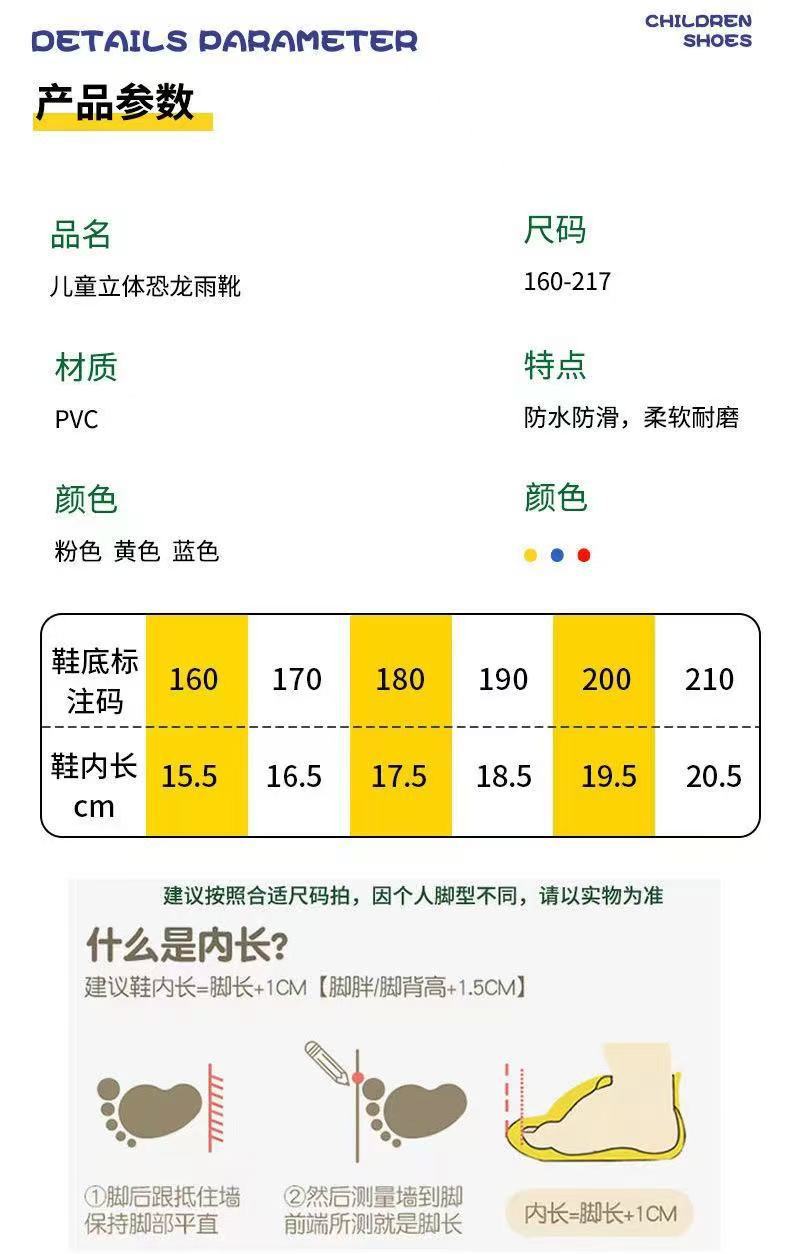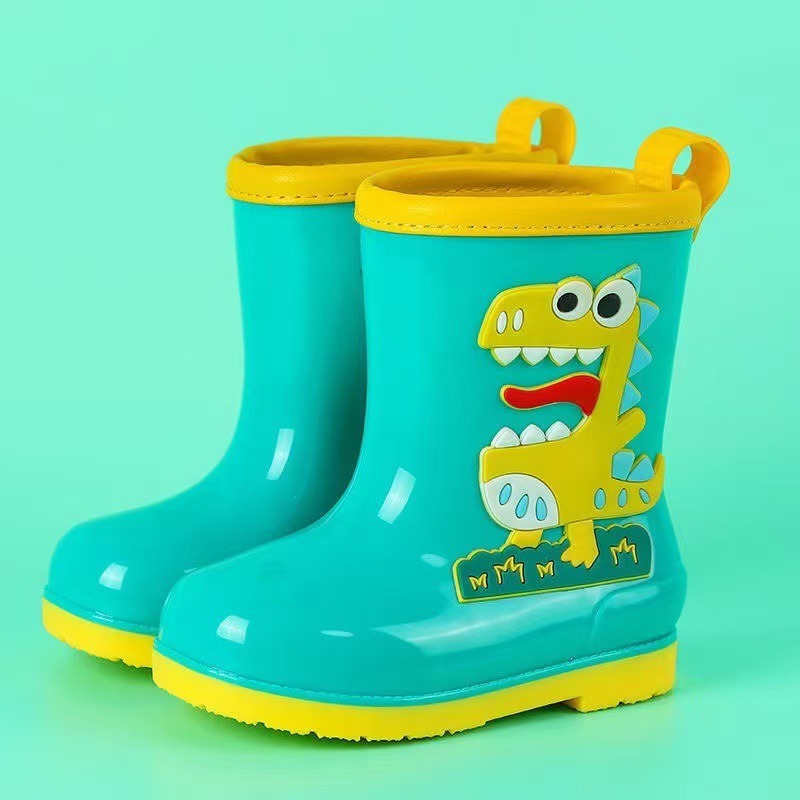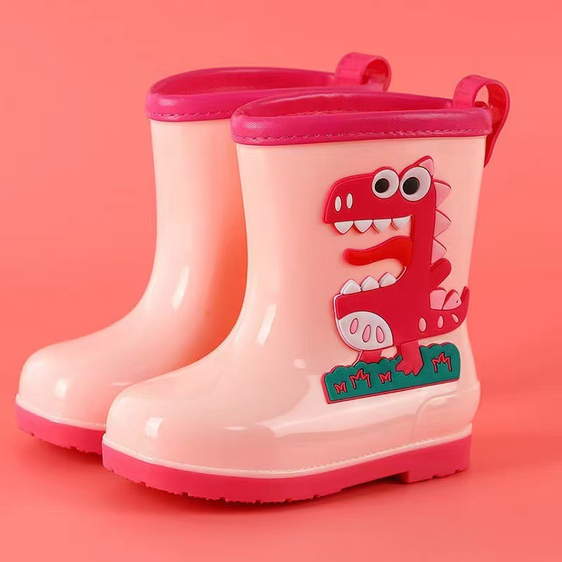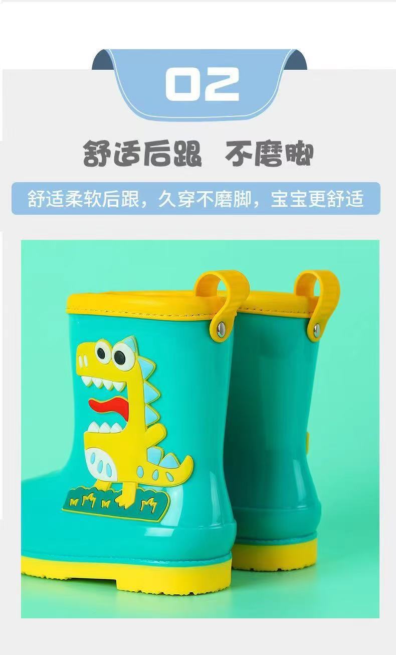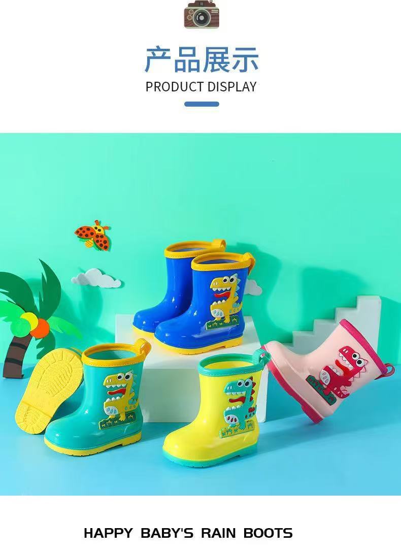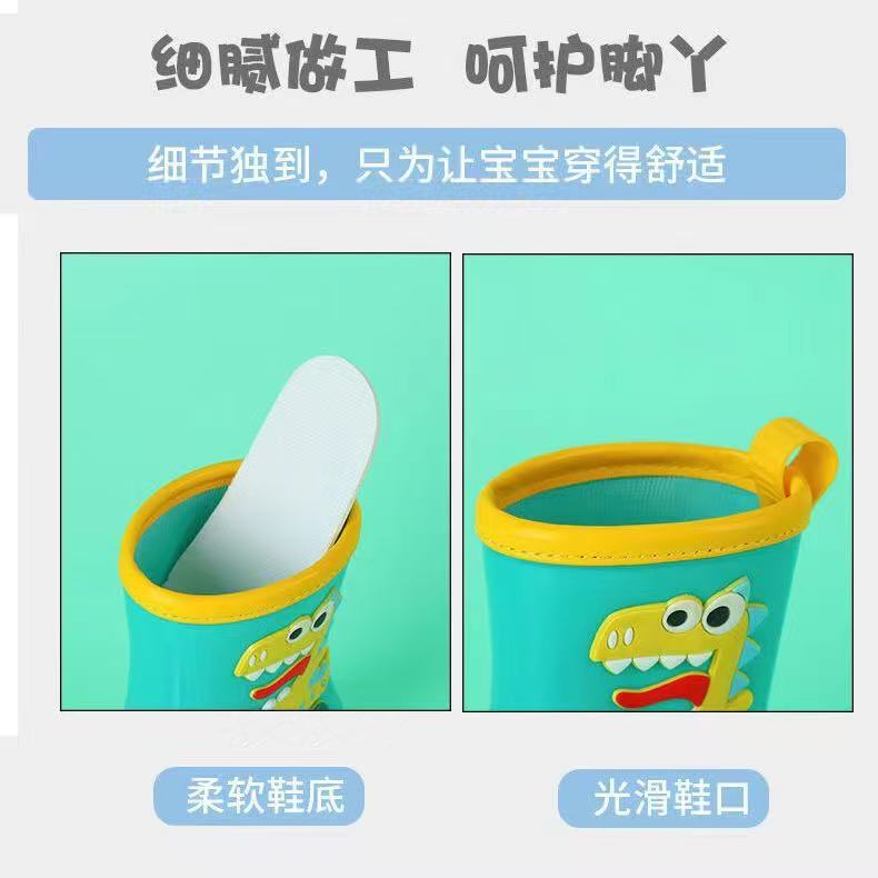 수출용 아동용 레인부츠, 남아 여아용, 솜 안감 레인부츠, 공룡 만화 캐릭터, 중대형 어린이 방수 신발, 초등학생용, 보온 안감스토어 가기